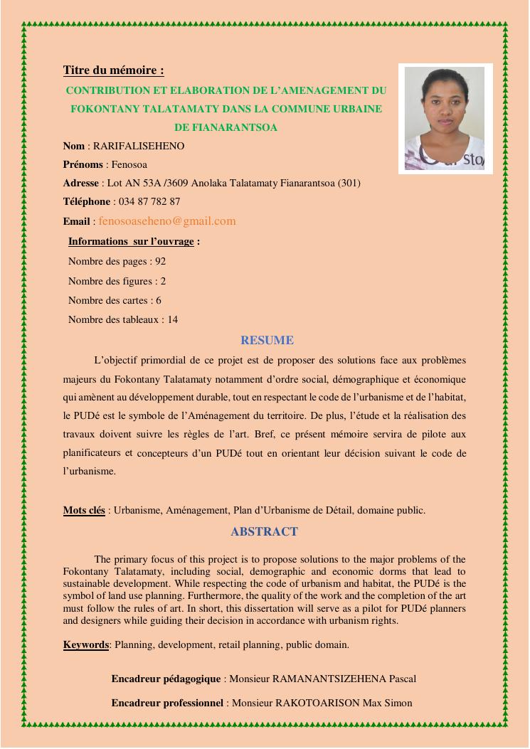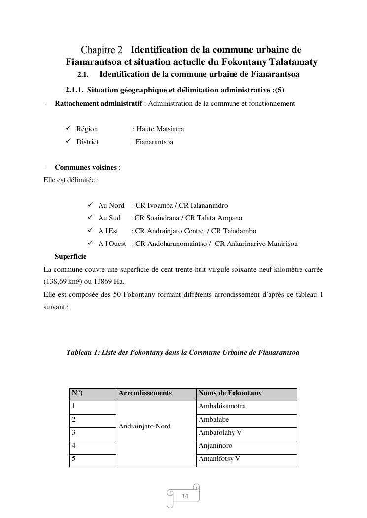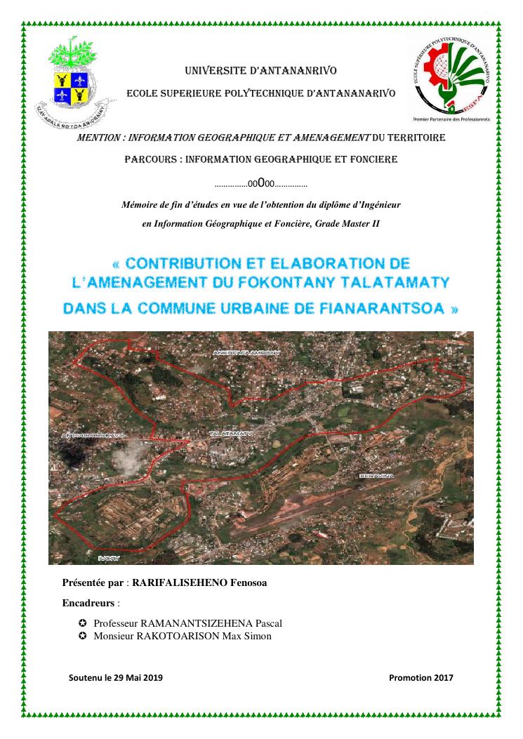 contribution et elaboration de l'amenagement du fokontany talatamaty dans la commune urbaine de fianarantsoa