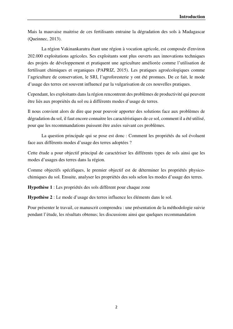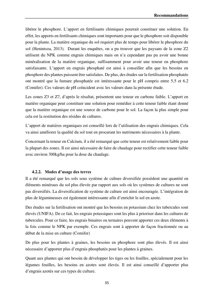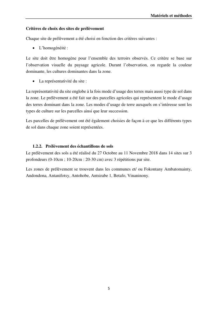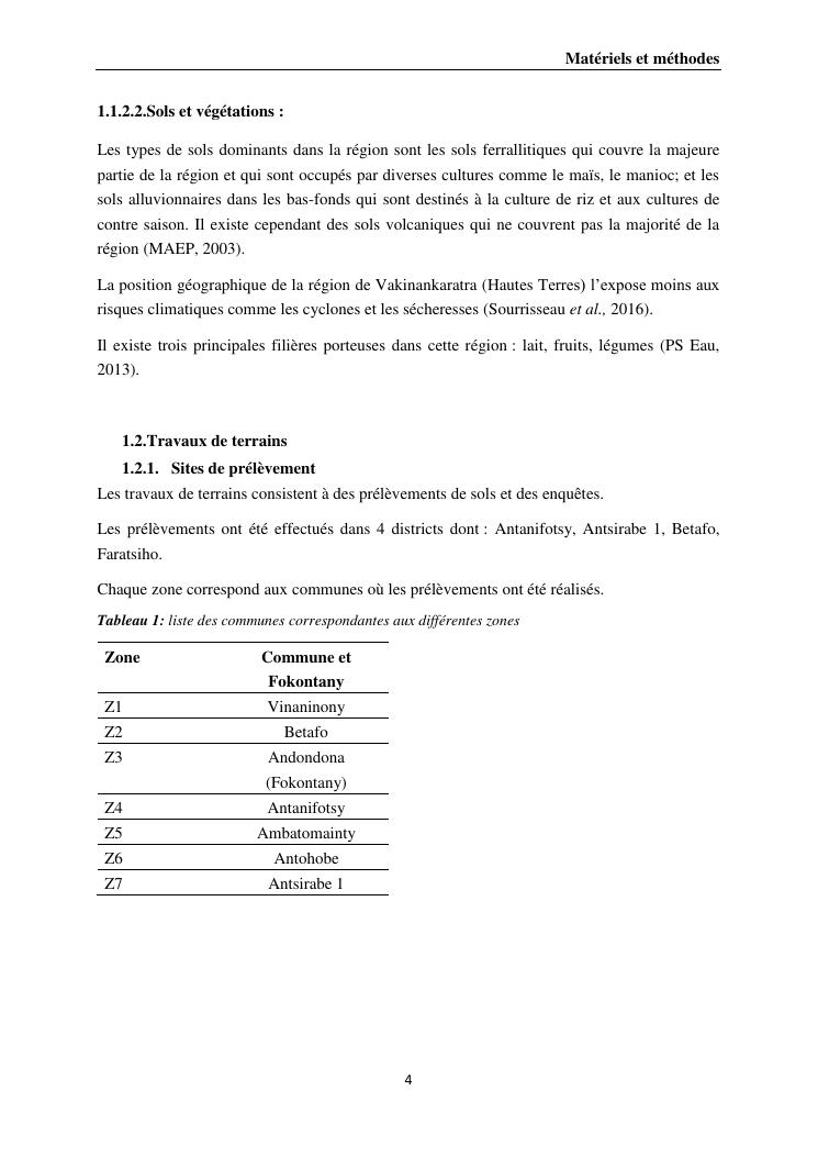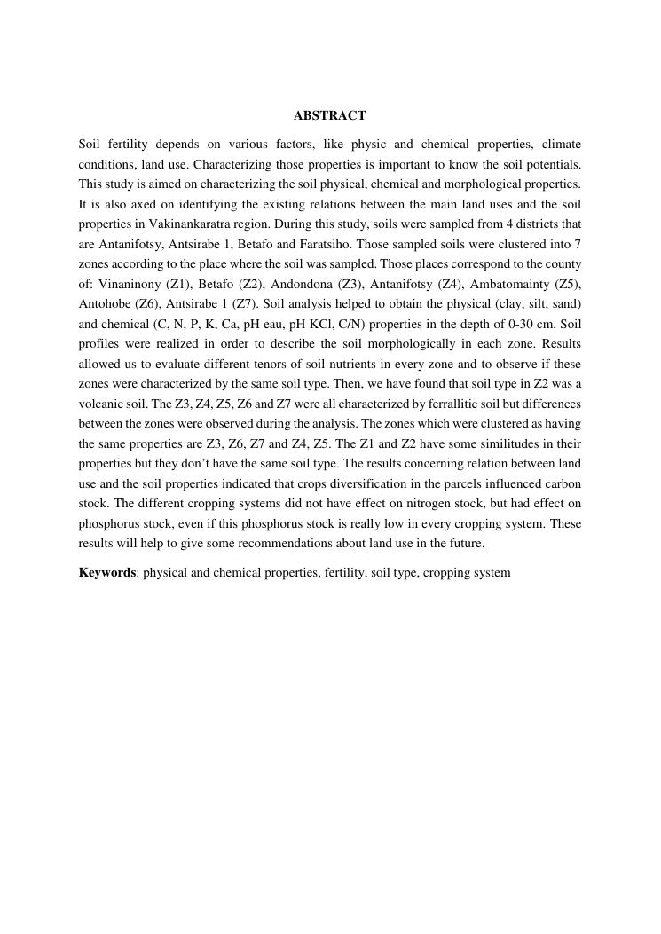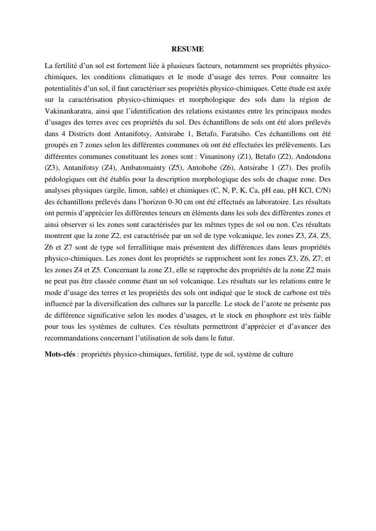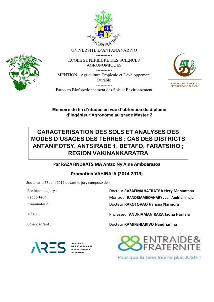 caracterisation des sols et analyses des modes d'usages des terres : cas des districts antanifotsy, antsirabe 1, betafo, faratsiho ; region vakinankaratra