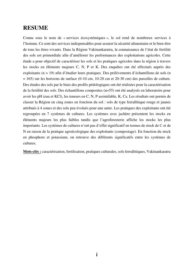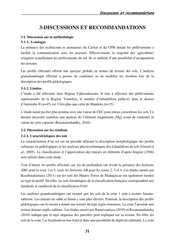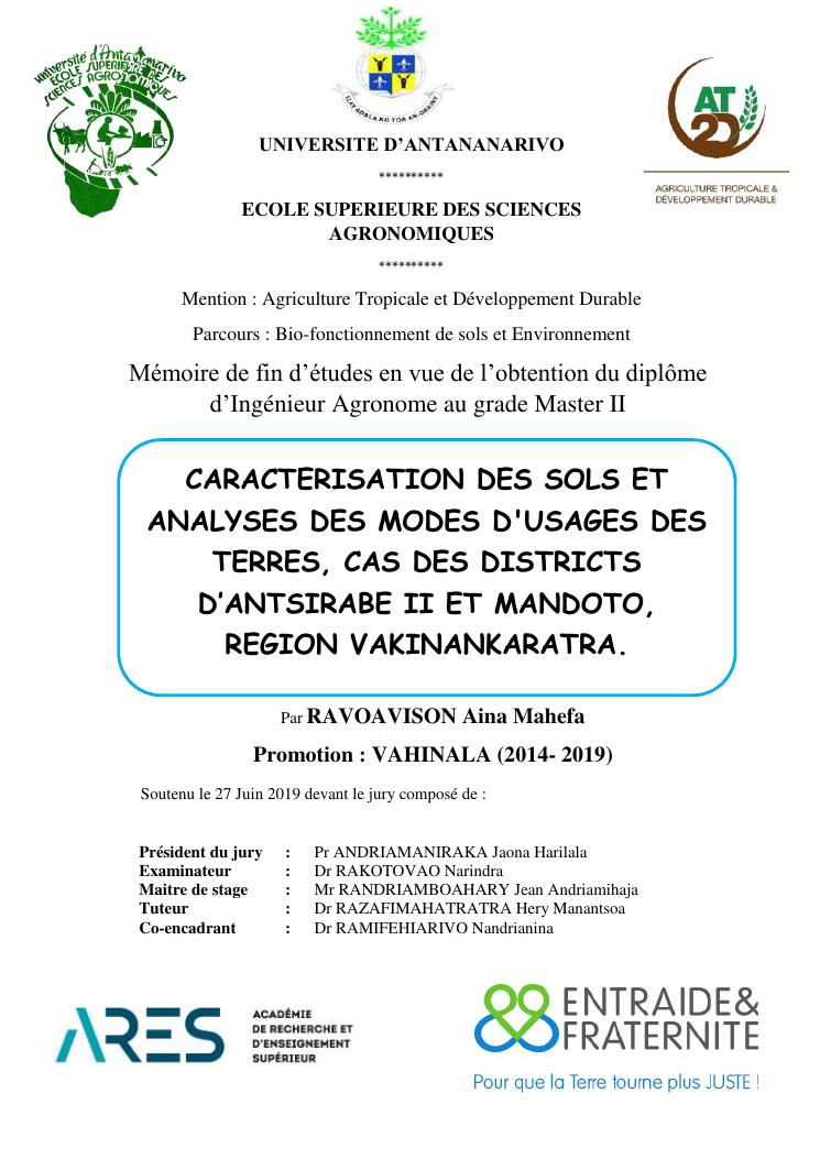 caracterisation des sols et analyses des modes d'usages des terres, cas des districts d'antsirabe ii et mandoto, region vakinankaratra
