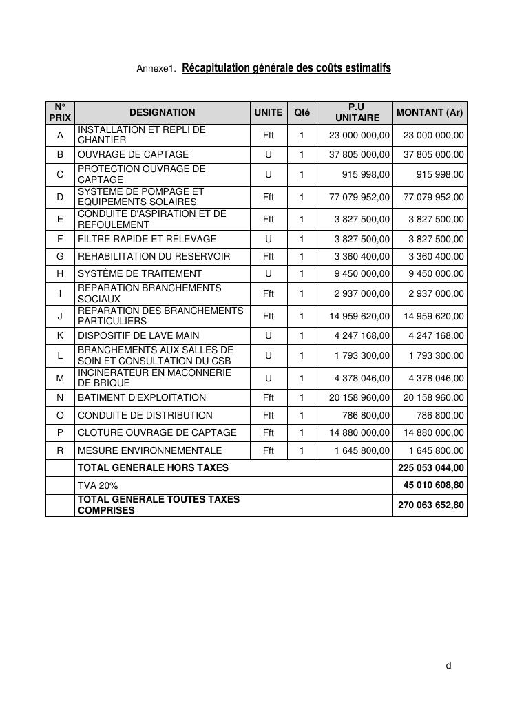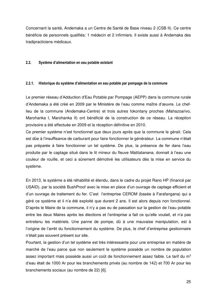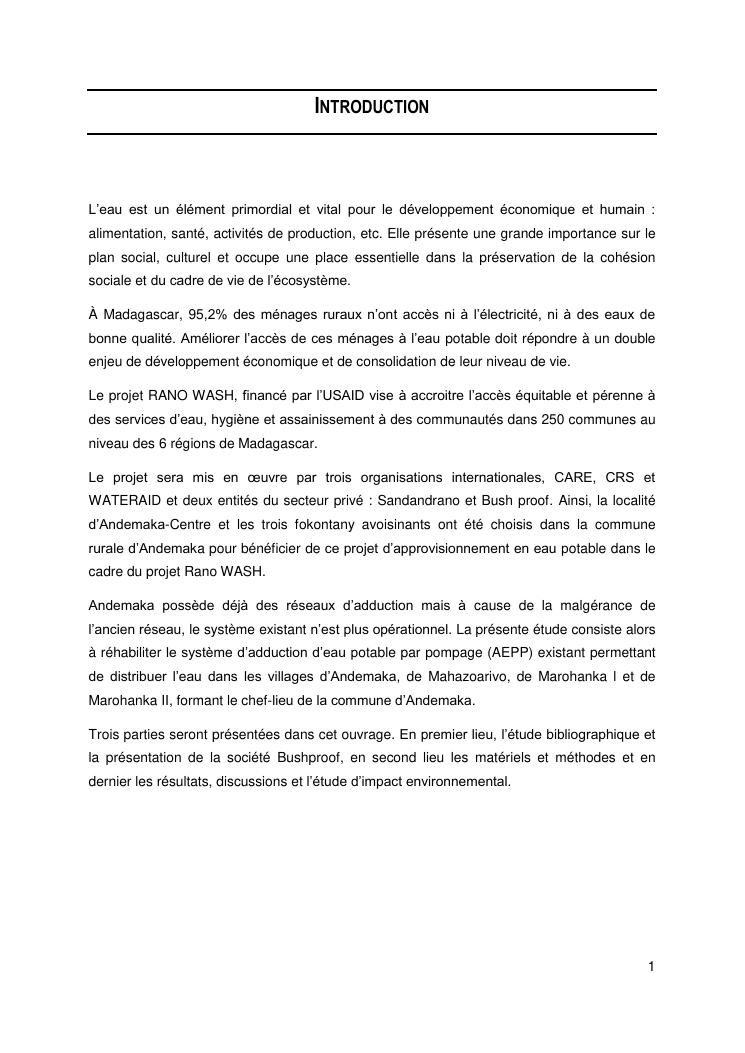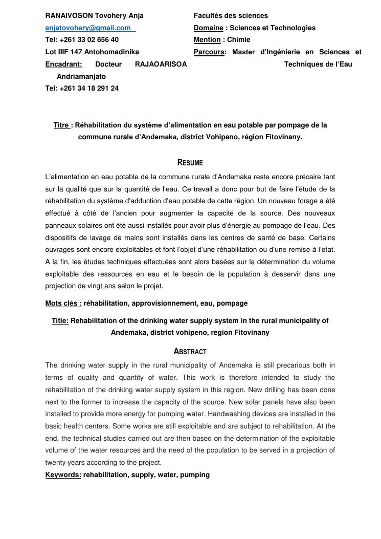 rehabilitation du systeme d'alimentation en eau potable par pompage de la commune rurale d'andemaka, district vohipeno, region fitovinany