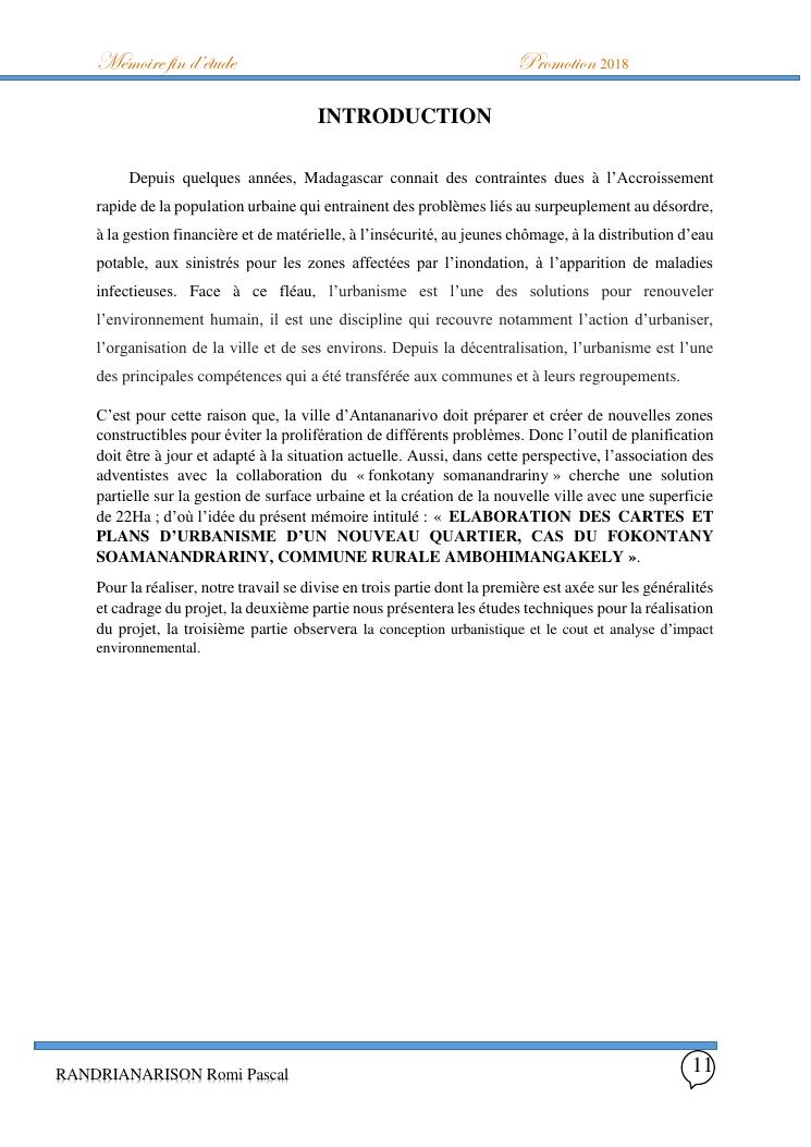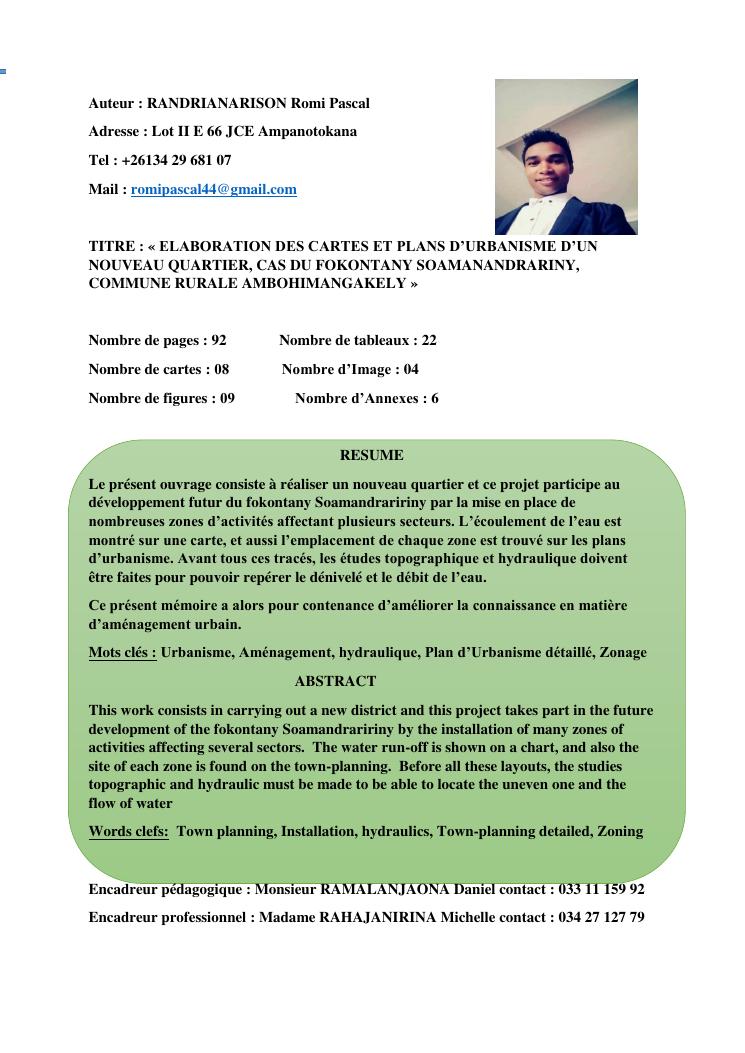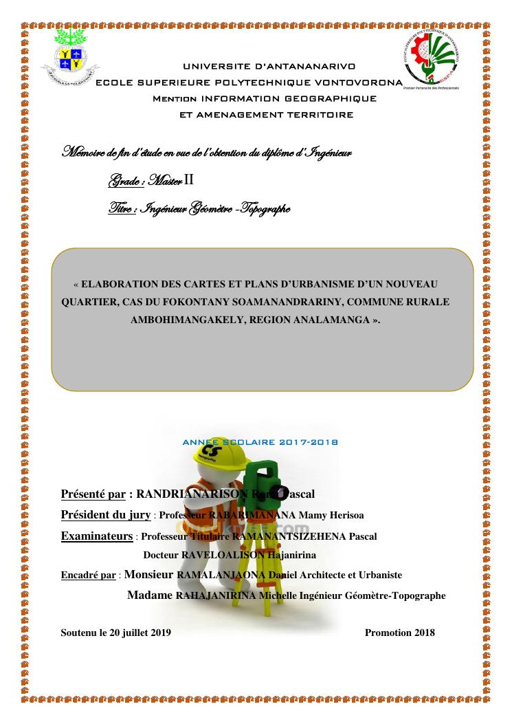 elaboration des cartes et plans d'urbanisme d'un nouveau quartier, cas du fokontany soamanandrariny, commune rurale ambohimangakely, region analamanga