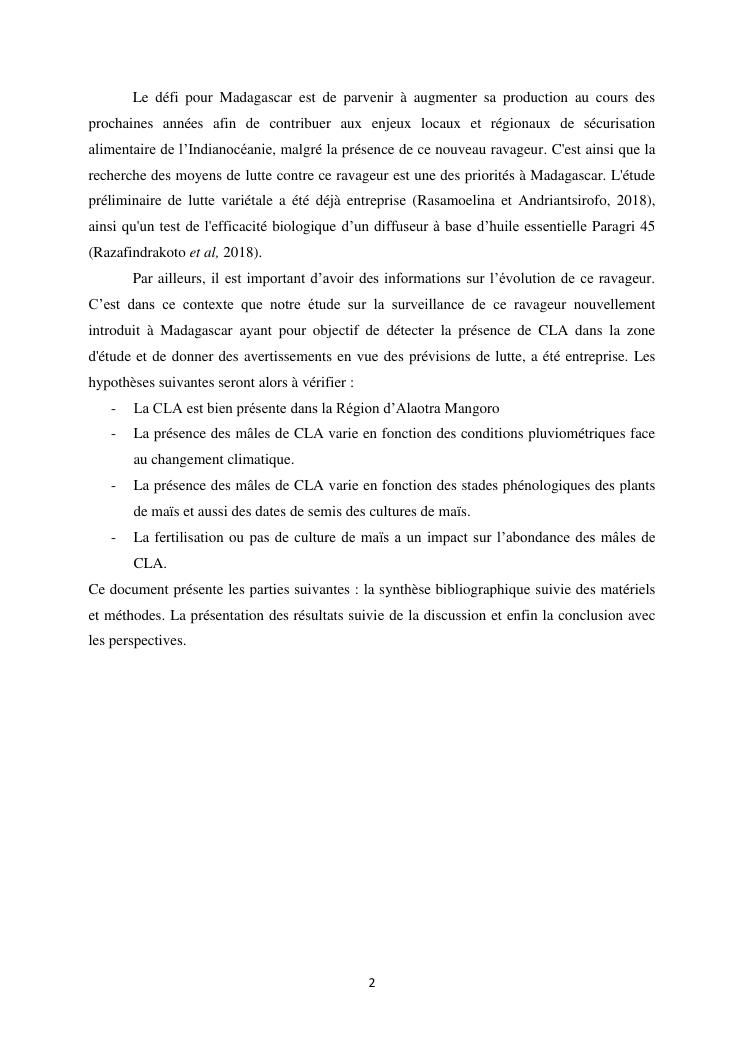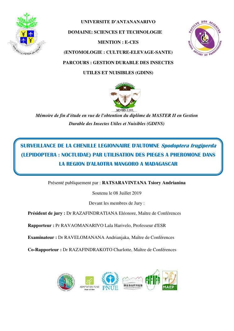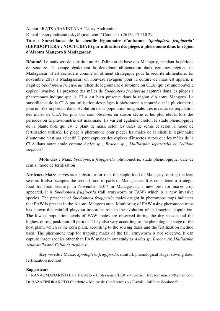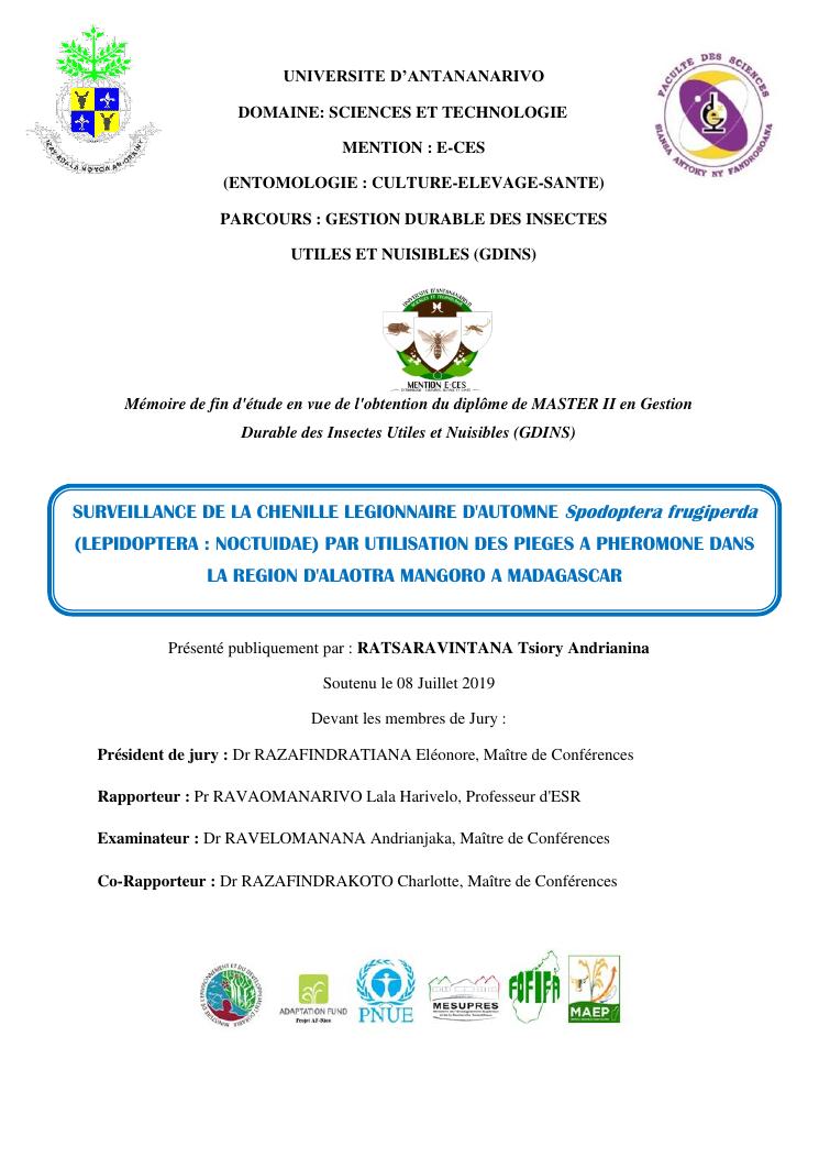 surveillance de la chenille legionnaire d'automne spodoptera frugiperda (lepidoptera : noctuidae) par utilisation des pieges a pheromone dans la region d'alaotra mangoro a madagascar