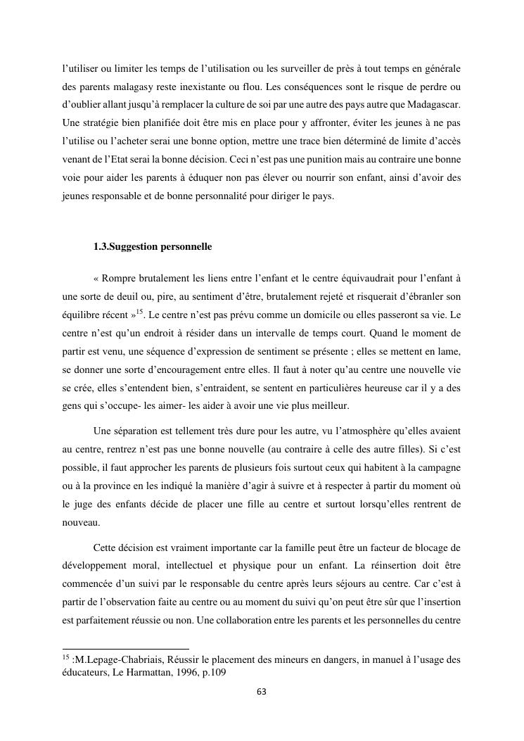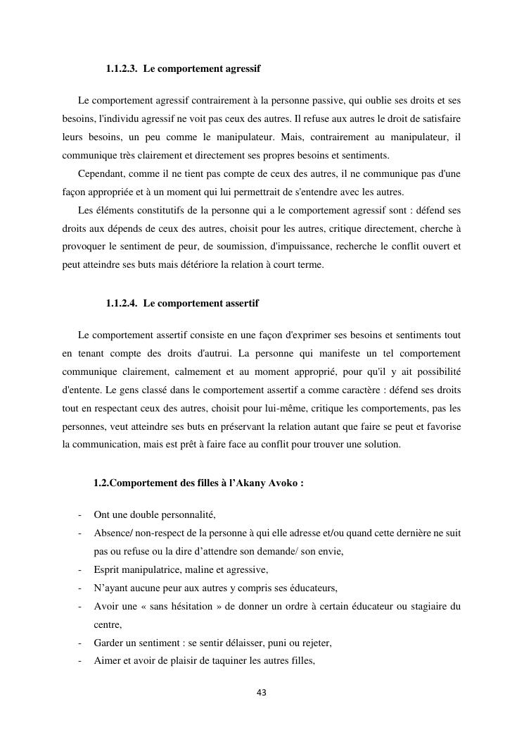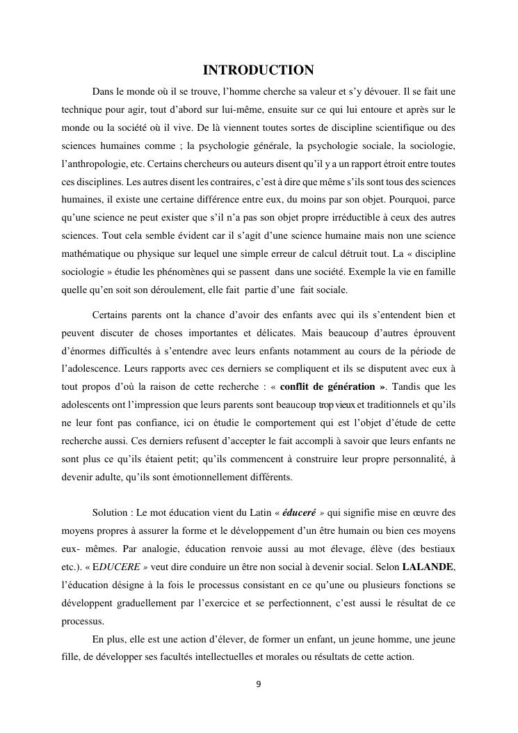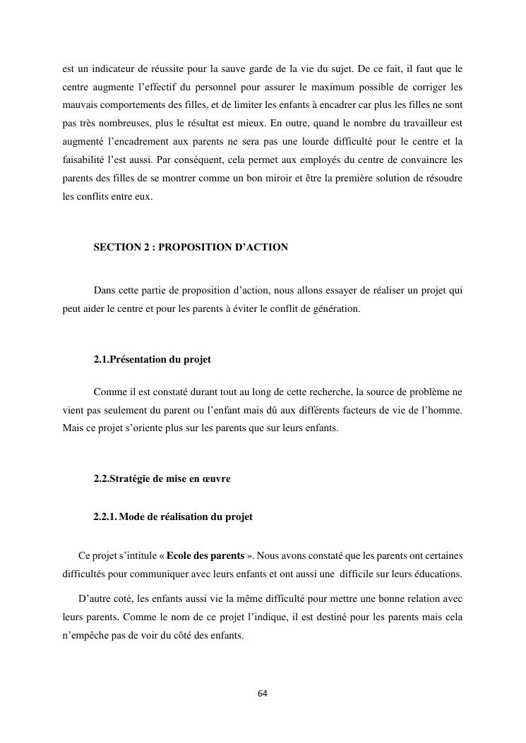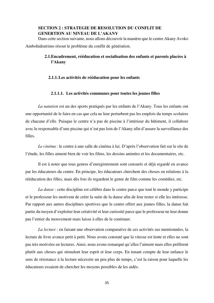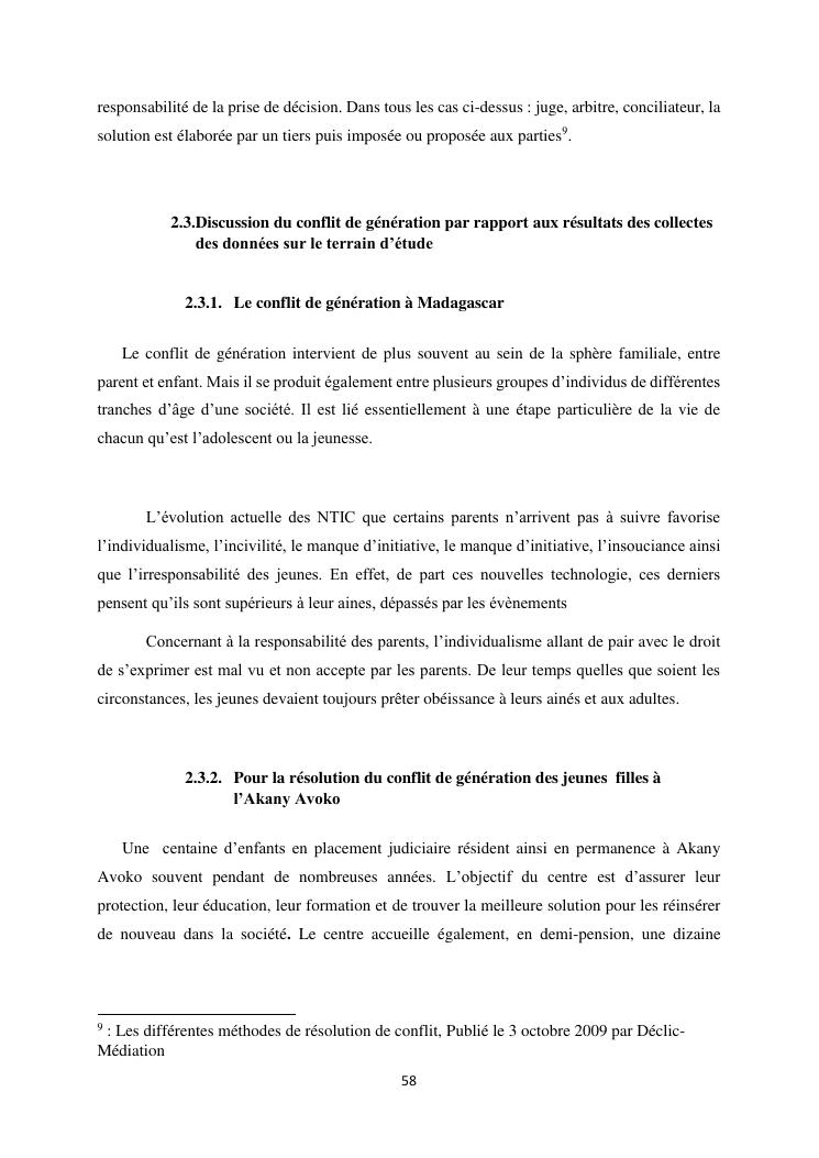 conflit de generation a antananarivo : etude du comportement des jeunes filles mineures âgées de 9 à 13 ans : cas du centre avoko ambohidratrimo