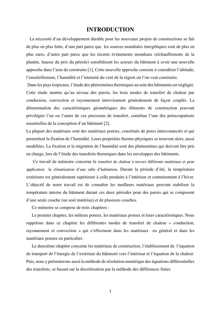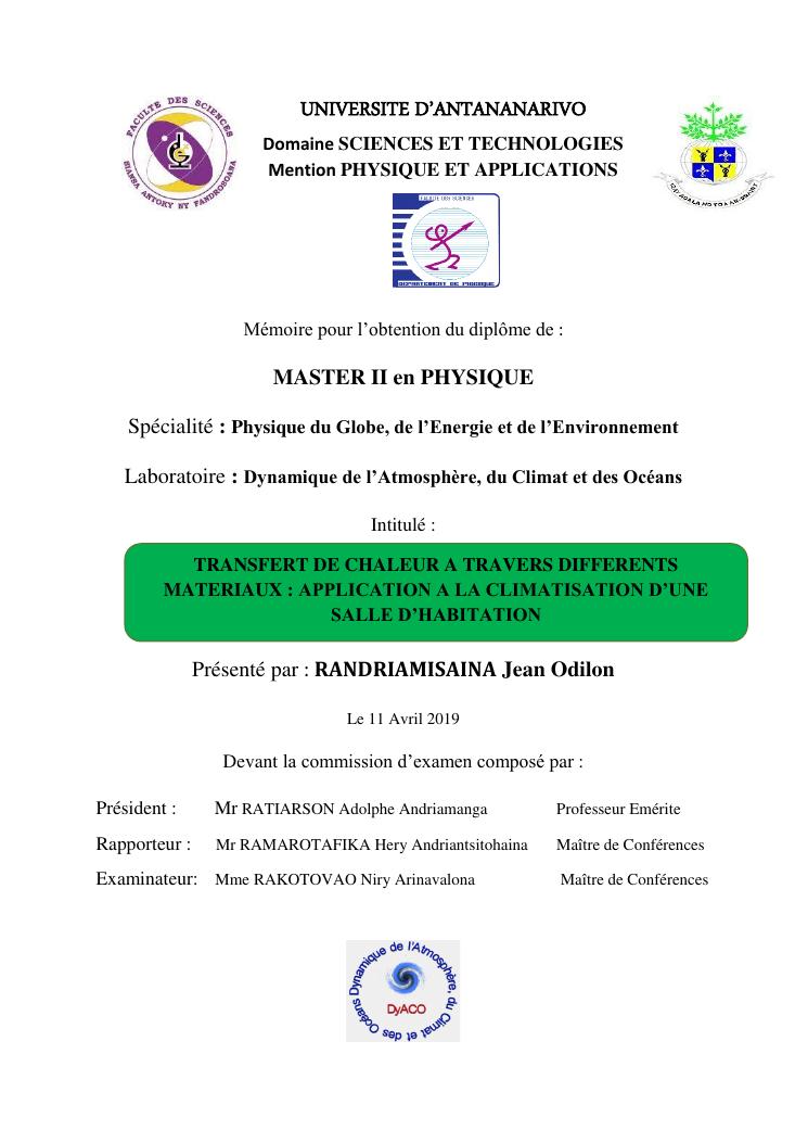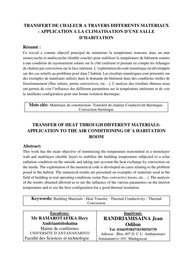 transfert de chaleur a travers differents materiaux : application a la climatisation d'une salle d'habitation