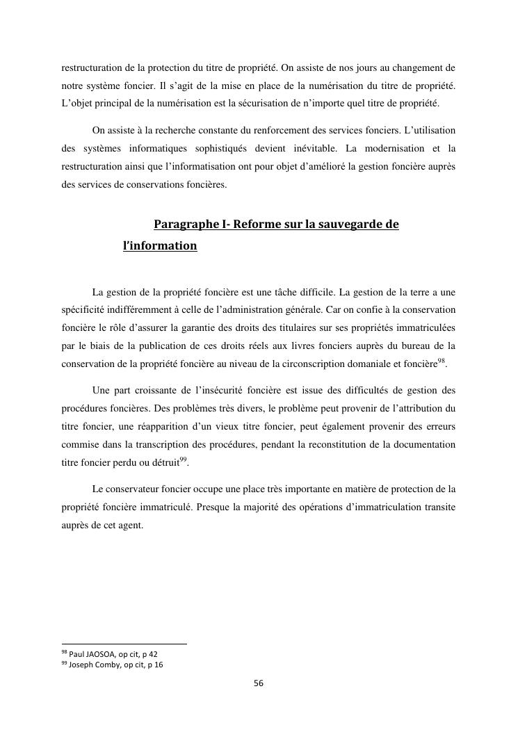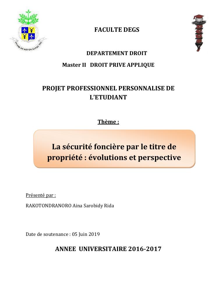 la securite fonciere par le titre de propriete : evolution et perspective