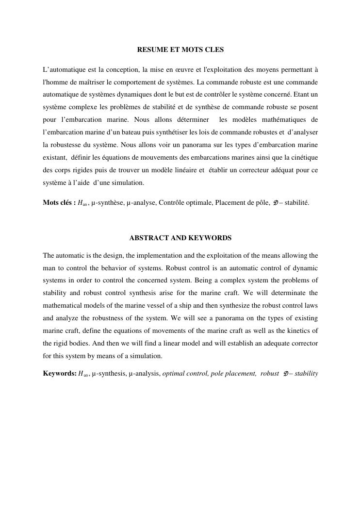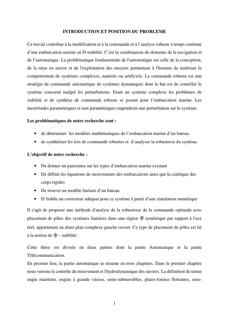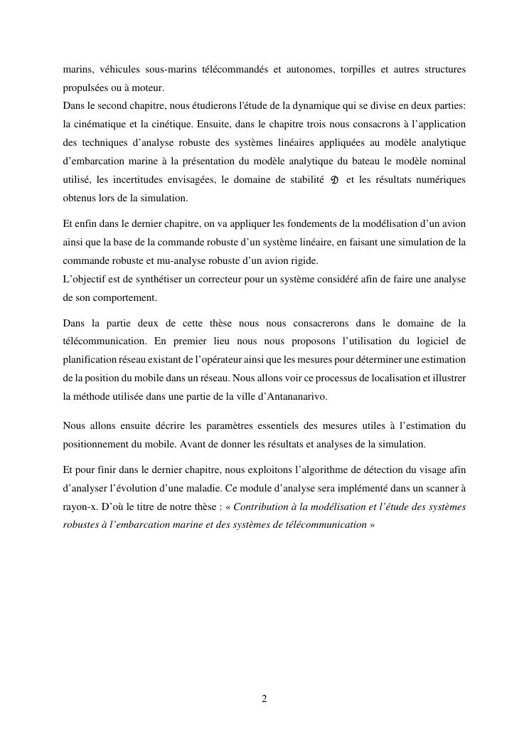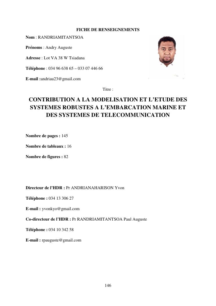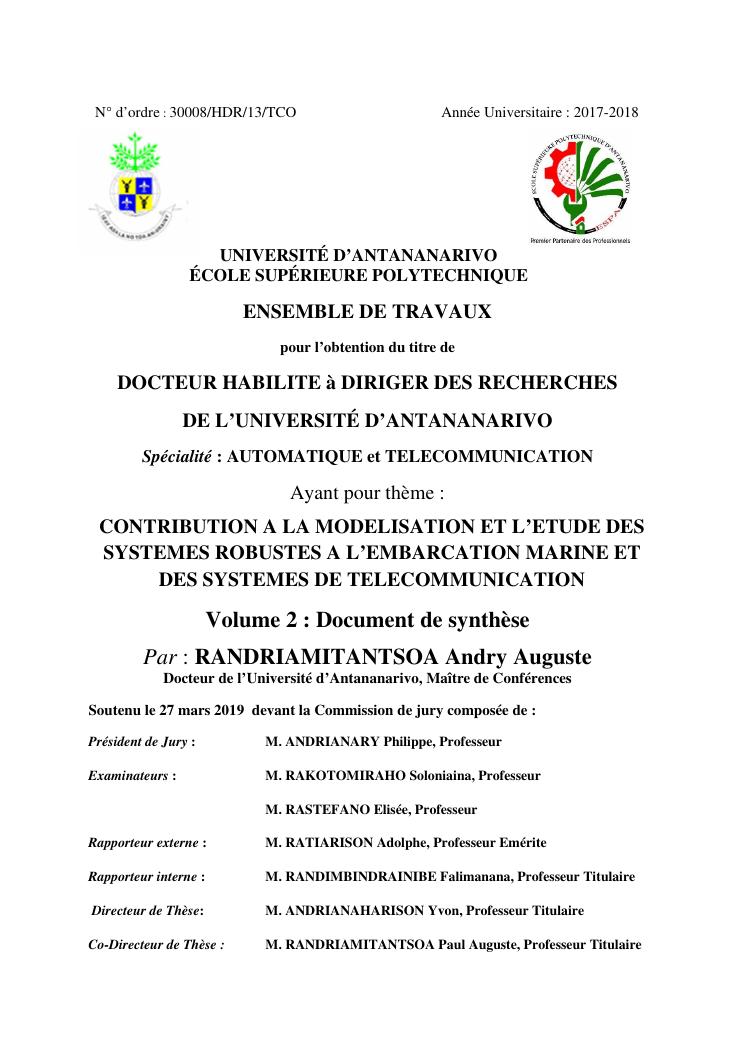 contribution a la modelisation et l'etude des systemes robustes a l'embarcation marine et des systemes de telecommunication. volume 2 : document de synthèse