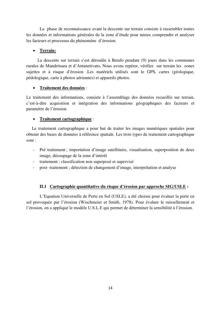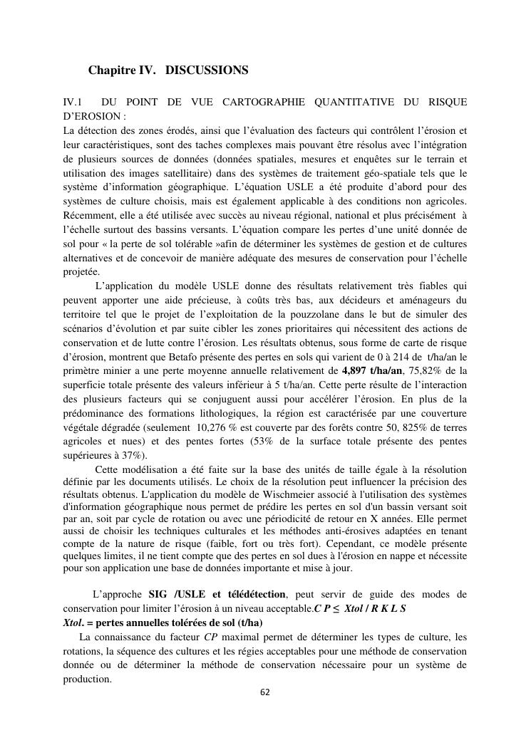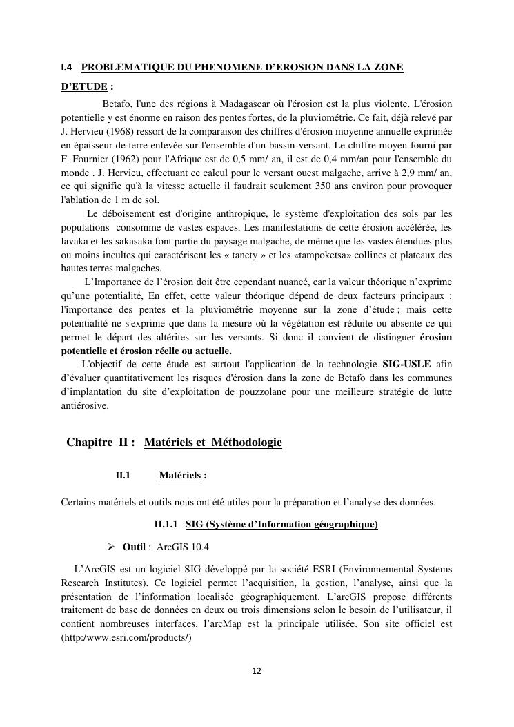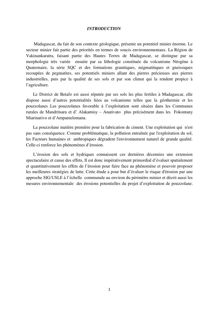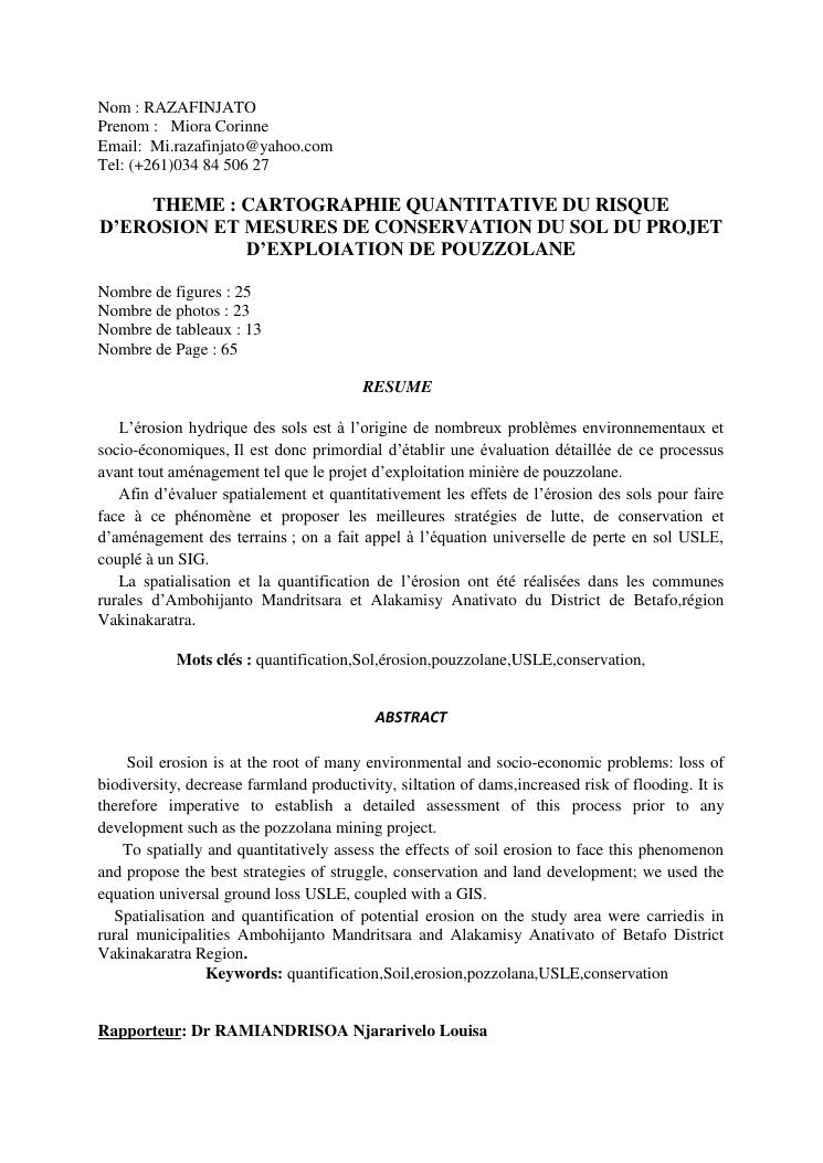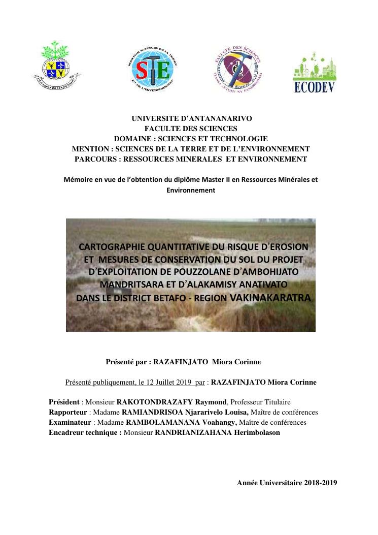 cartographie quantitative du risque d'erosion et mesures de conservation du sol du projet d'exploitation de pouzzolane d'ambohijato mandritsara et d'alakamisy anativato dans le district betafo - region vakinakaratra