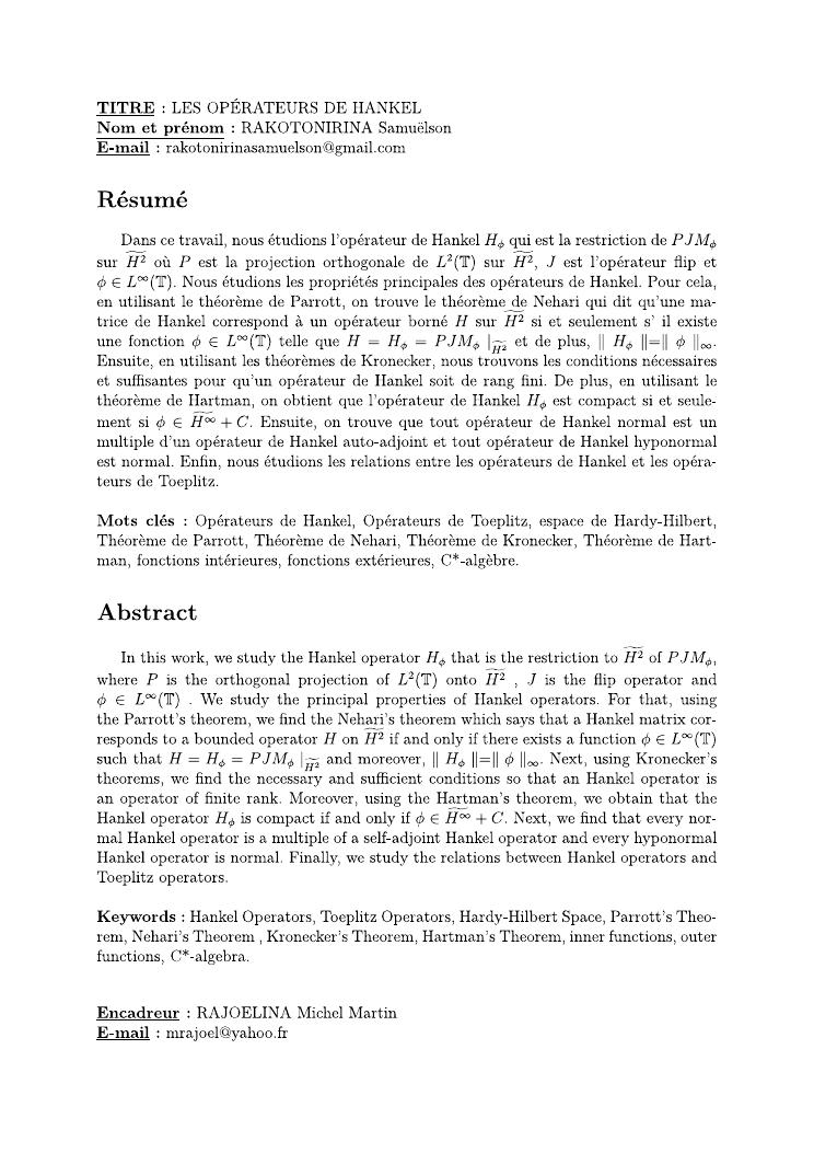 les operateurs de hankel