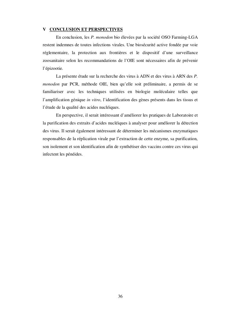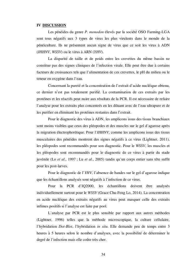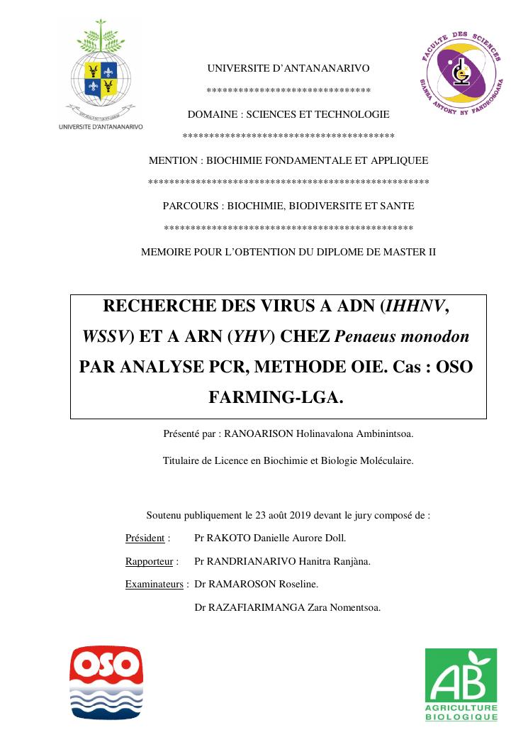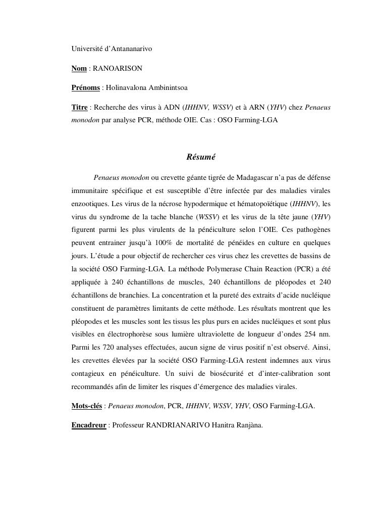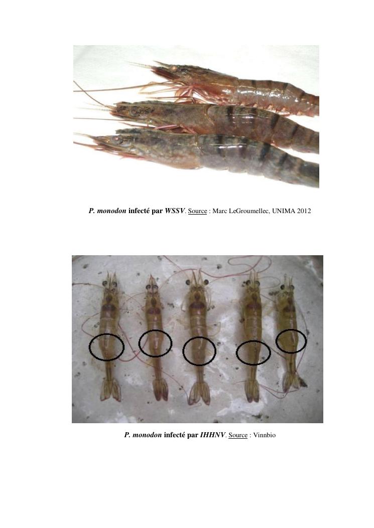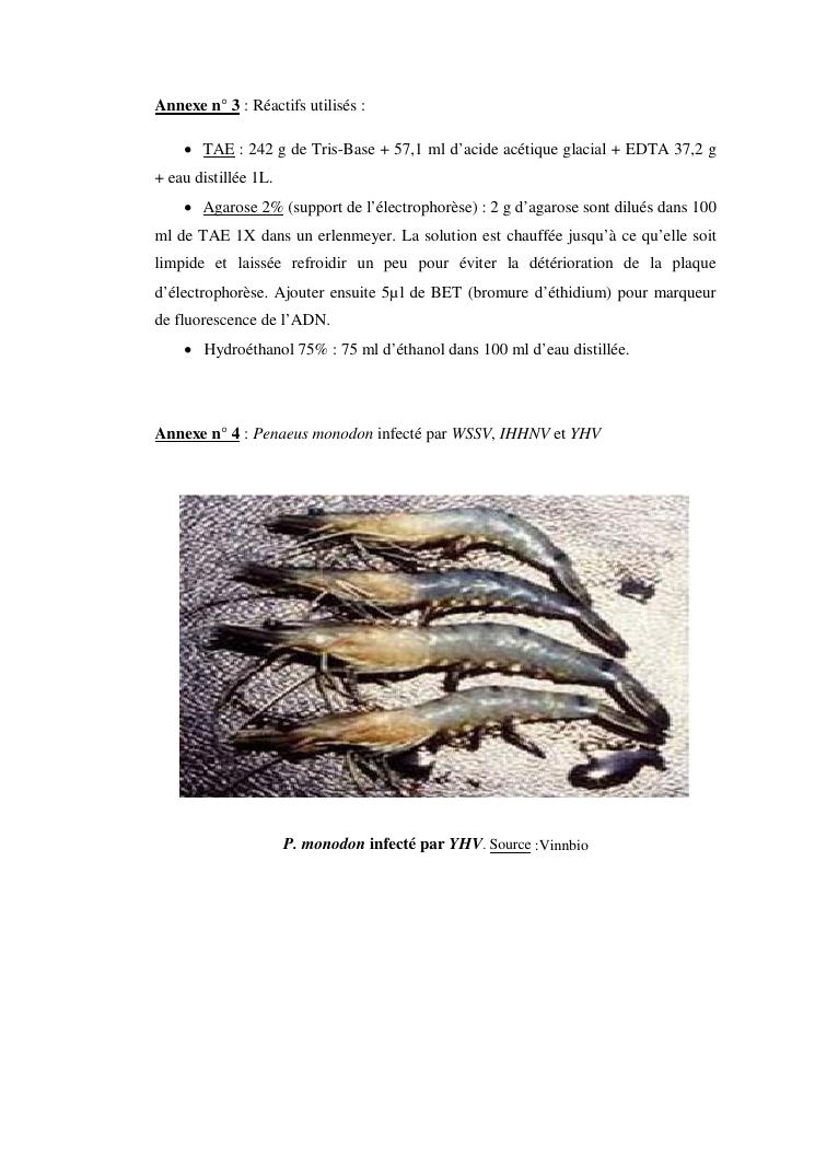 recherche des virus a adn (ihhnv, wssv) et a arn (yhv) chez penaeus monodon par analyse pcr, methode oie. cas : oso farming-lga.