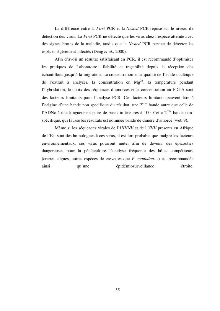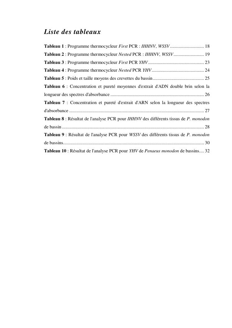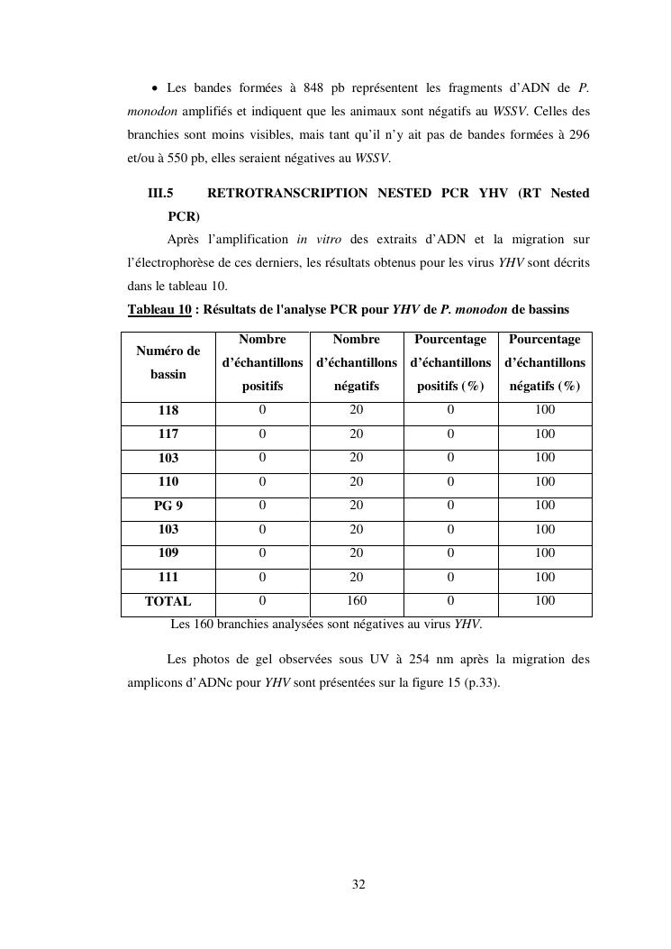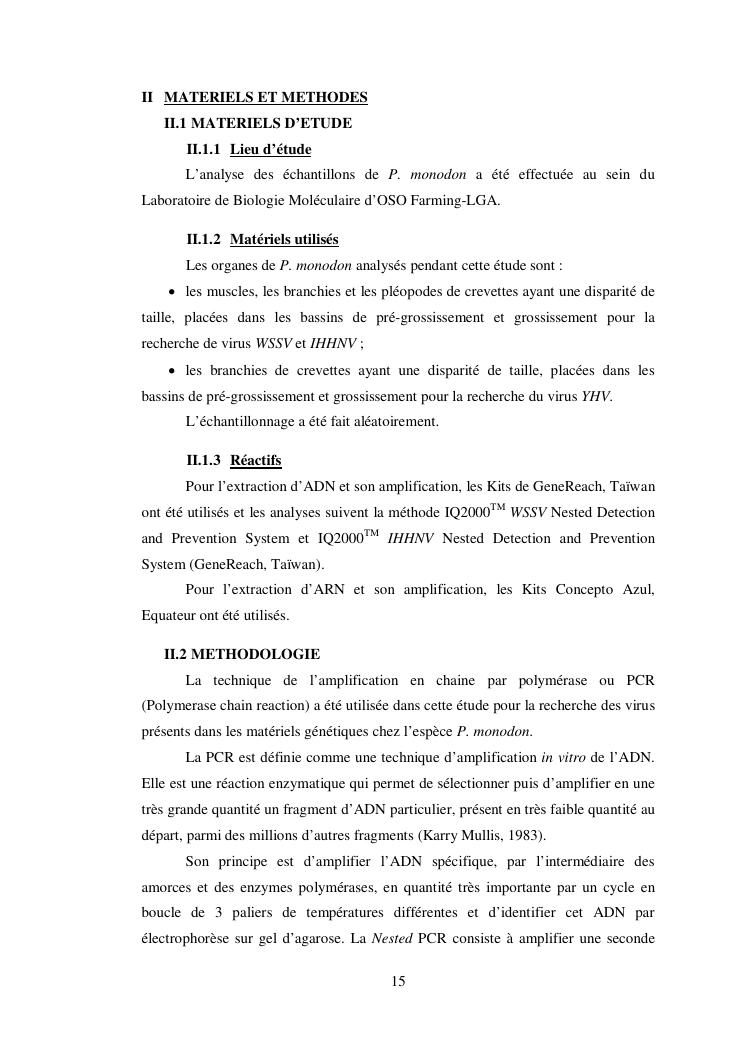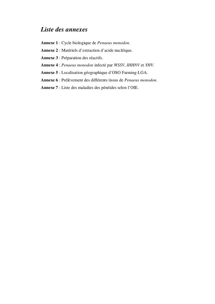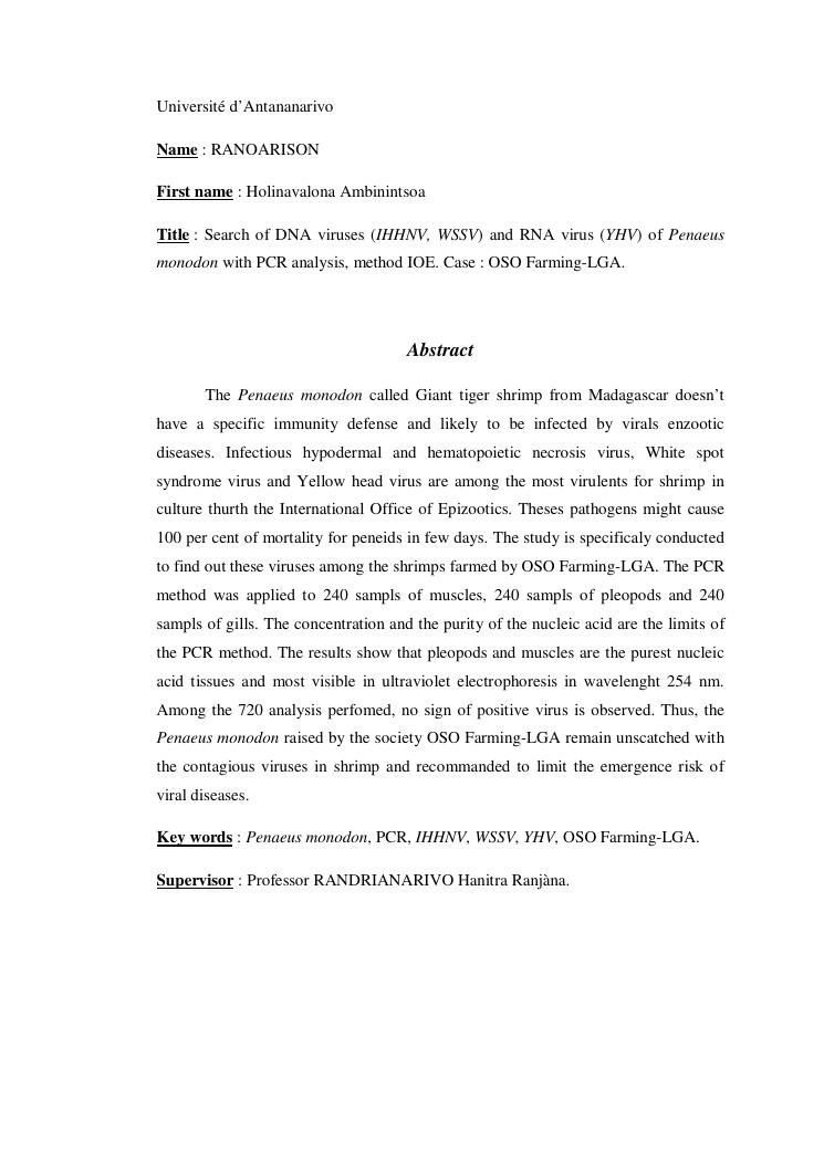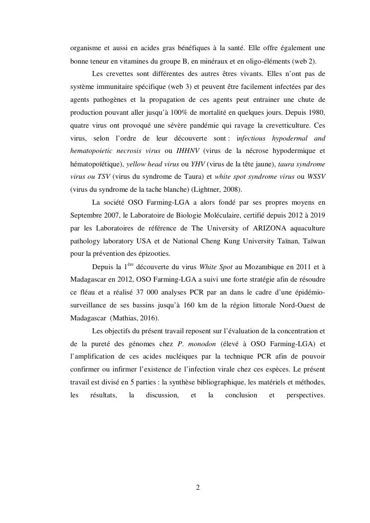 recherche des virus a adn (ihhnv, wssv) et a arn (yhv) chez penaeus monodon par analyse pcr, methode oie. cas : oso farming-lga.