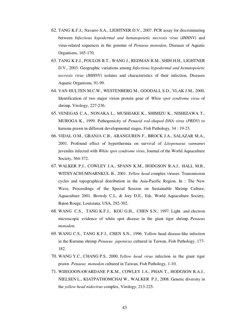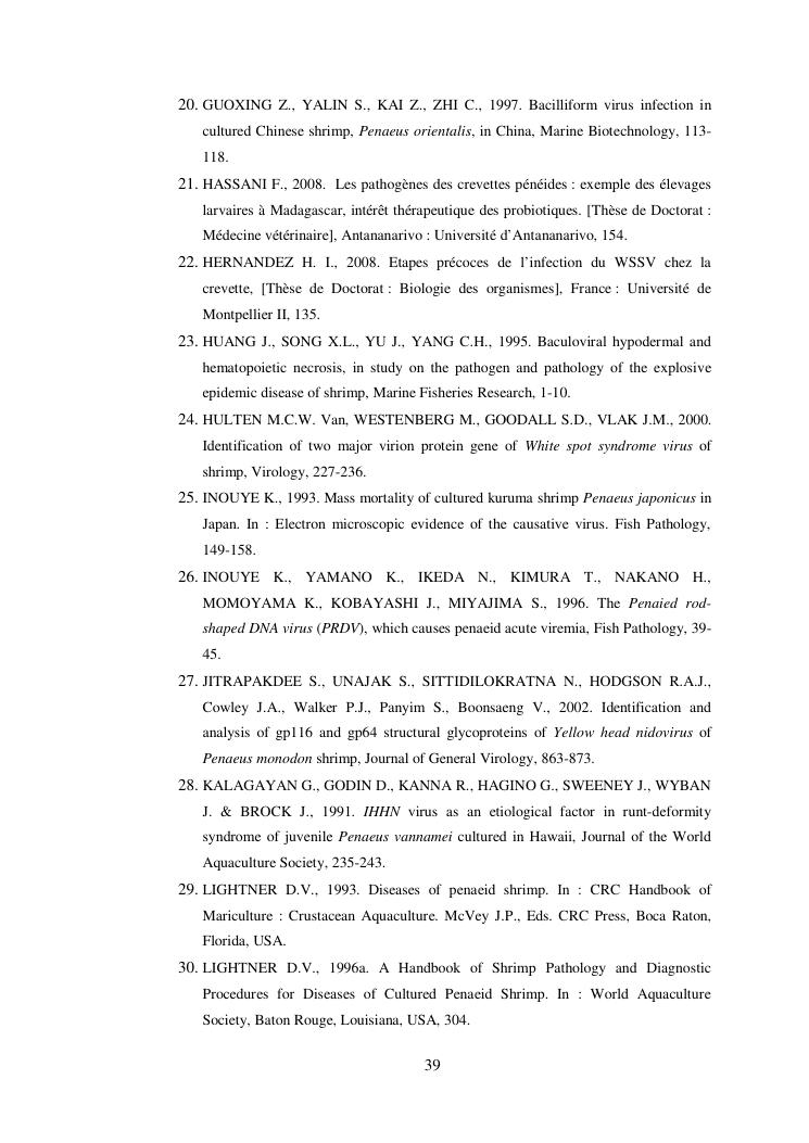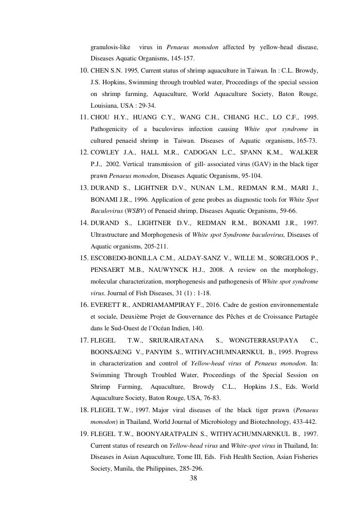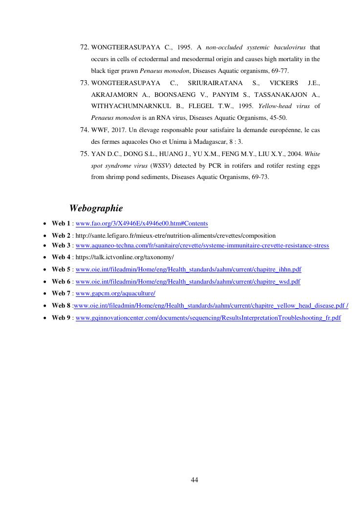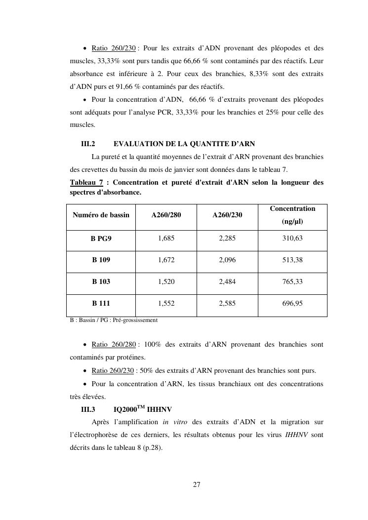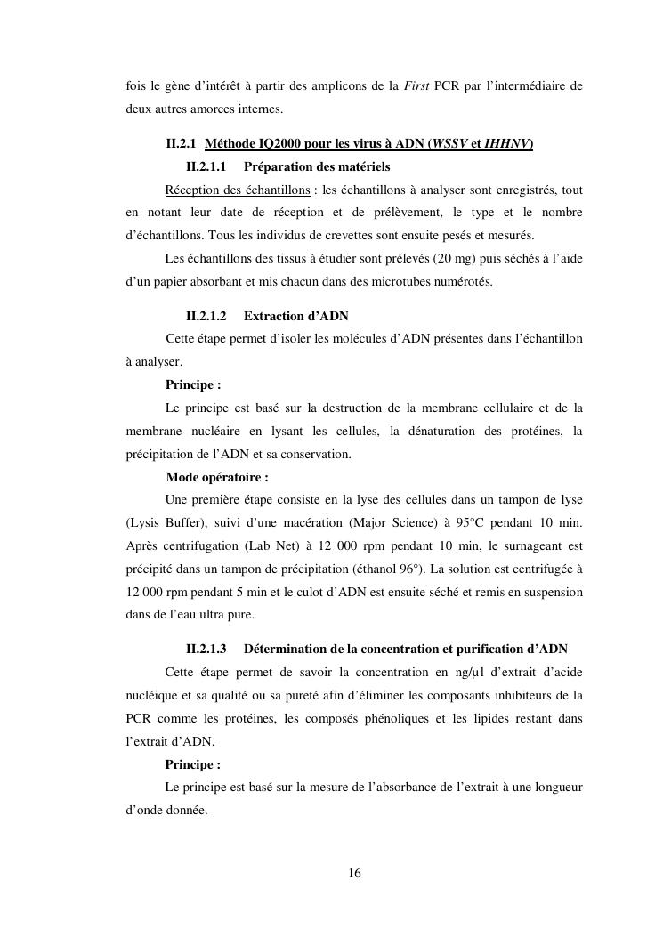 recherche des virus a adn (ihhnv, wssv) et a arn (yhv) chez penaeus monodon par analyse pcr, methode oie. cas : oso farming-lga.