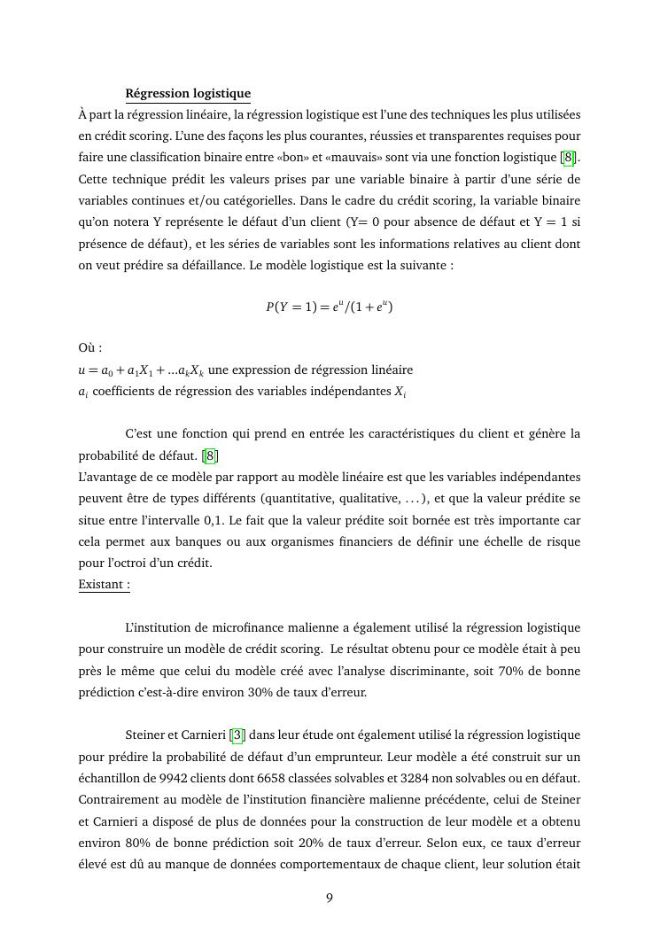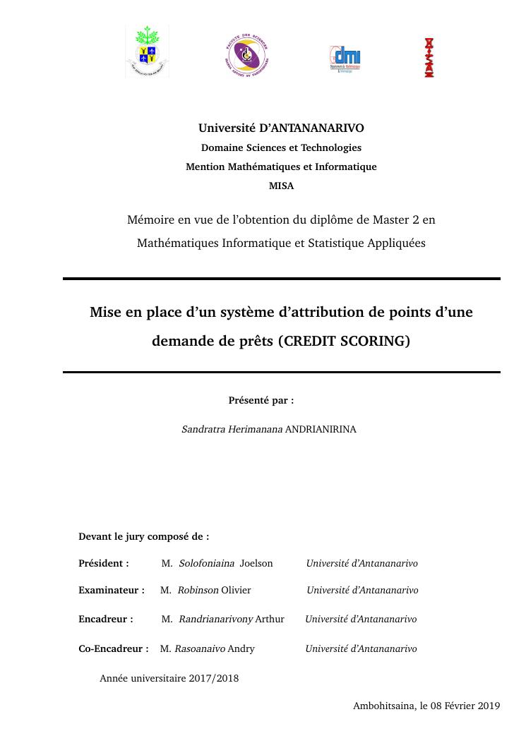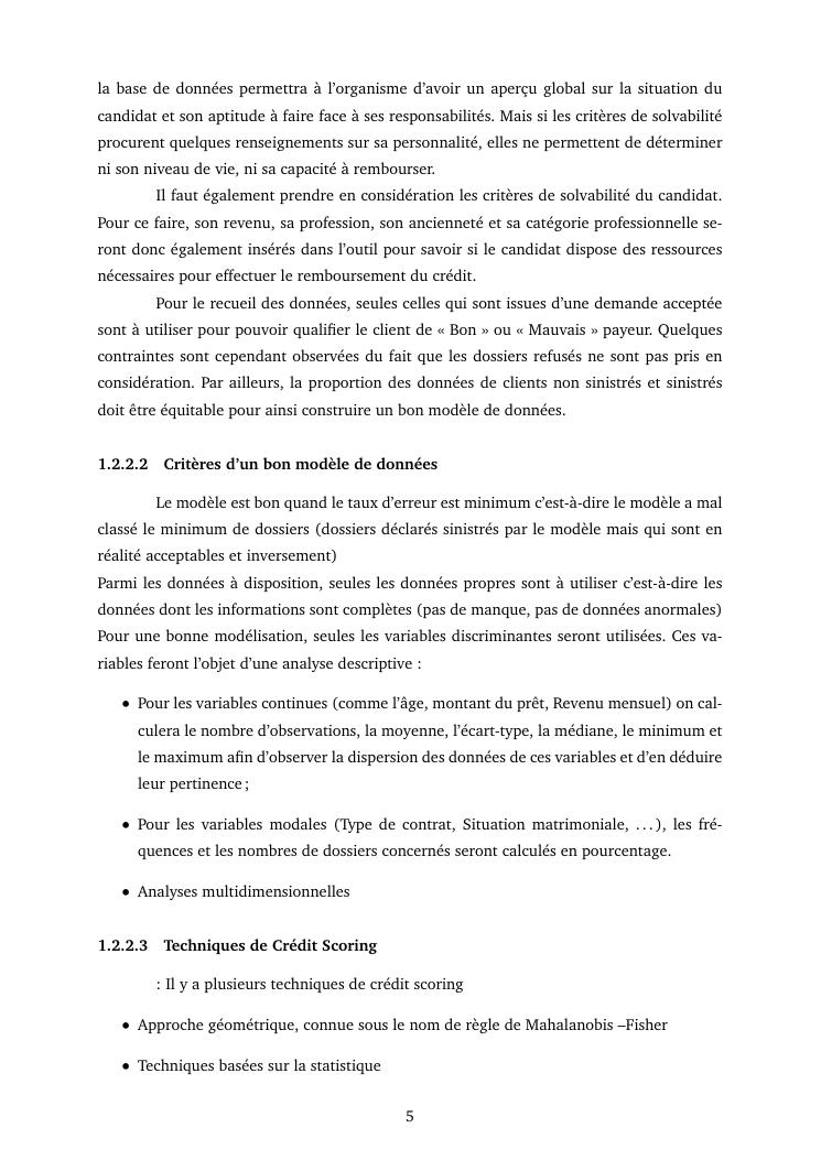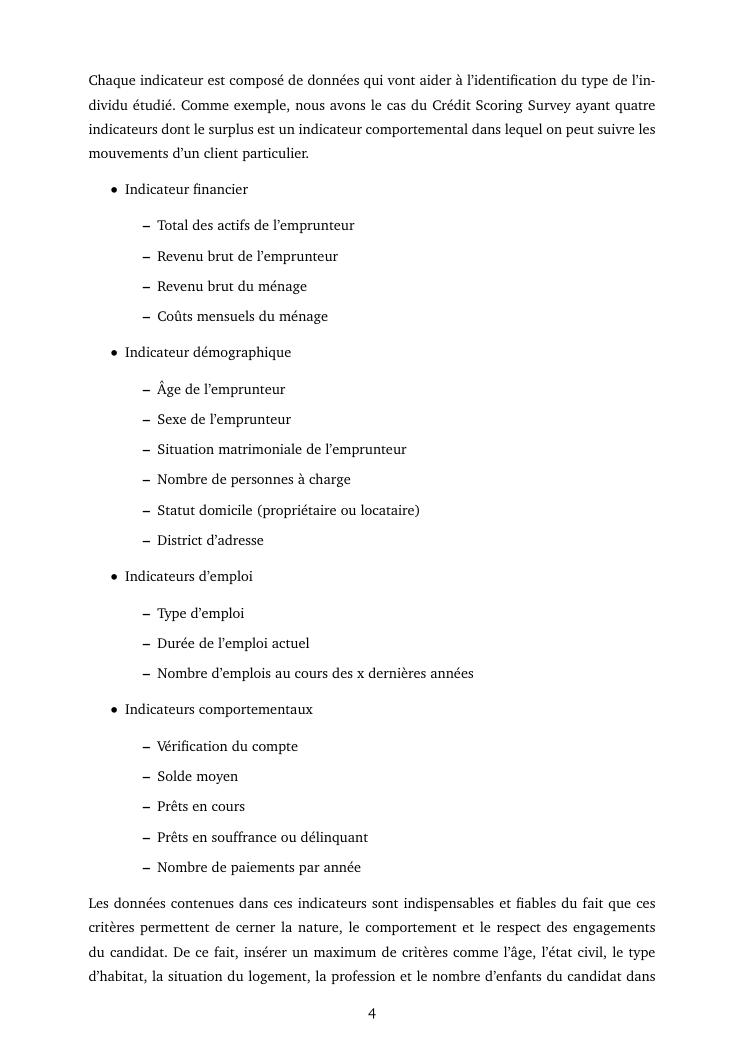 mise en place d'un système d'attribution de points d'une demande de prêts (credit scoring)