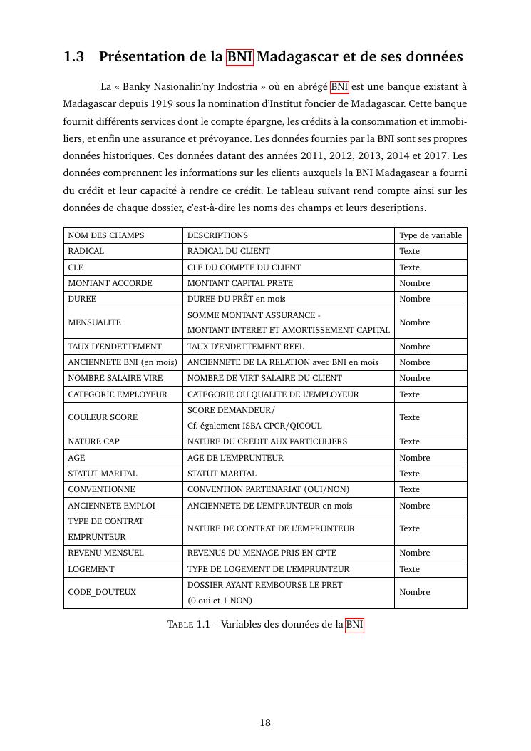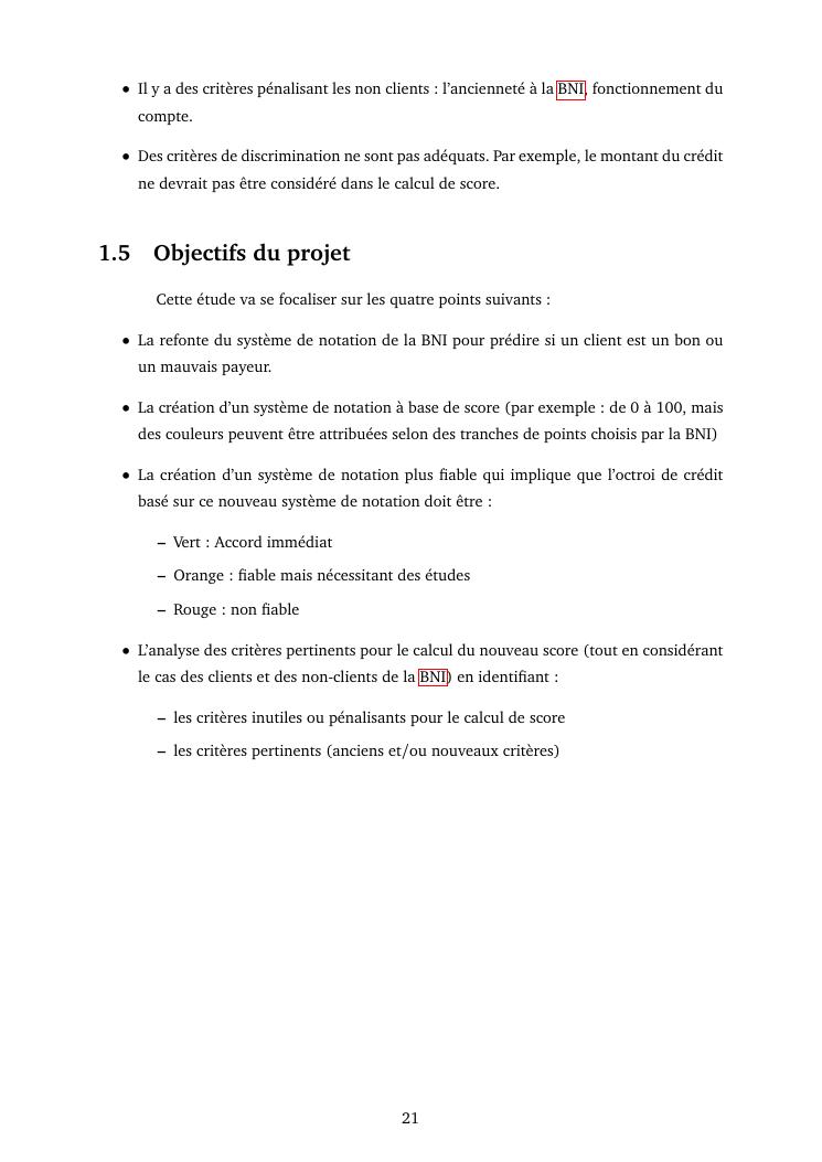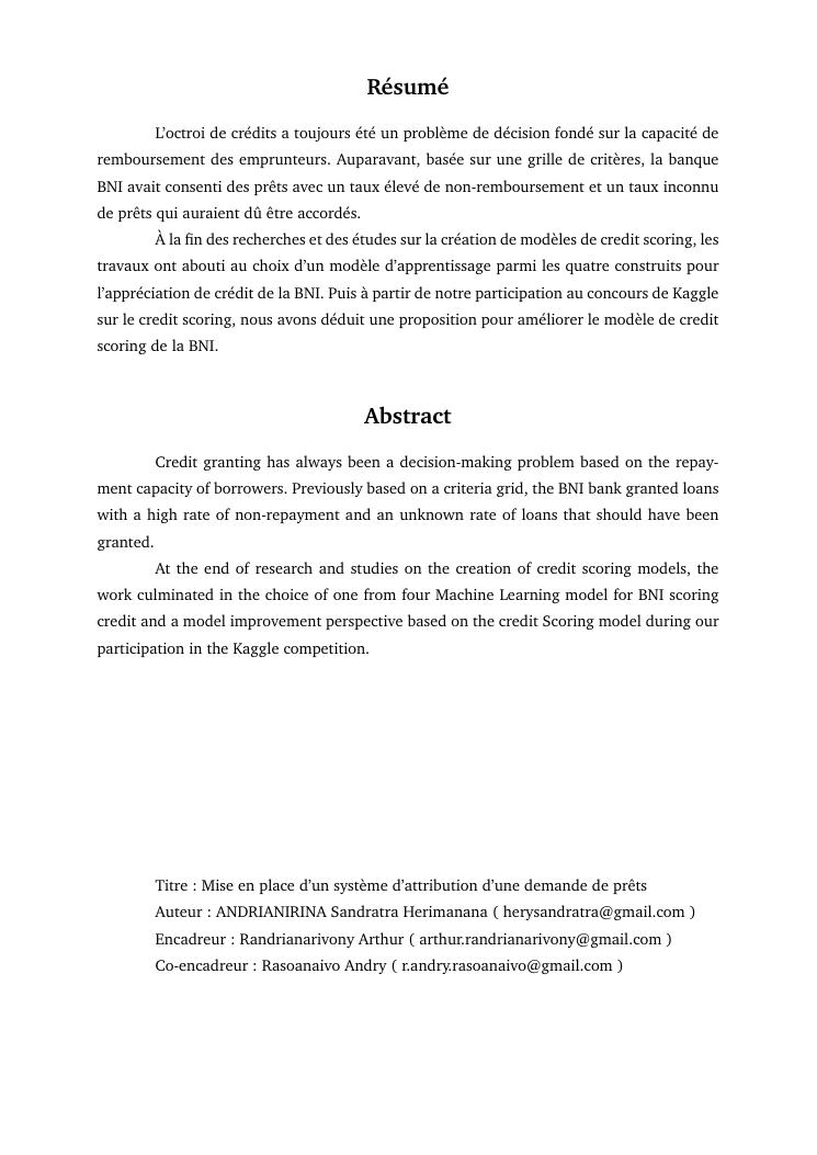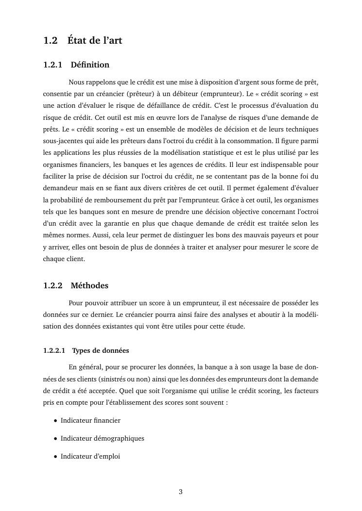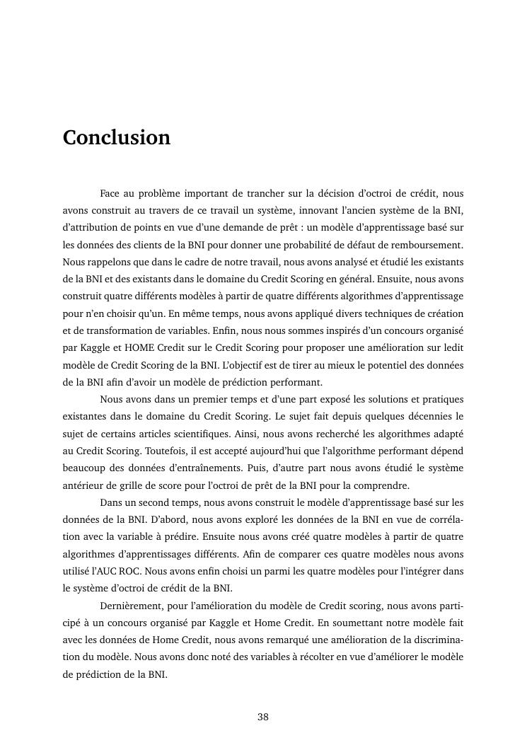 mise en place d'un système d'attribution de points d'une demande de prêts (credit scoring)