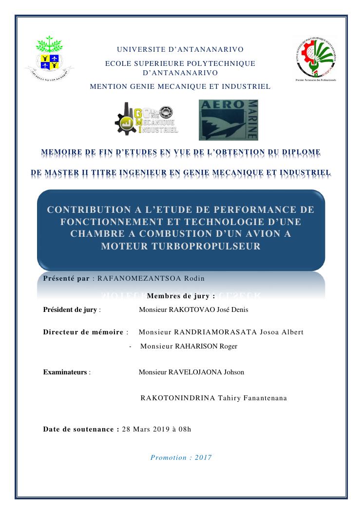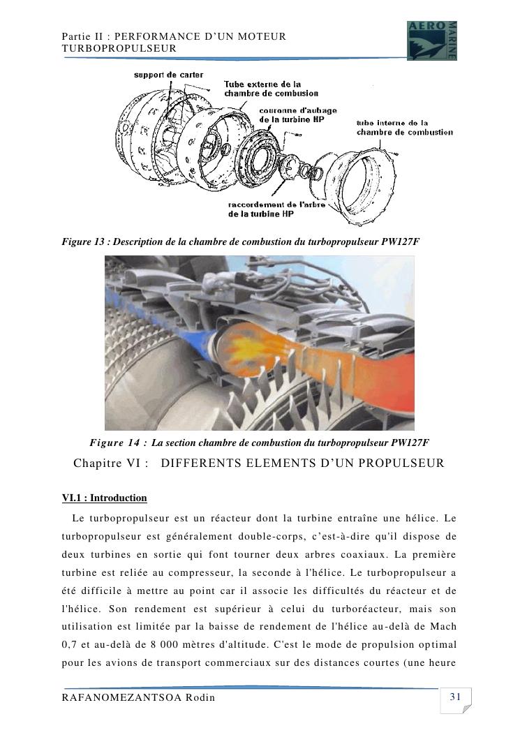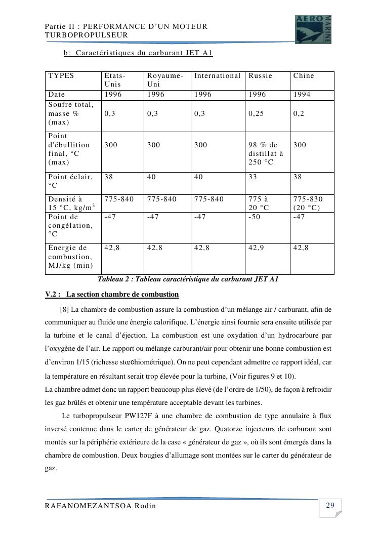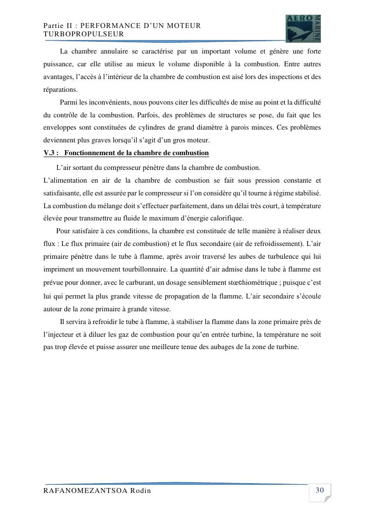 contribution a l'etude de performance de fonctionnement et technologie d'une chambre a combustion d'un avion a moteur turbopropulseur