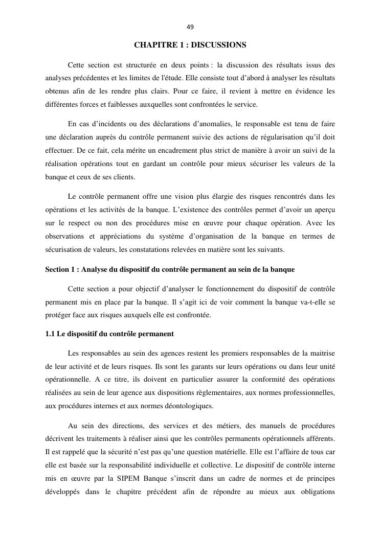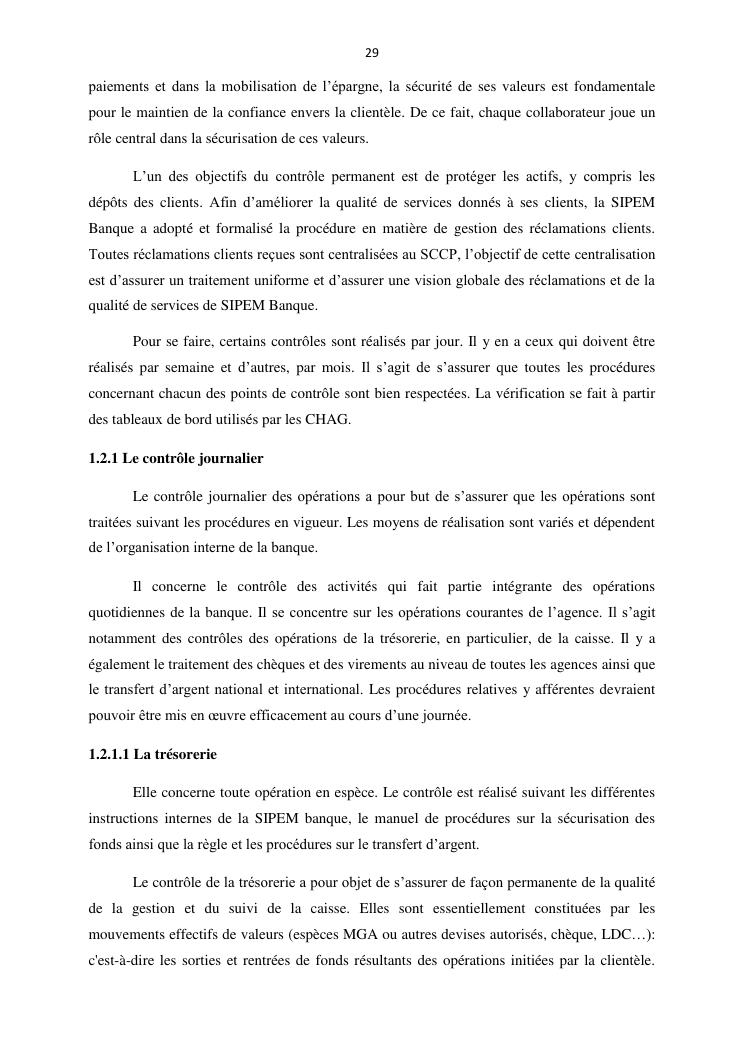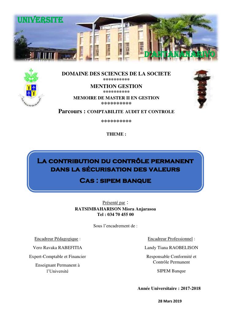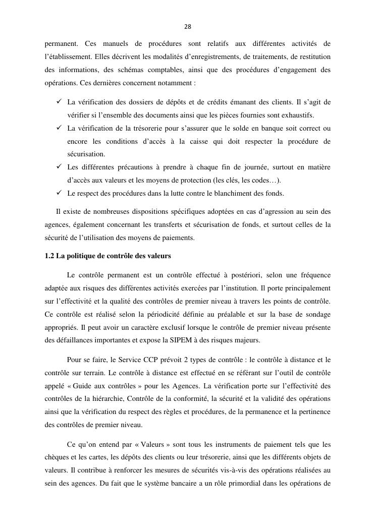 la contribution du contrôle permanent dans la sécurisation des valeurs cas : sipem banque