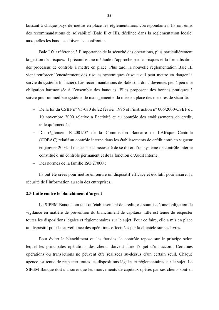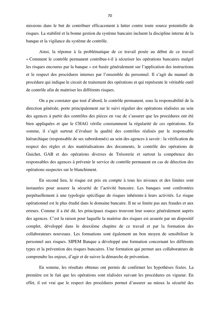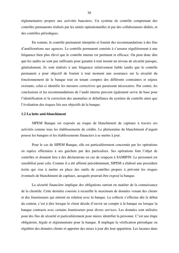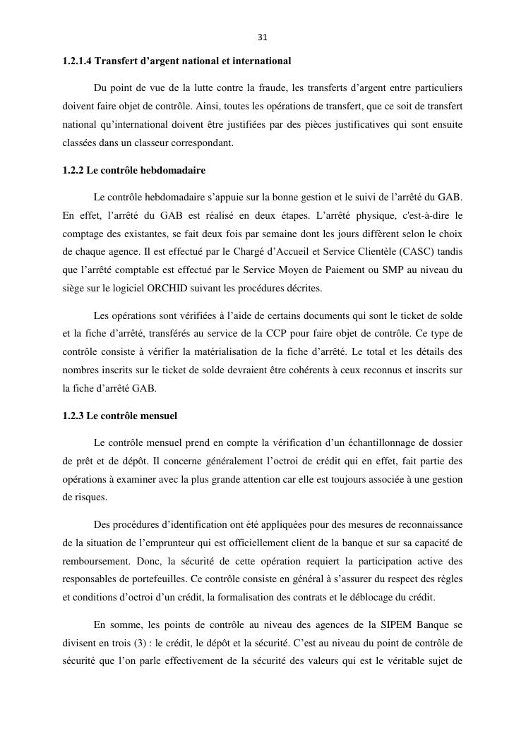 la contribution du contrôle permanent dans la sécurisation des valeurs cas : sipem banque
