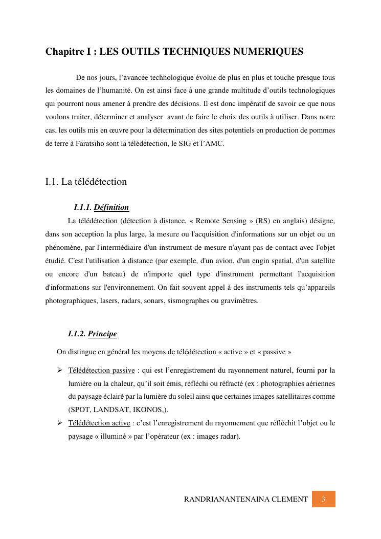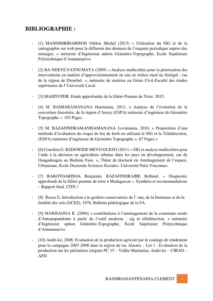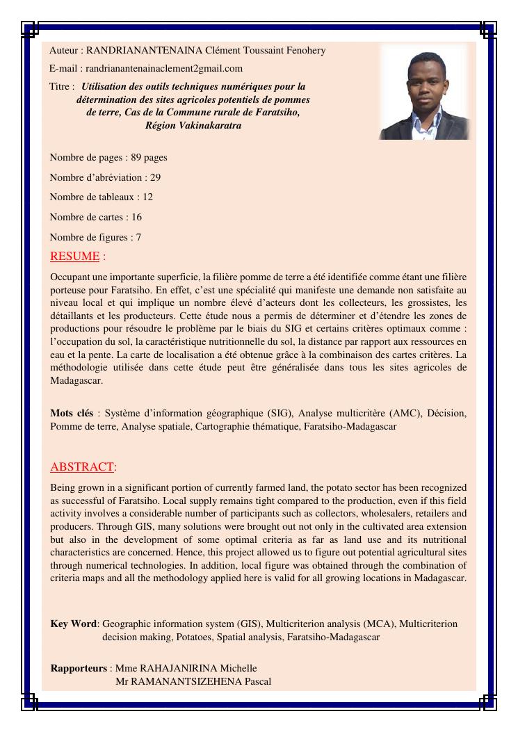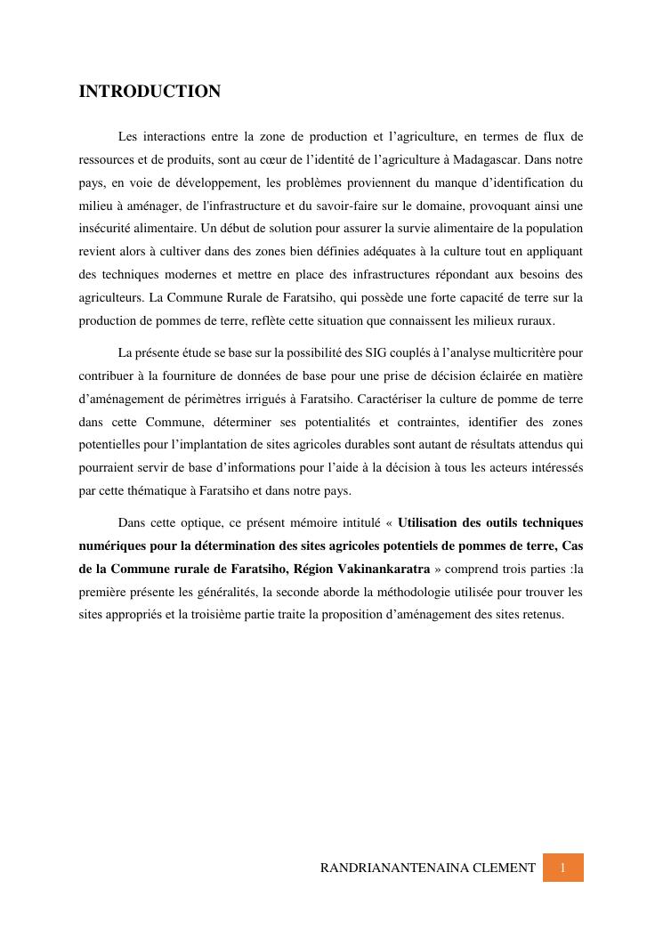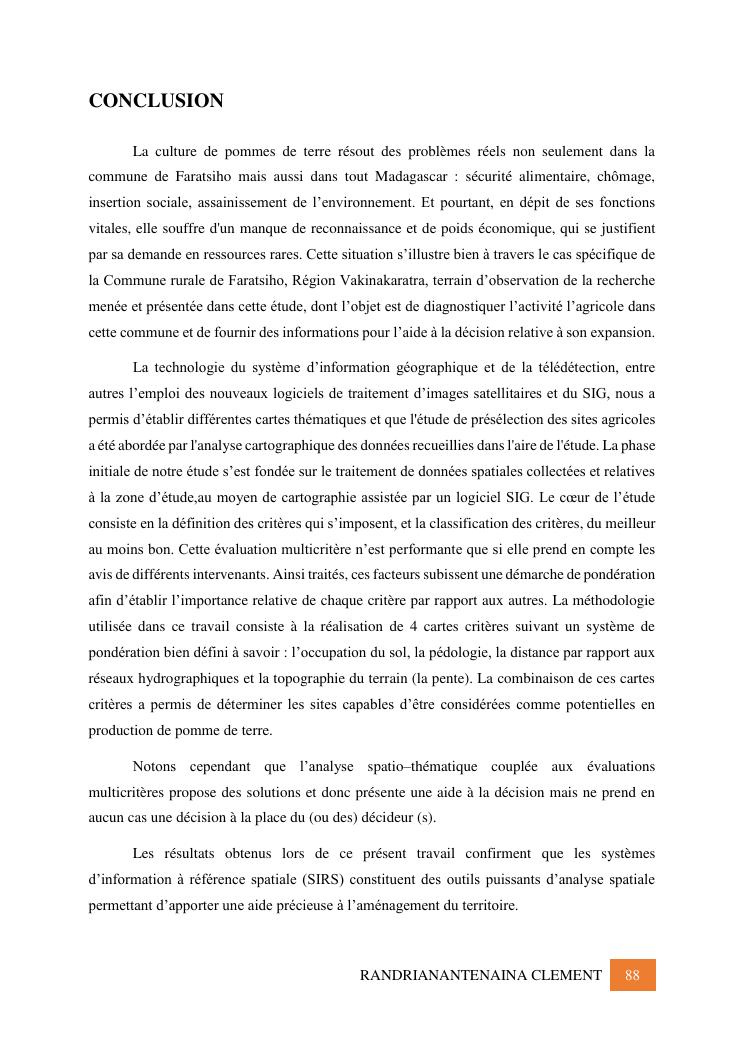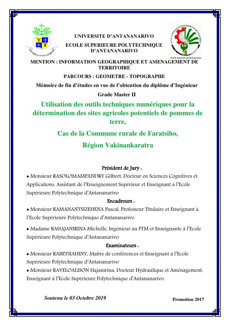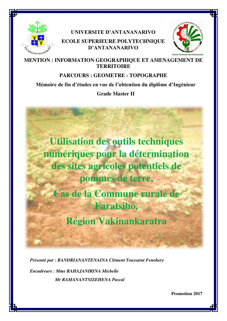 utilisation des outils techniques numériques pour la détermination des sites agricoles potentiels de pommes de terre : cas de la commune rurale de faratsiho, région vakinankaratra