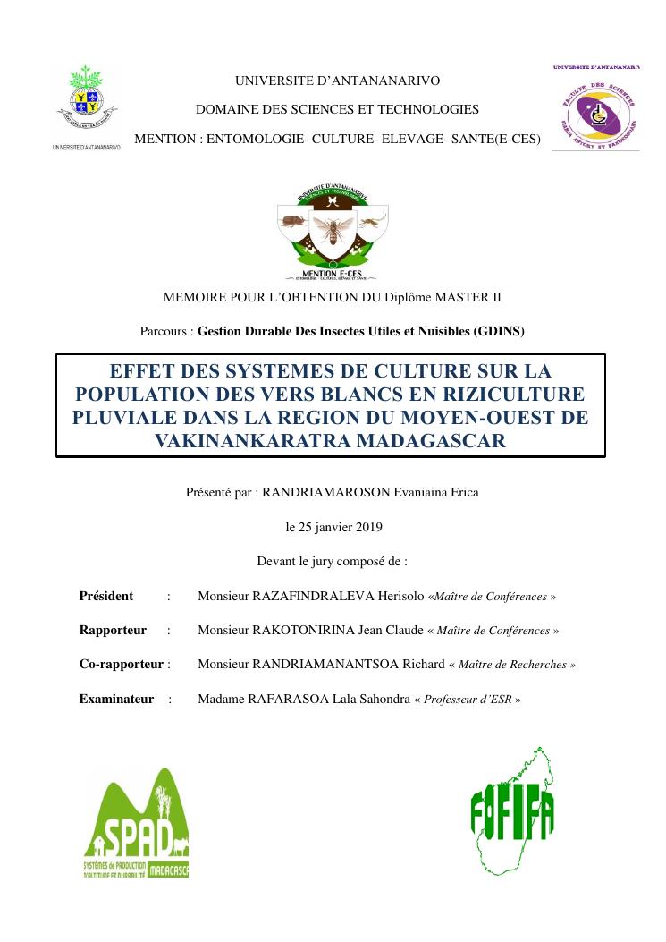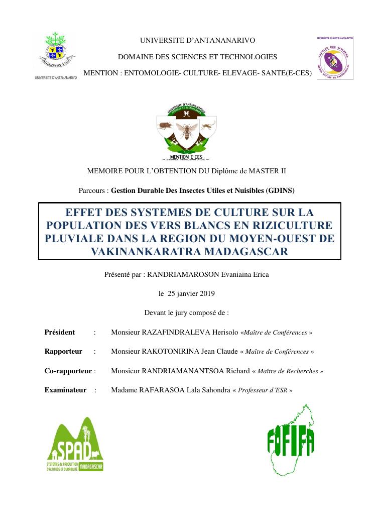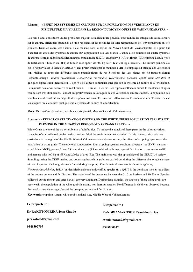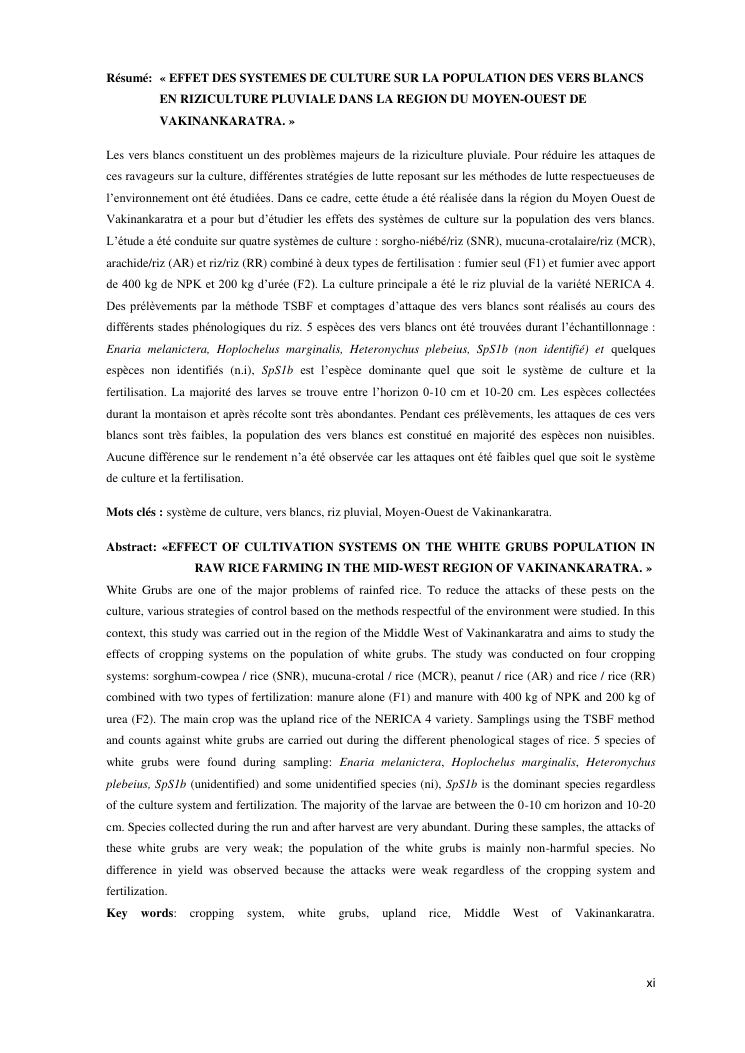 effet des systemes de culture sur la population des vers blancs en riziculture pluviale dans la region du moyen-ouest de vakinankaratra madagascar