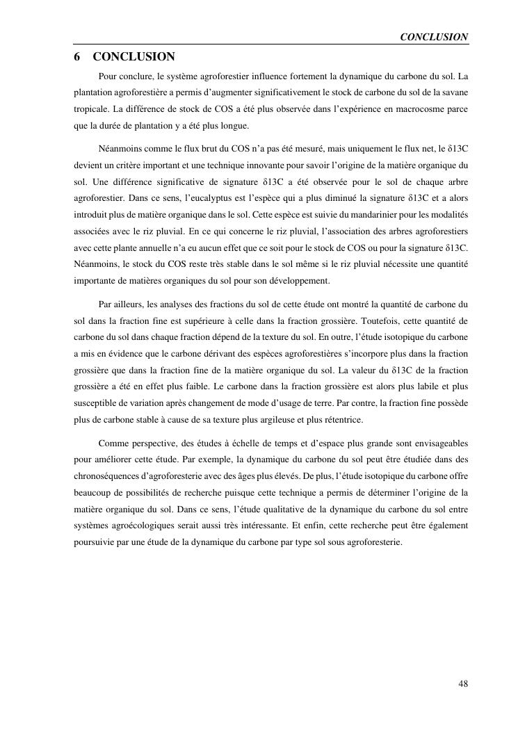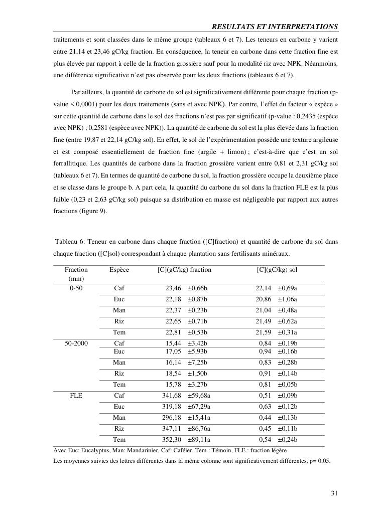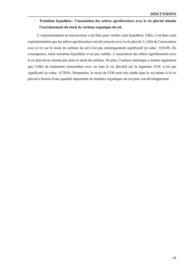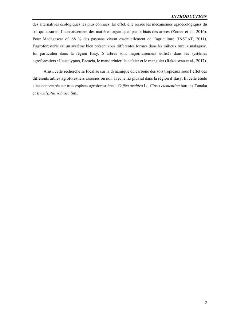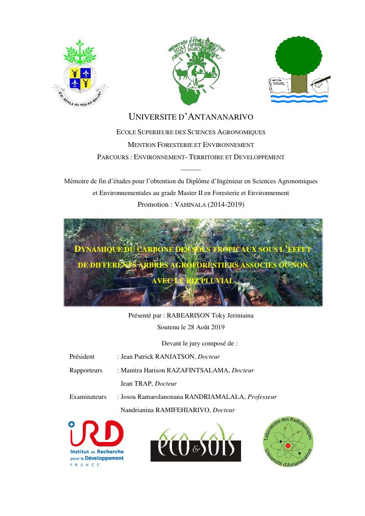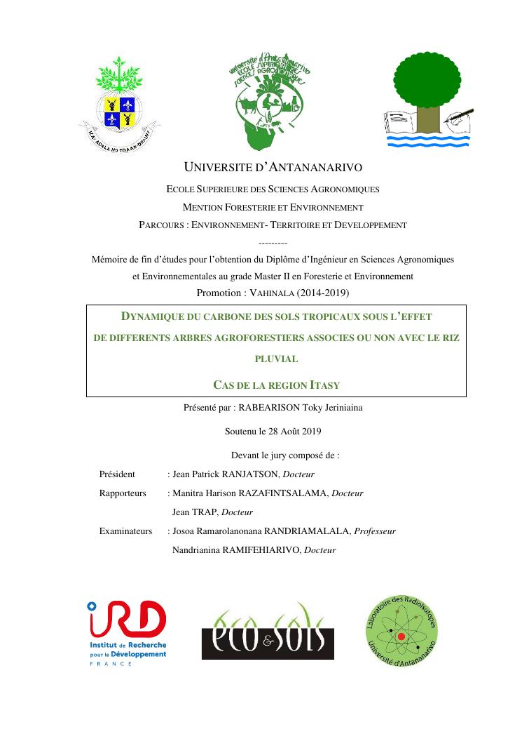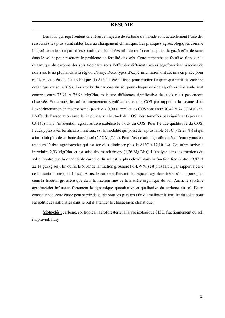 dynamique du carbone des sols tropicaux sous l'effet de differents arbres agroforestiers associes ou non avec le riz pluvial : cas de la region itasy