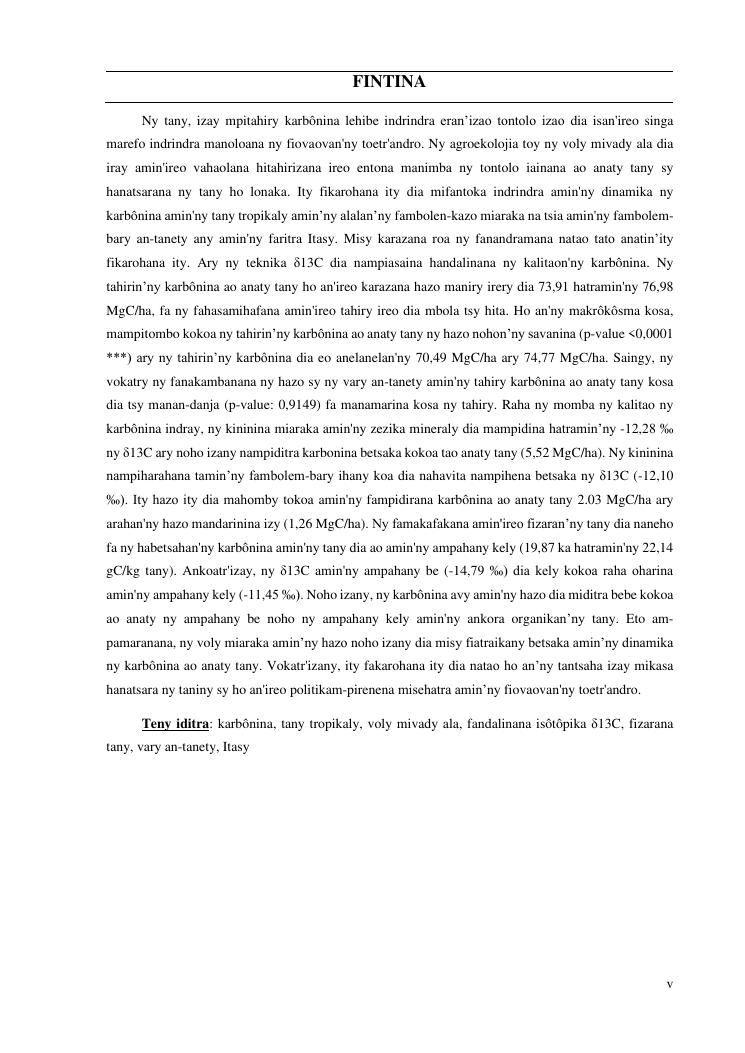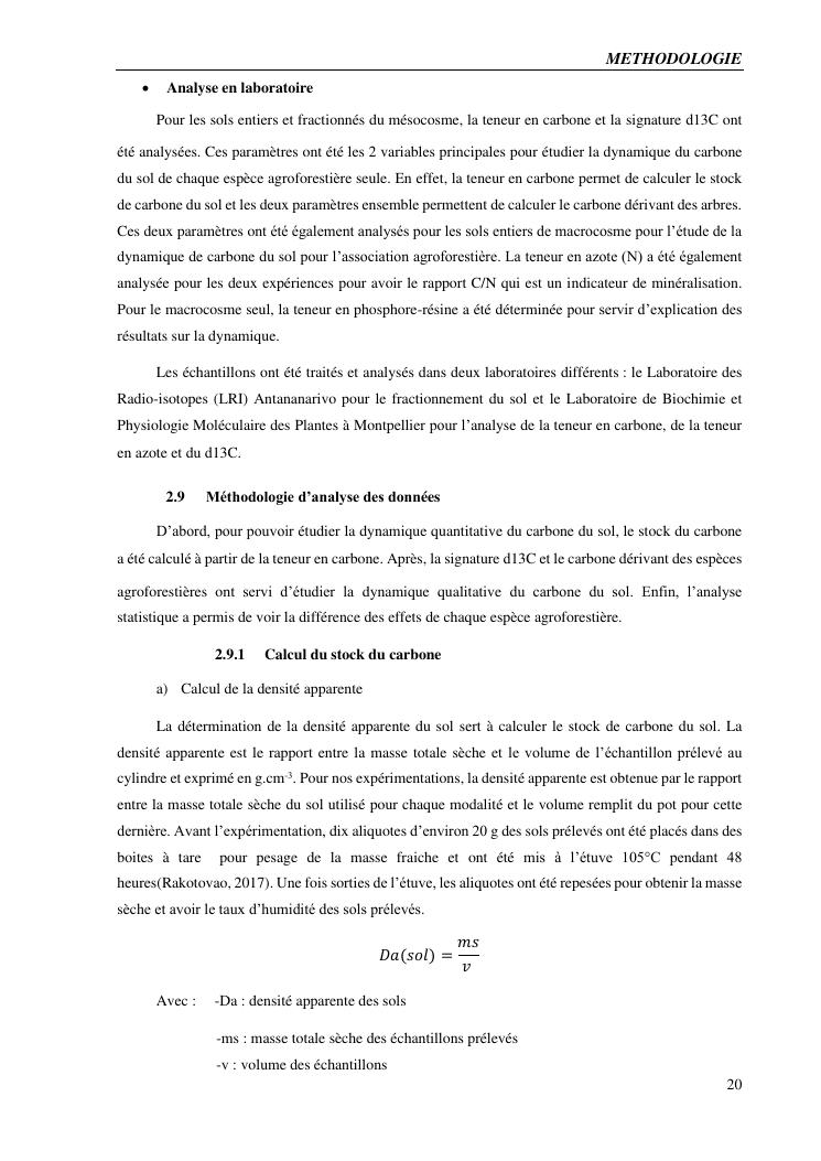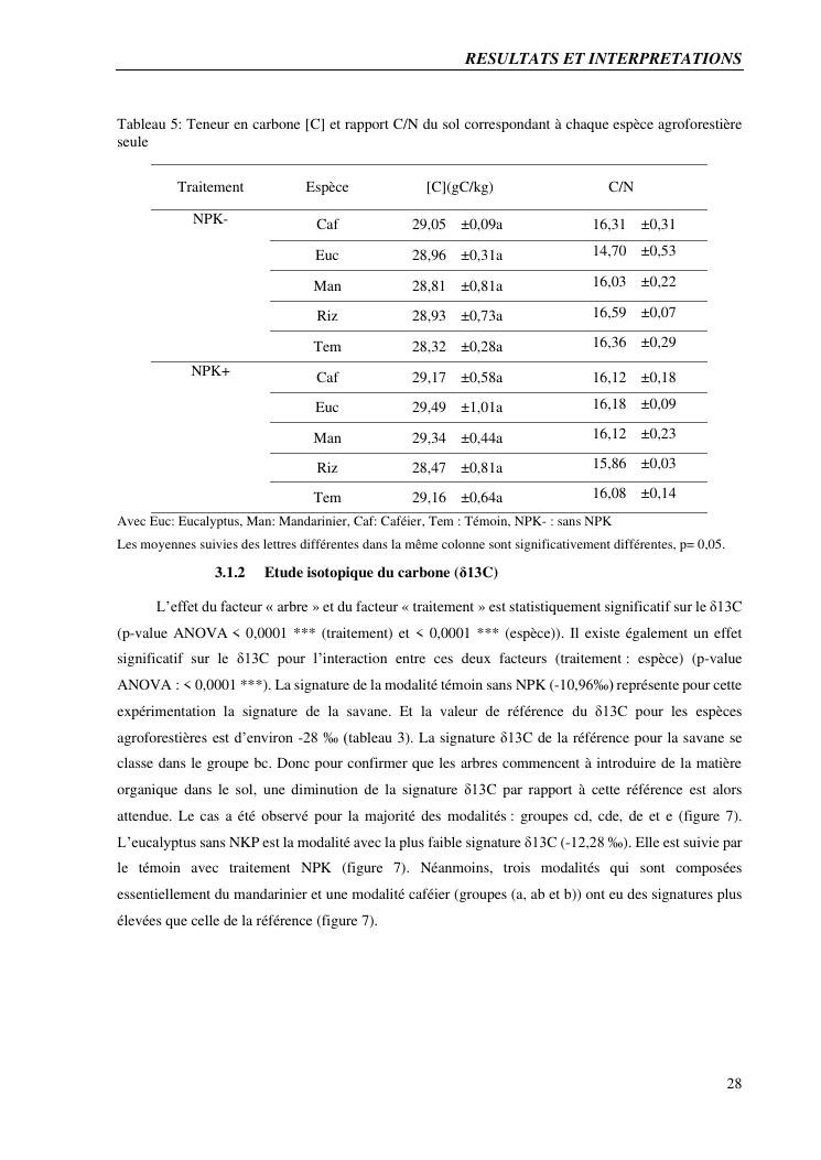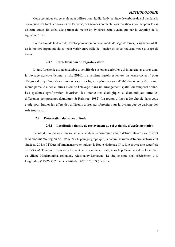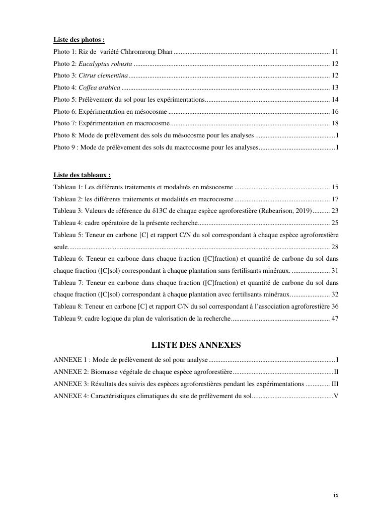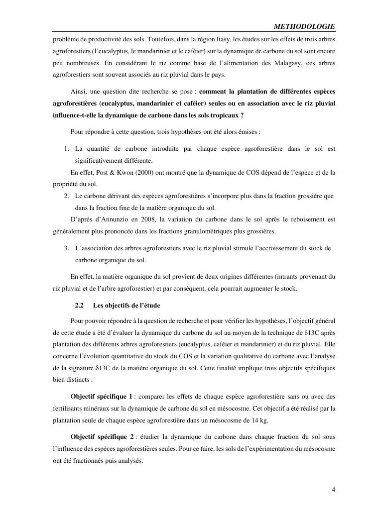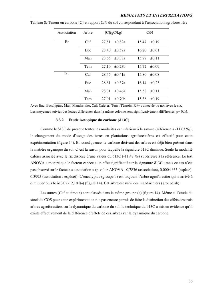 dynamique du carbone des sols tropicaux sous l'effet de differents arbres agroforestiers associes ou non avec le riz pluvial : cas de la region itasy