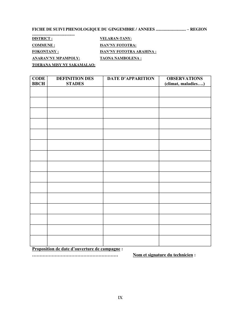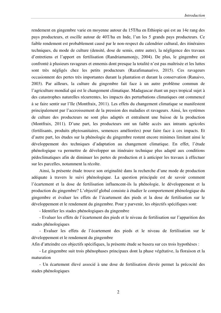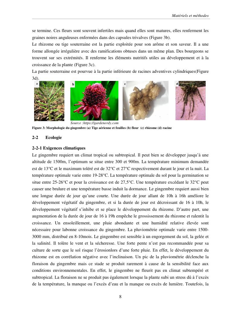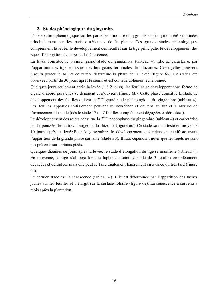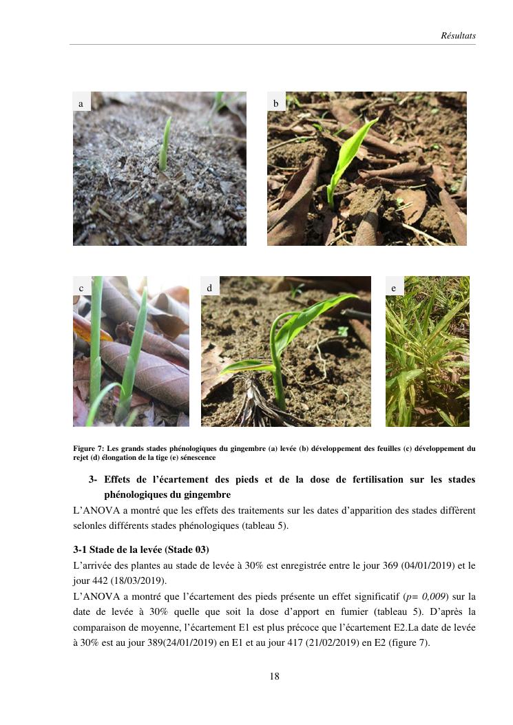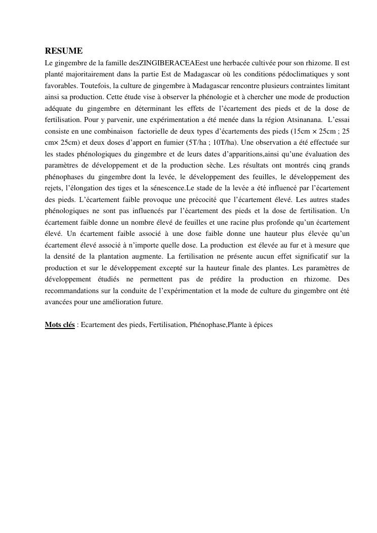 suivi phénologique et amélioration de la production du gingembre (zingiber officinale roscoe).cas de la région atsinanana