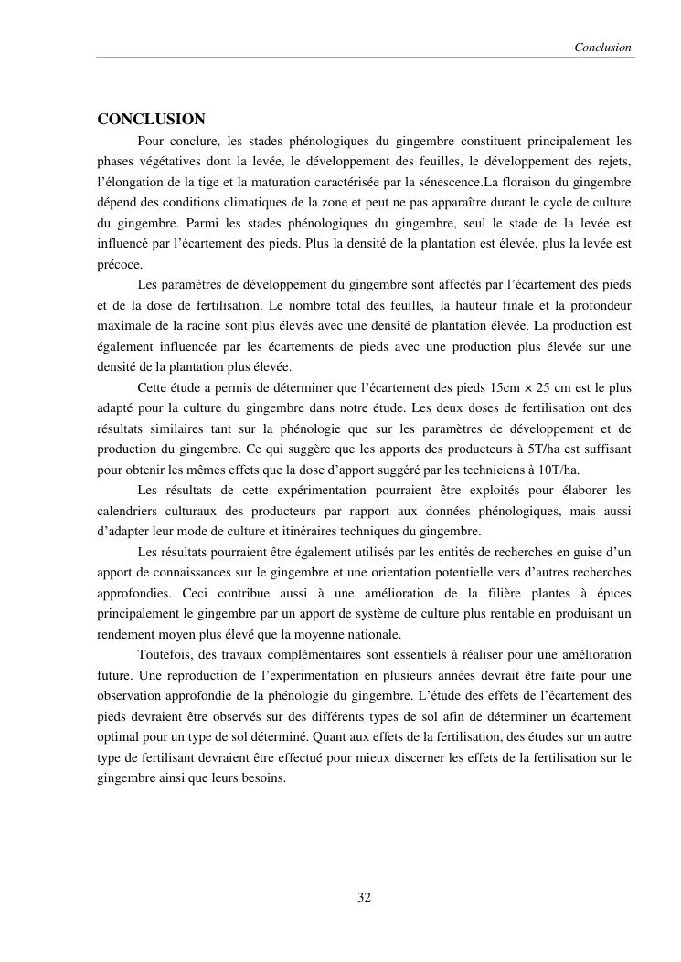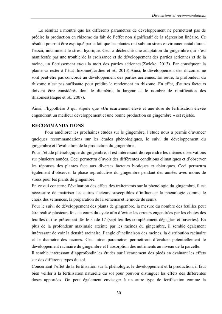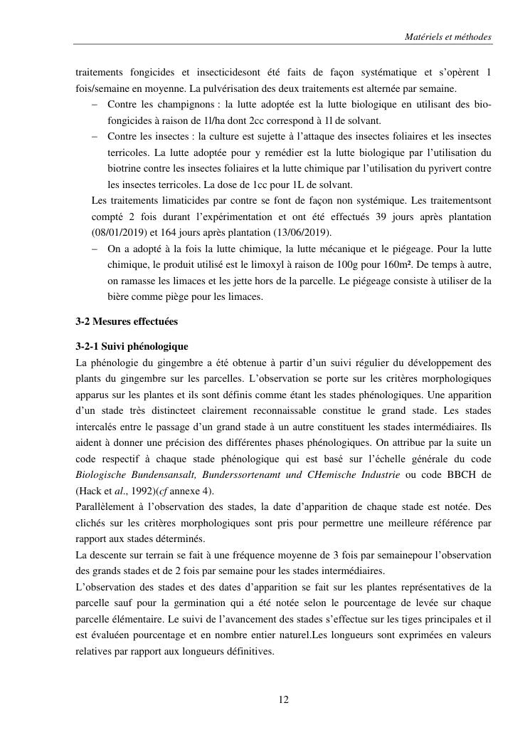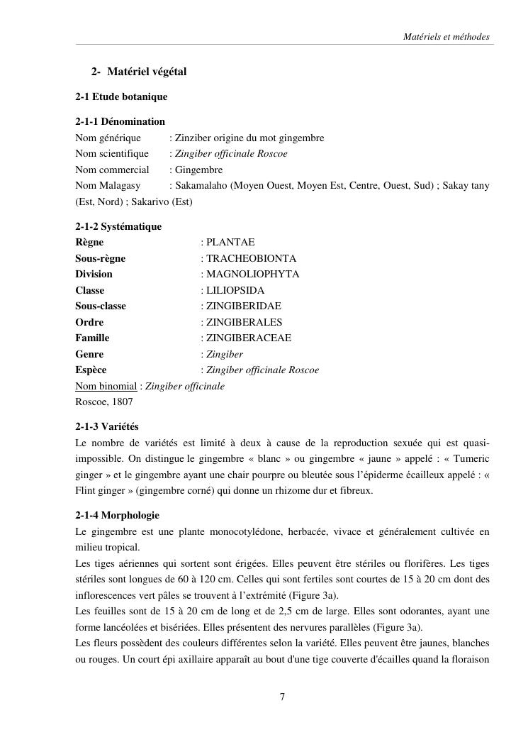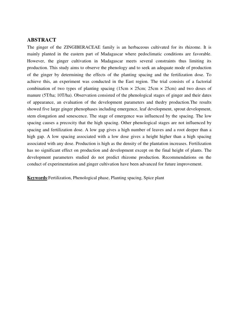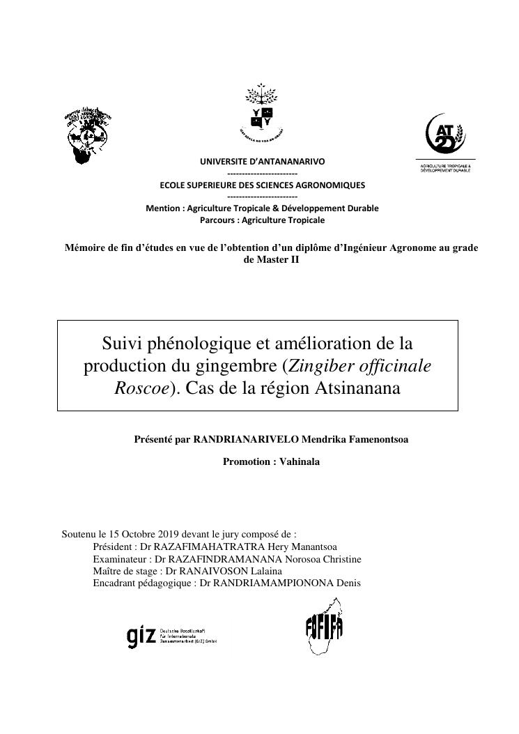 suivi phénologique et amélioration de la production du gingembre (zingiber officinale roscoe).cas de la région atsinanana