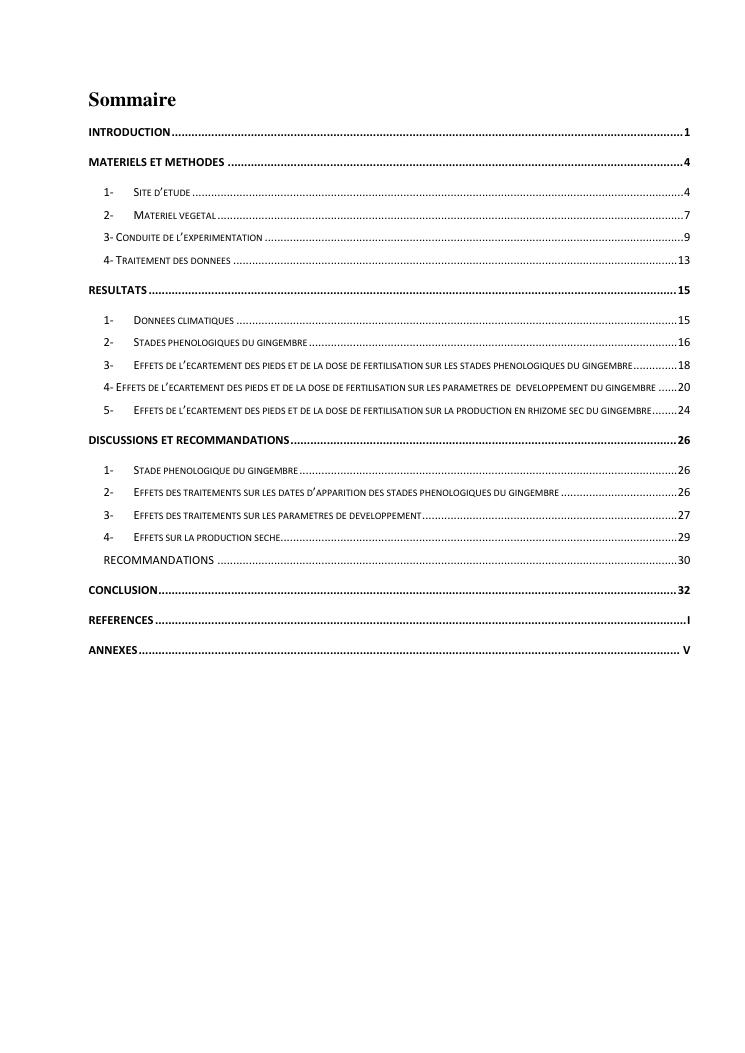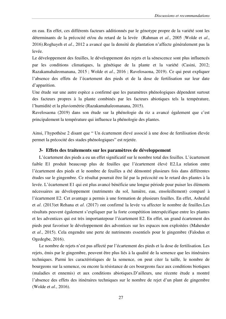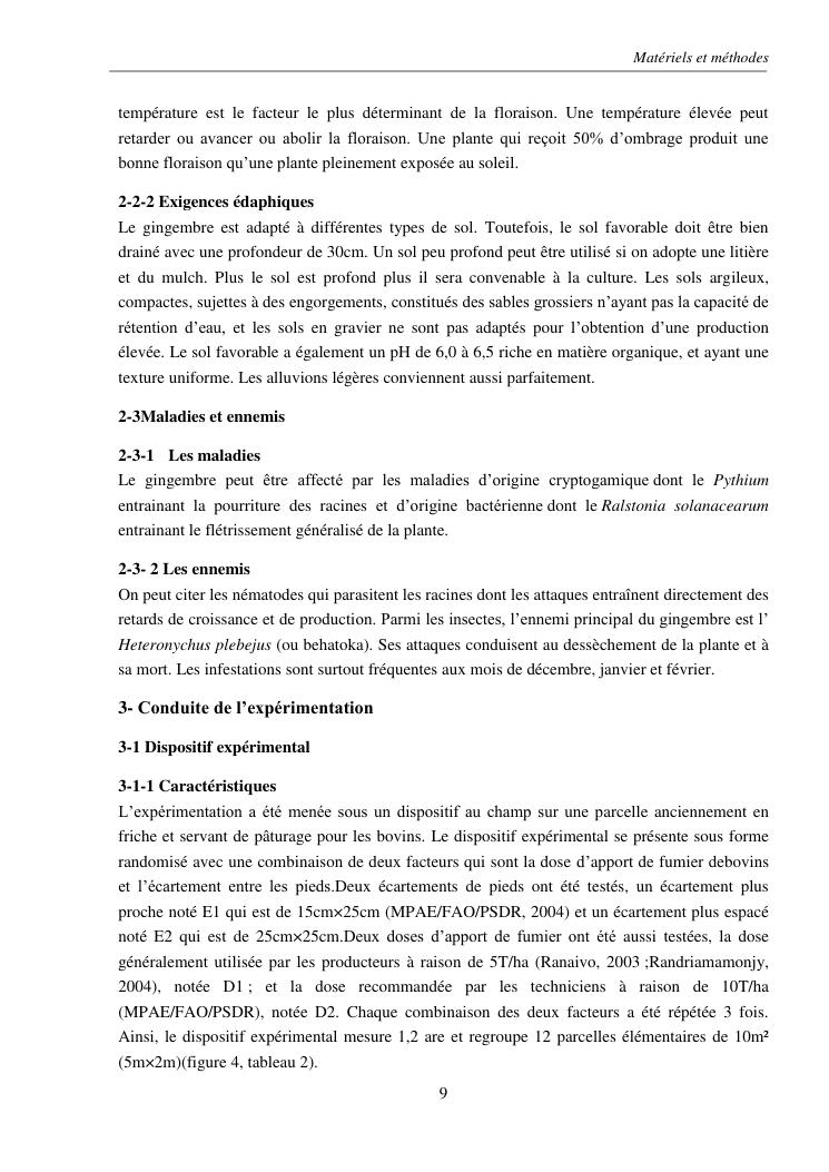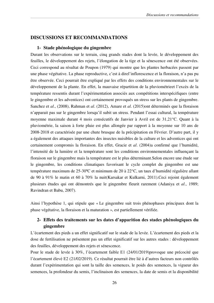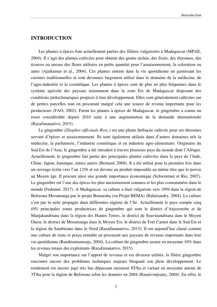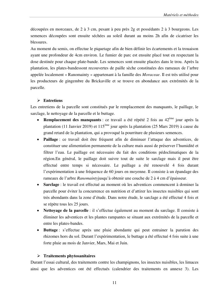 suivi phénologique et amélioration de la production du gingembre (zingiber officinale roscoe).cas de la région atsinanana