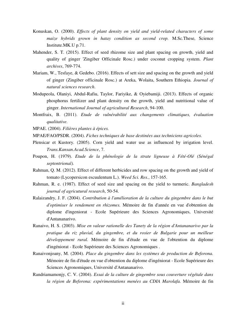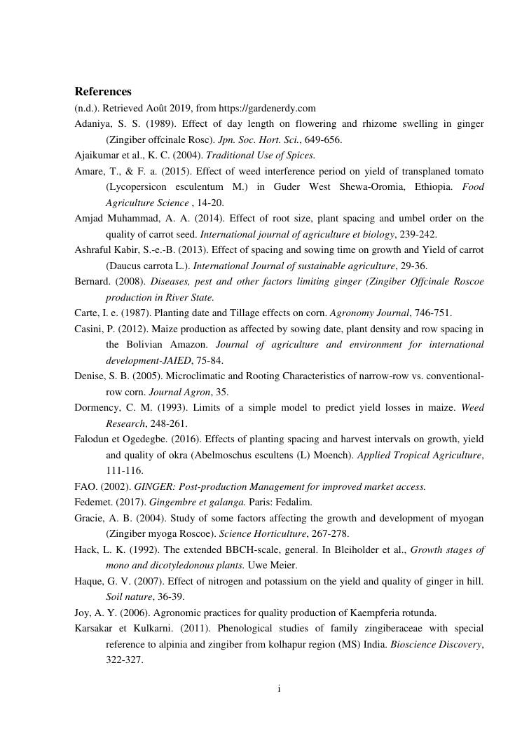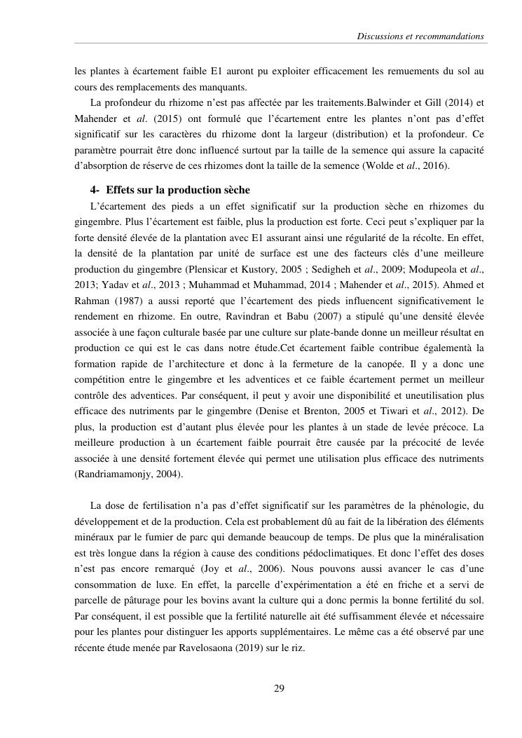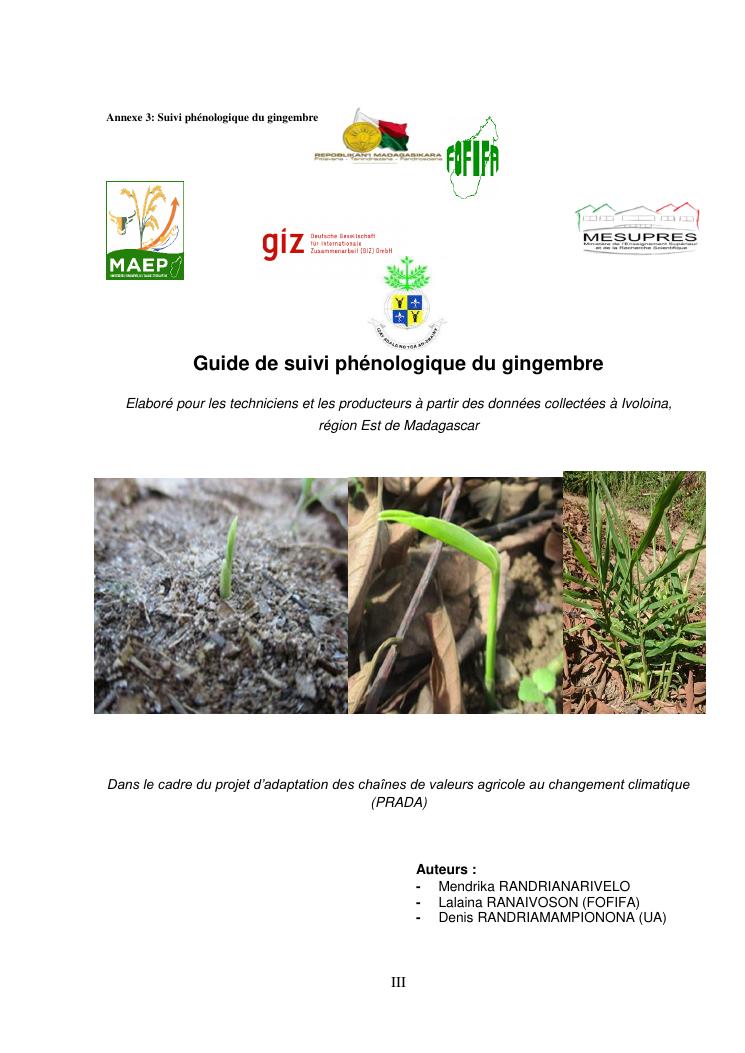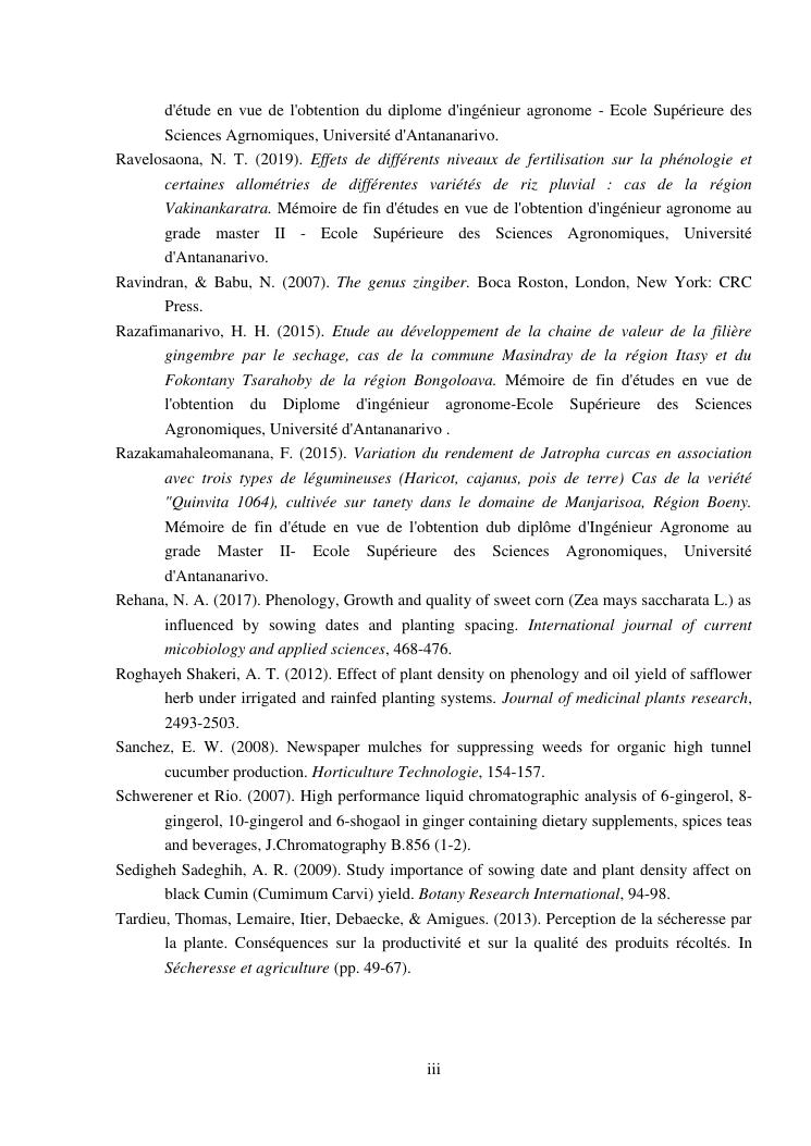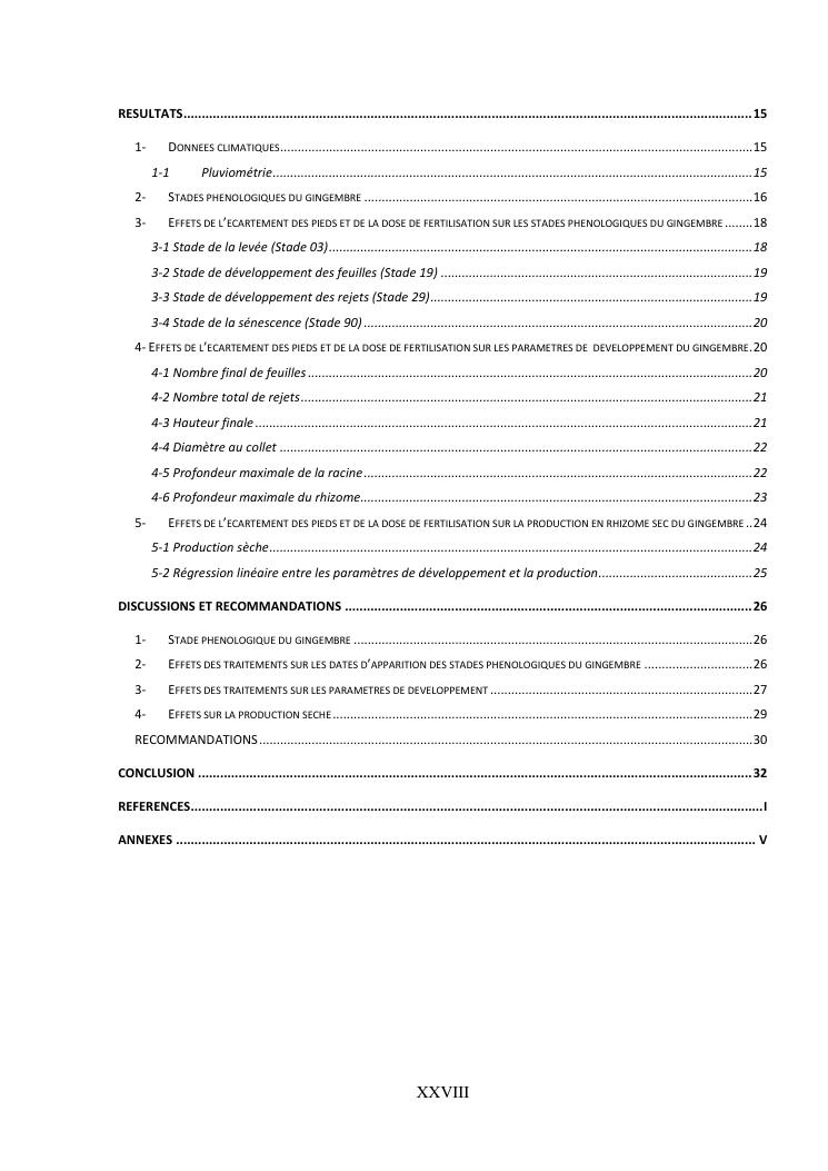 suivi phénologique et amélioration de la production du gingembre (zingiber officinale roscoe).cas de la région atsinanana