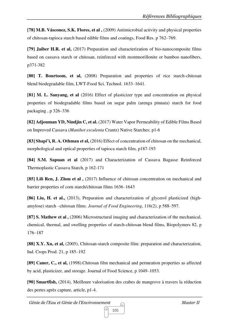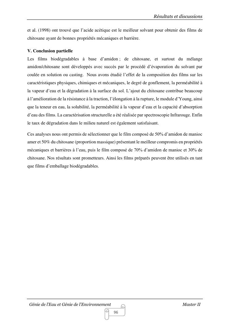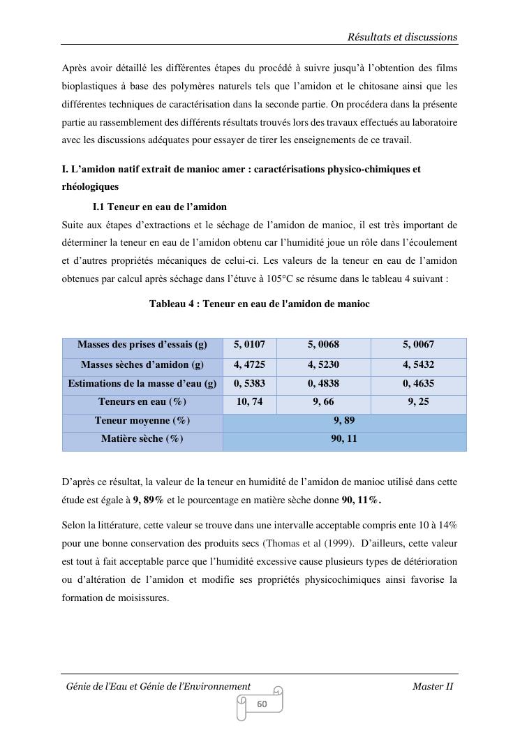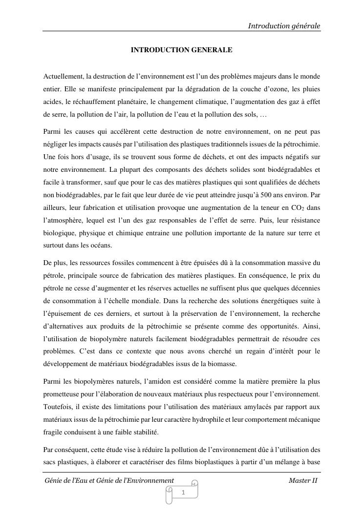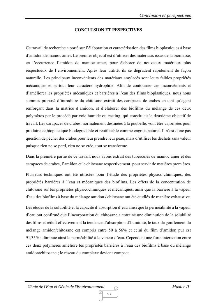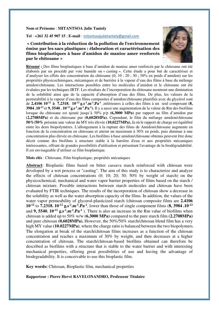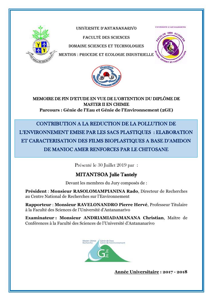 contribution a la reduction de la pollution de l'environnement emise par les sacs plastiques : elaboration et caracterisation des films bioplastiques a base d'amidon de manioc amer renforces par le chitosane