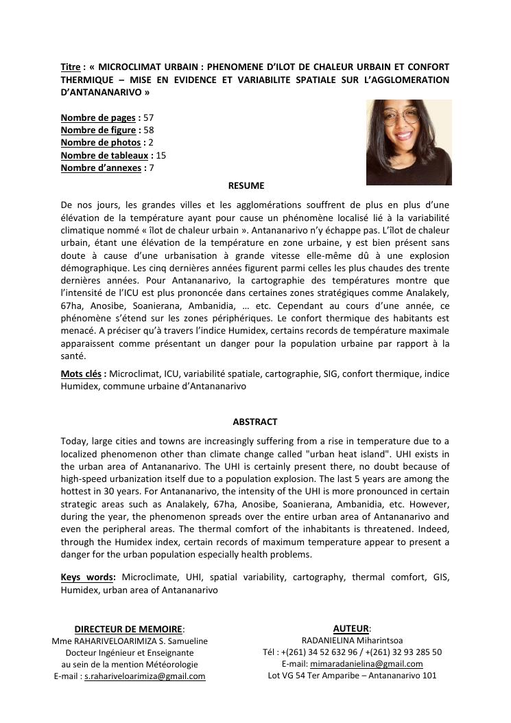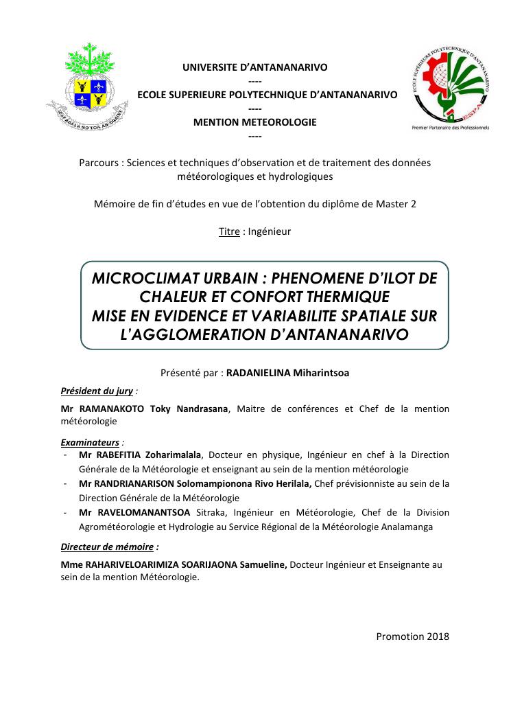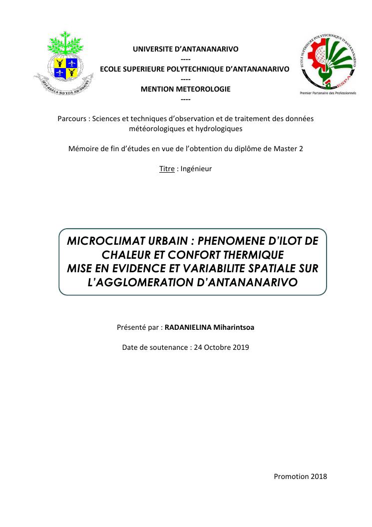 microclimat urbain : phenomene d'ilot de chaleur et confort thermique mise en evidence et variabilite spatiale sur l'agglomeration d'antananarivo