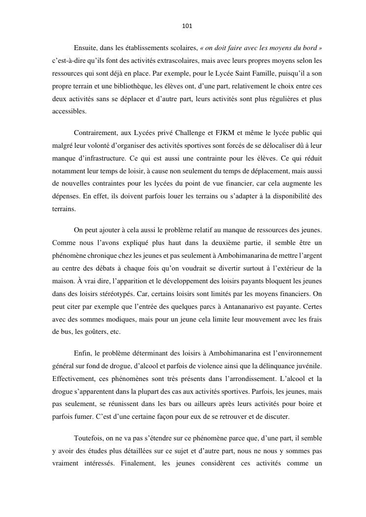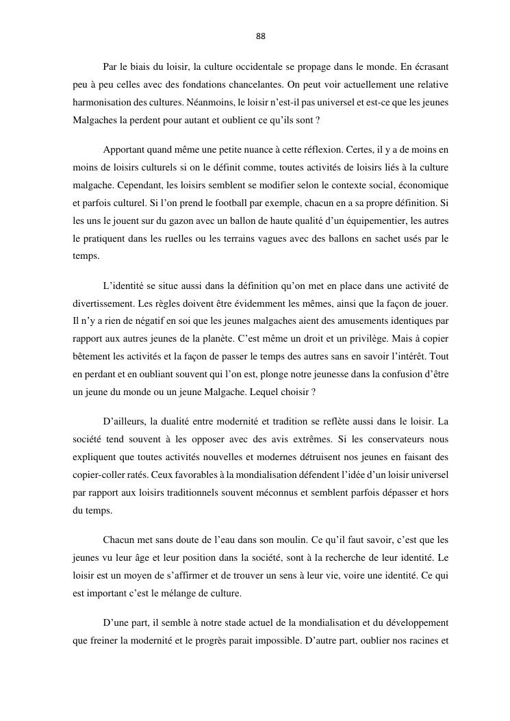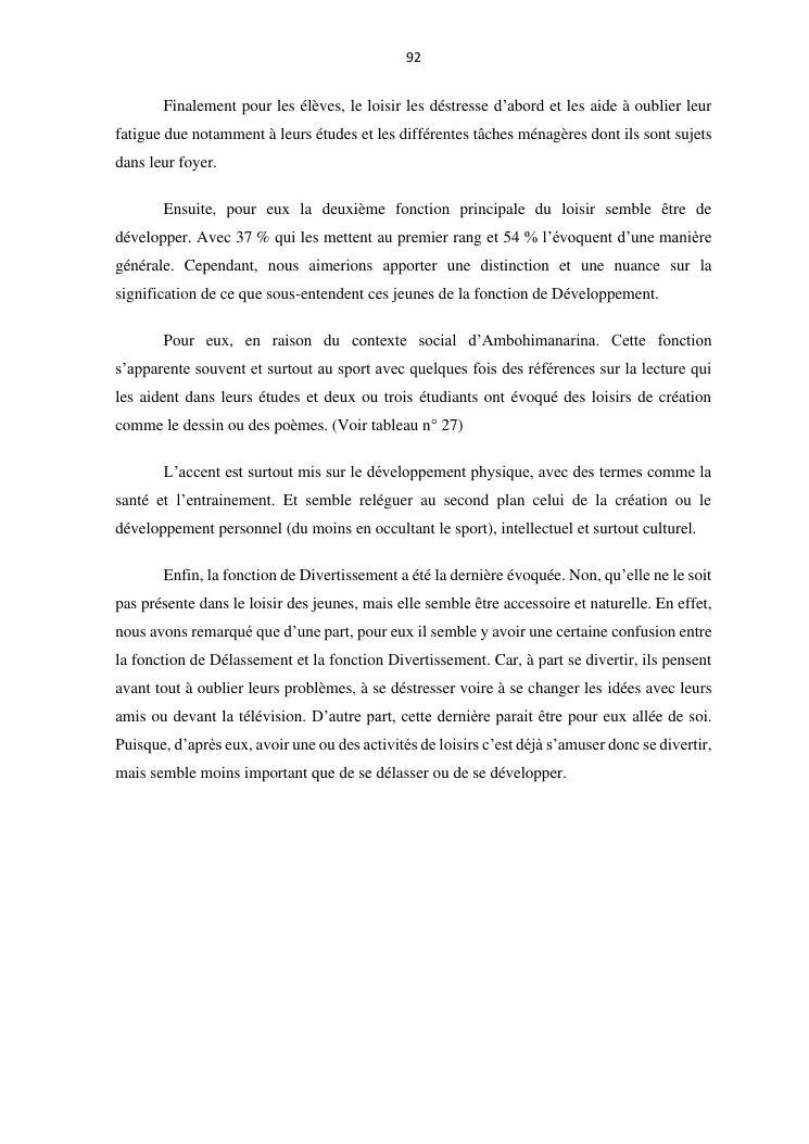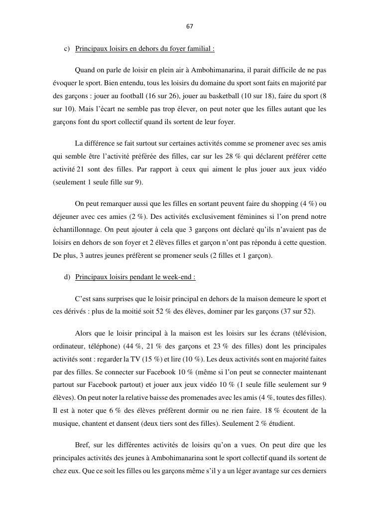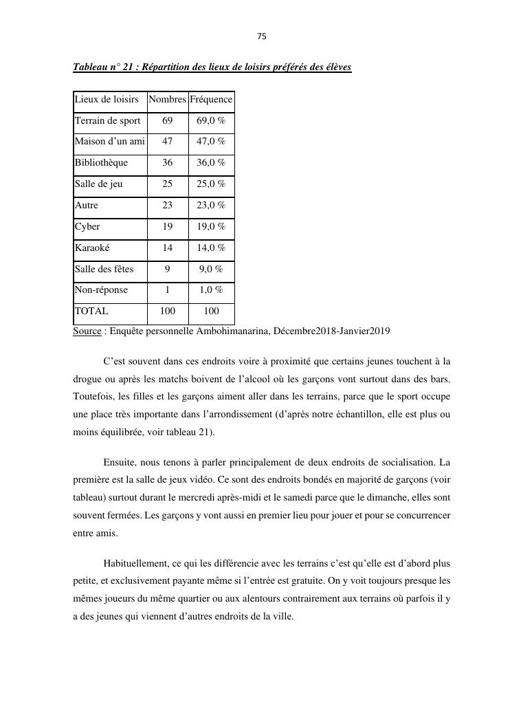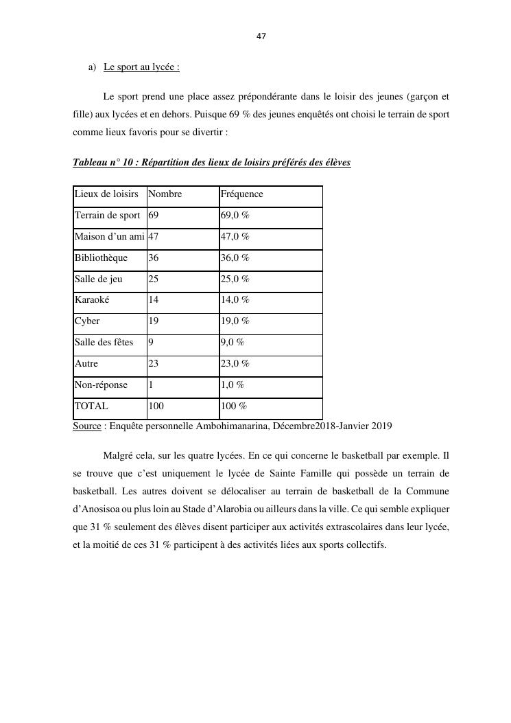 la place du loisir dans la société malgache actuelle : cas des lycéens d'ambohimanarina commune urbaine d'antananarivo région analamanga