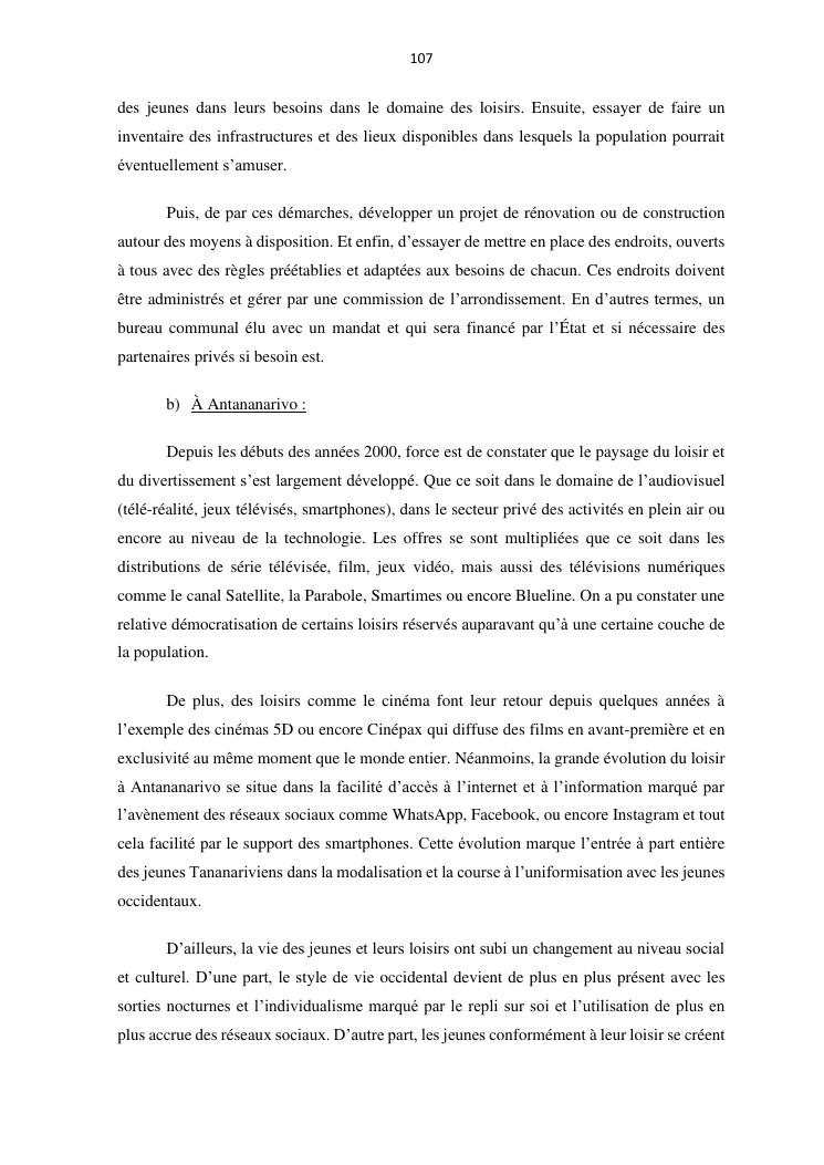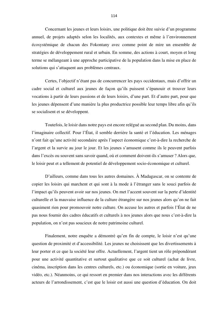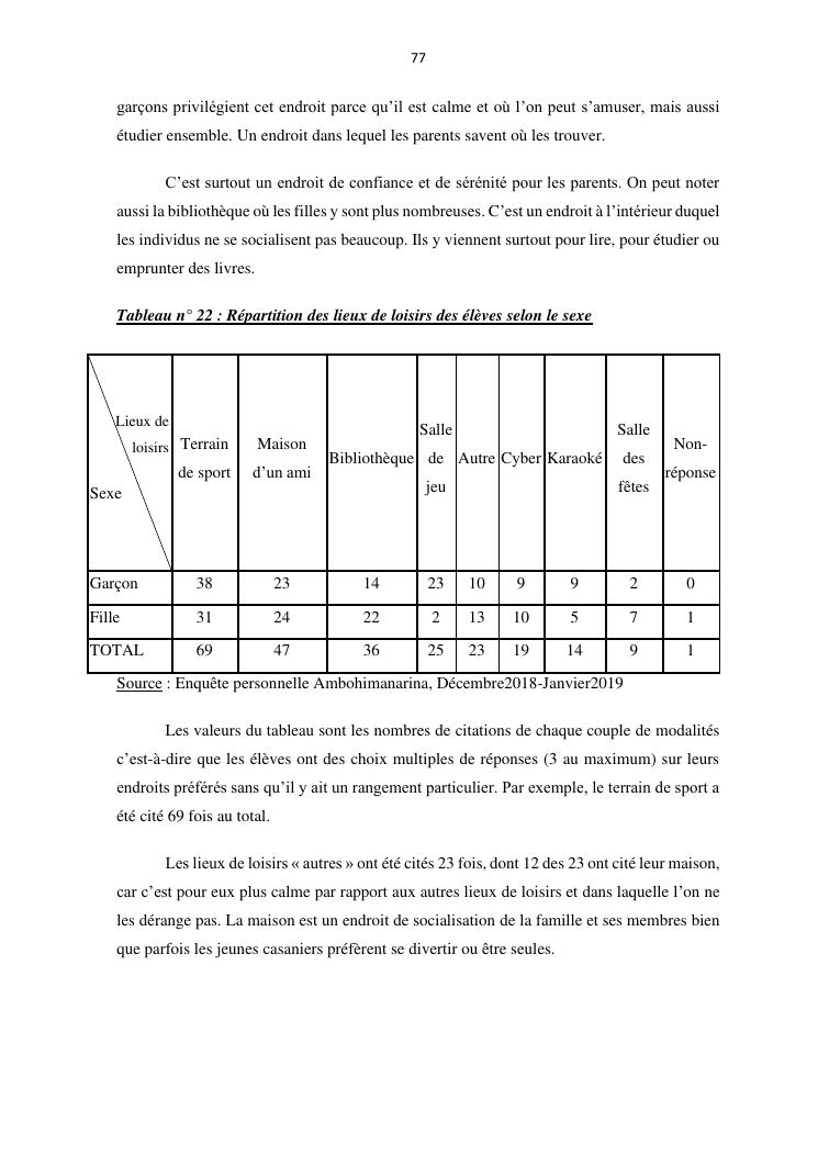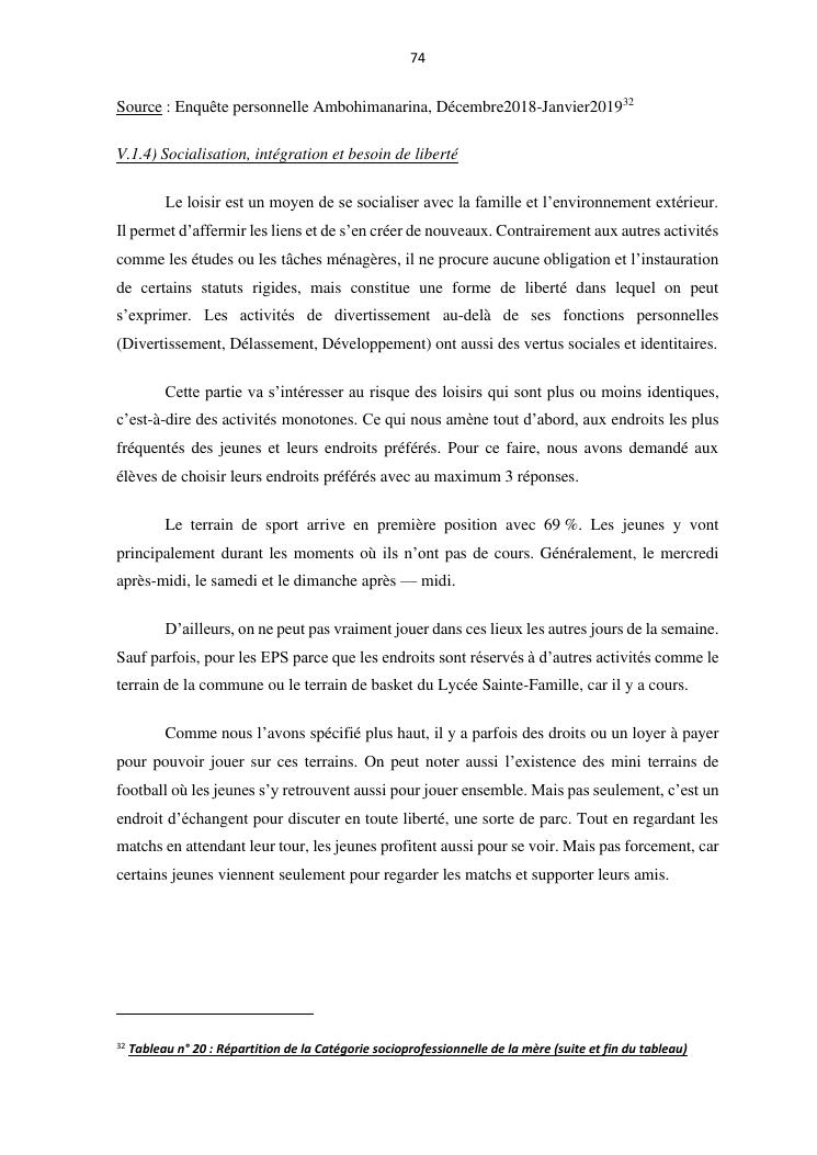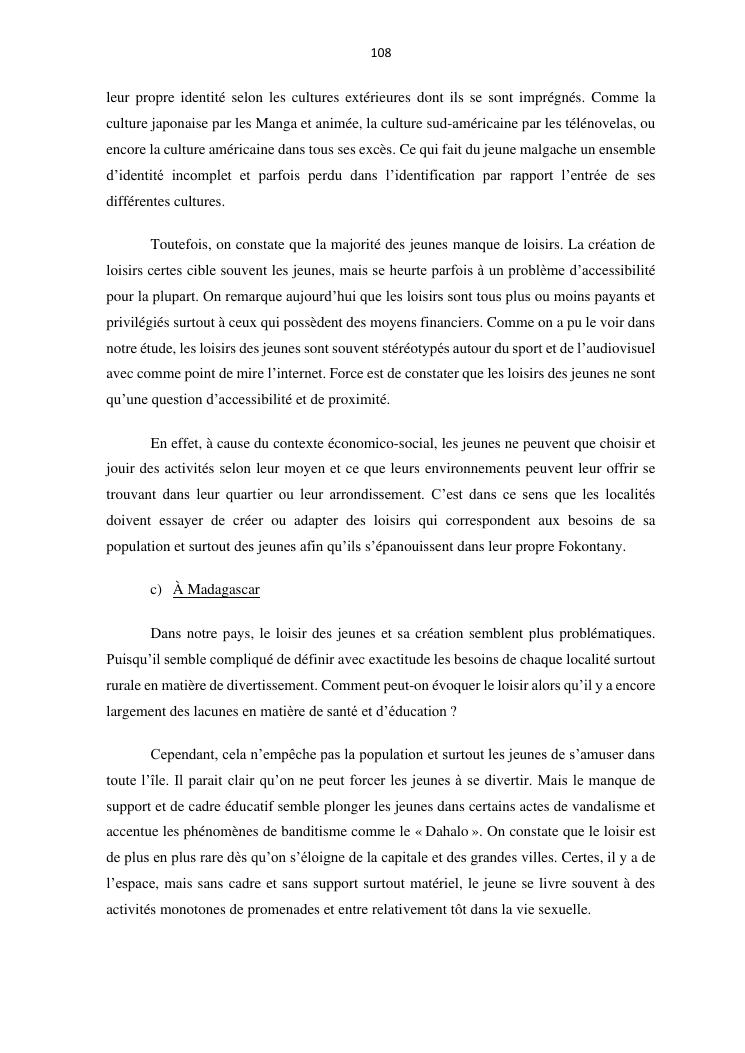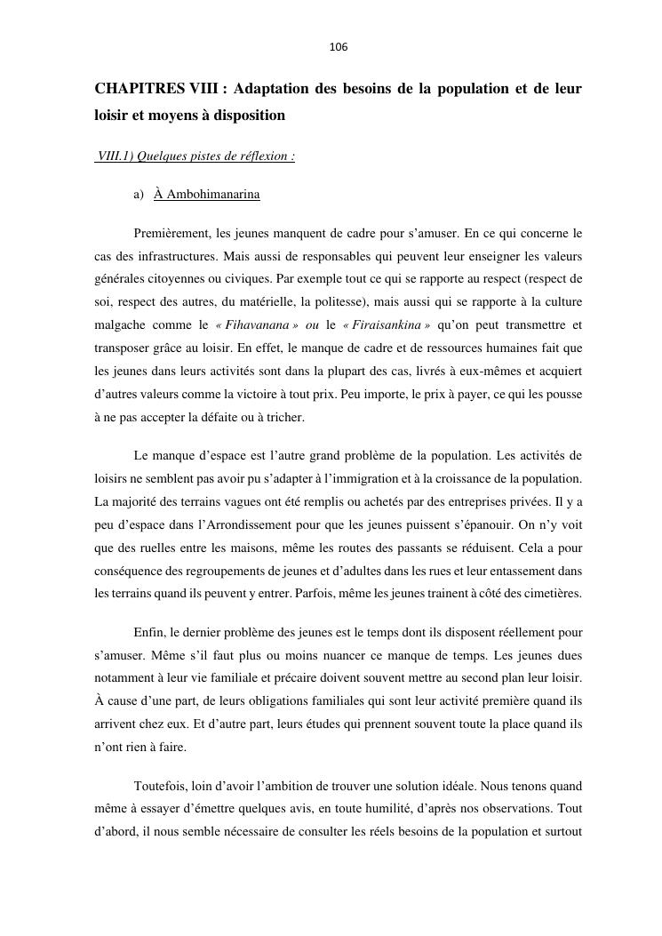 la place du loisir dans la société malgache actuelle : cas des lycéens d'ambohimanarina commune urbaine d'antananarivo région analamanga