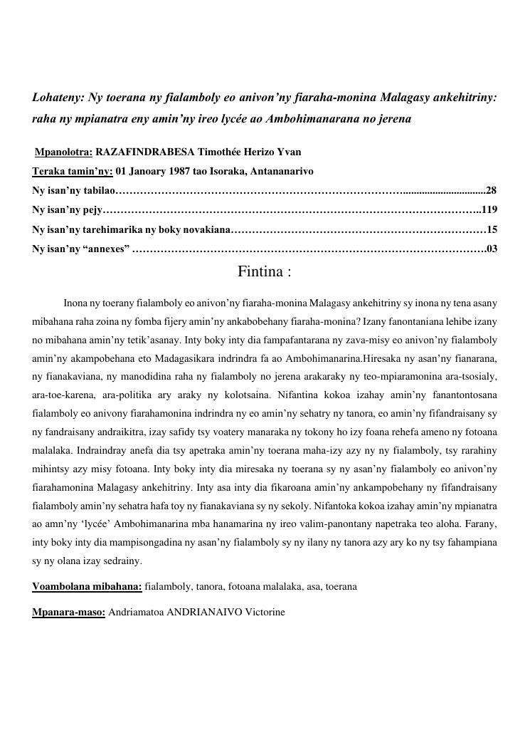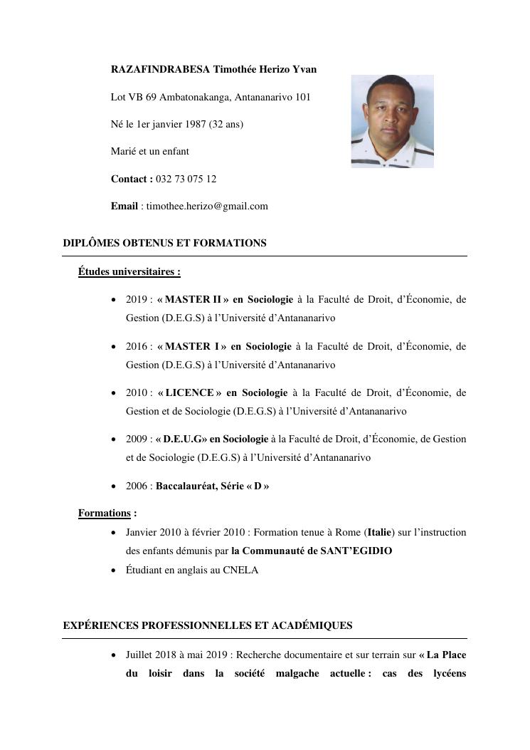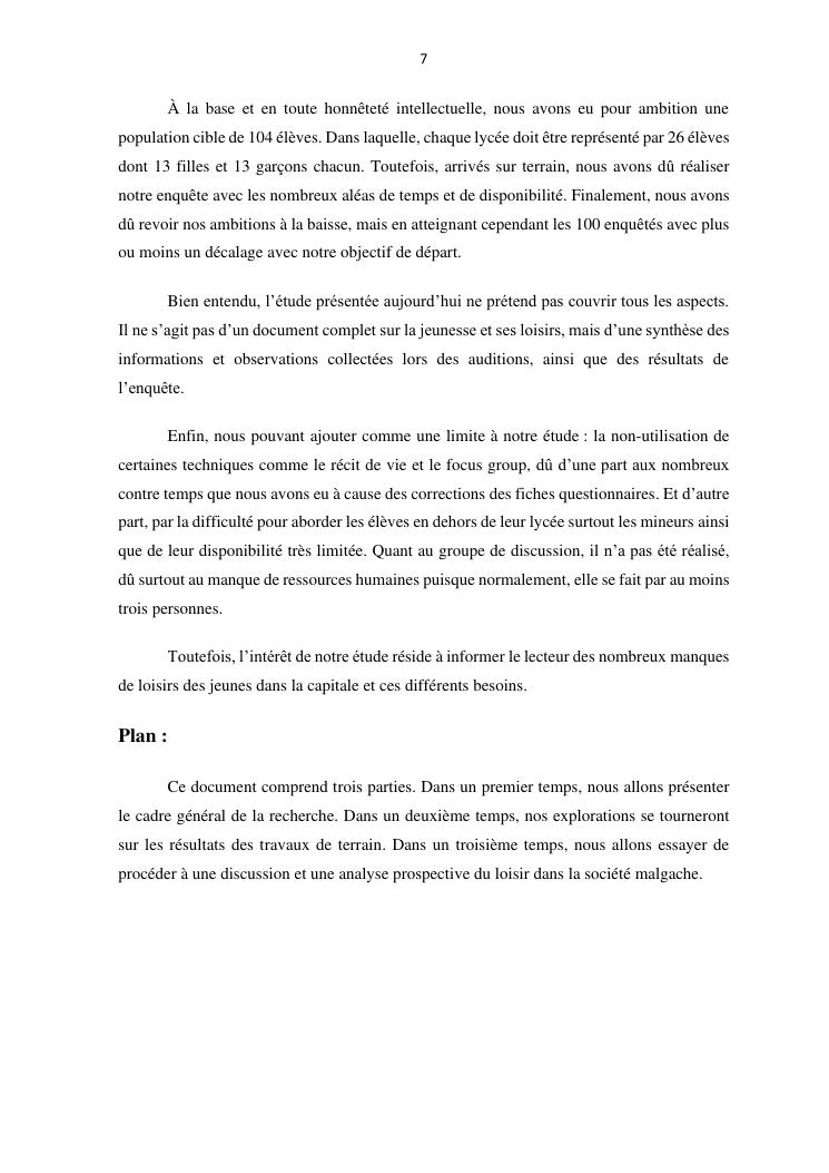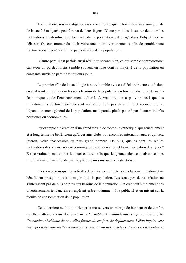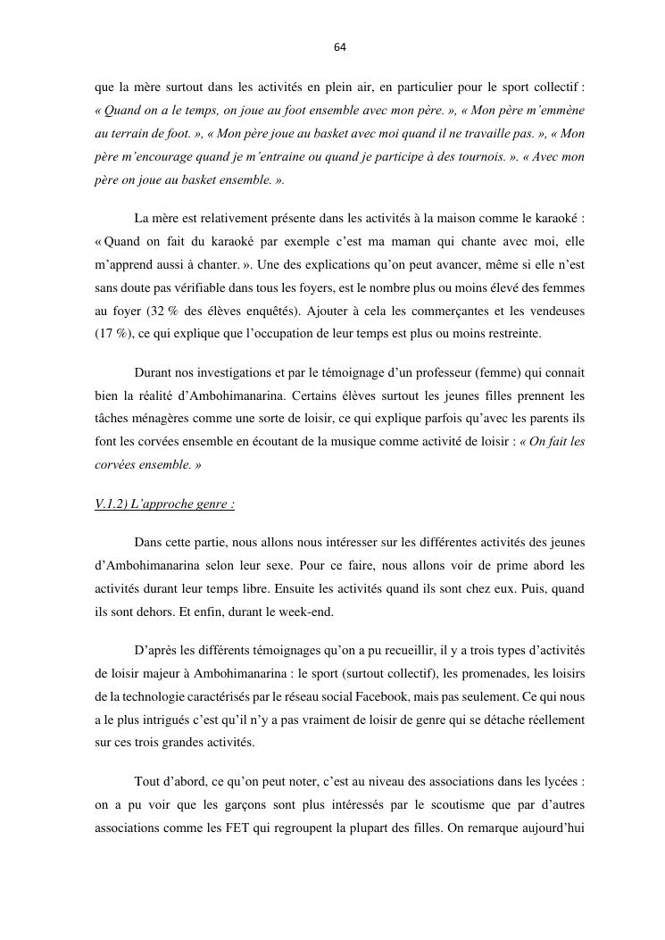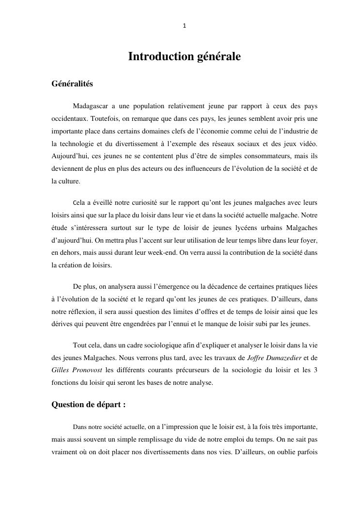 la place du loisir dans la société malgache actuelle : cas des lycéens d'ambohimanarina commune urbaine d'antananarivo région analamanga