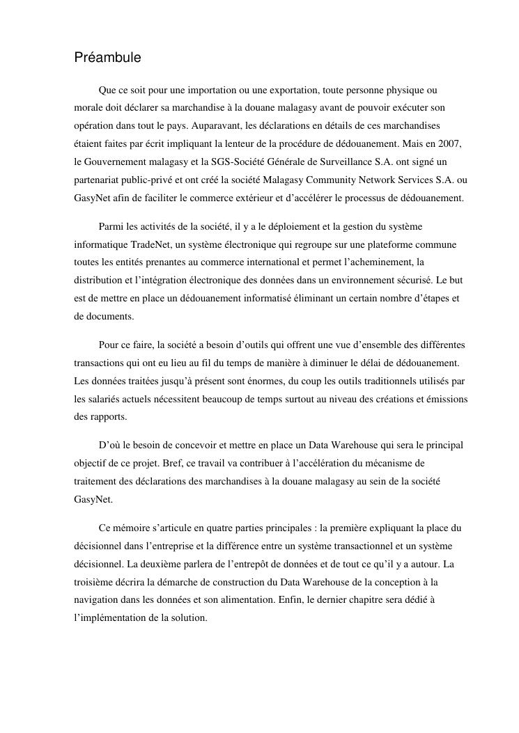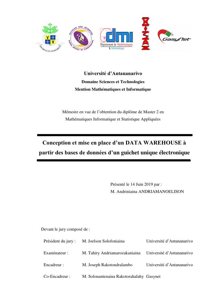 conception et mise en place d'un data warehouse à partir des bases de données d'un guichet unique électronique