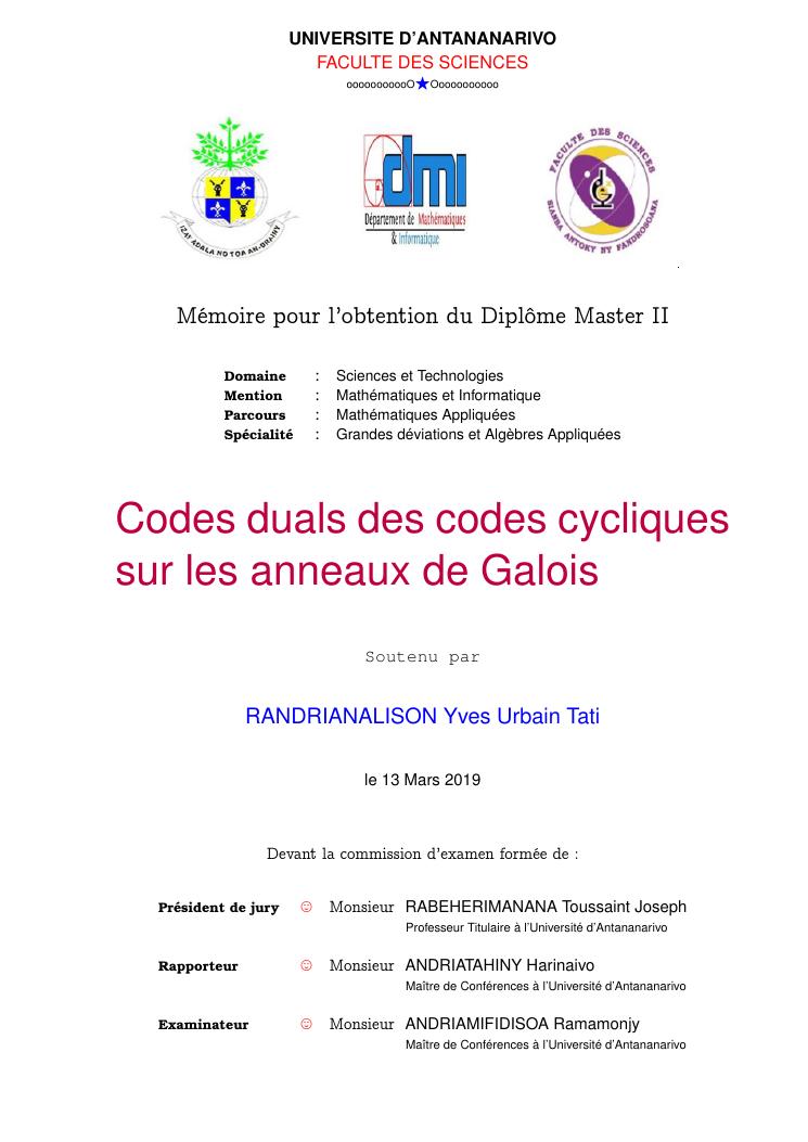 codes duals des codes cycliques sur les anneaux de galois