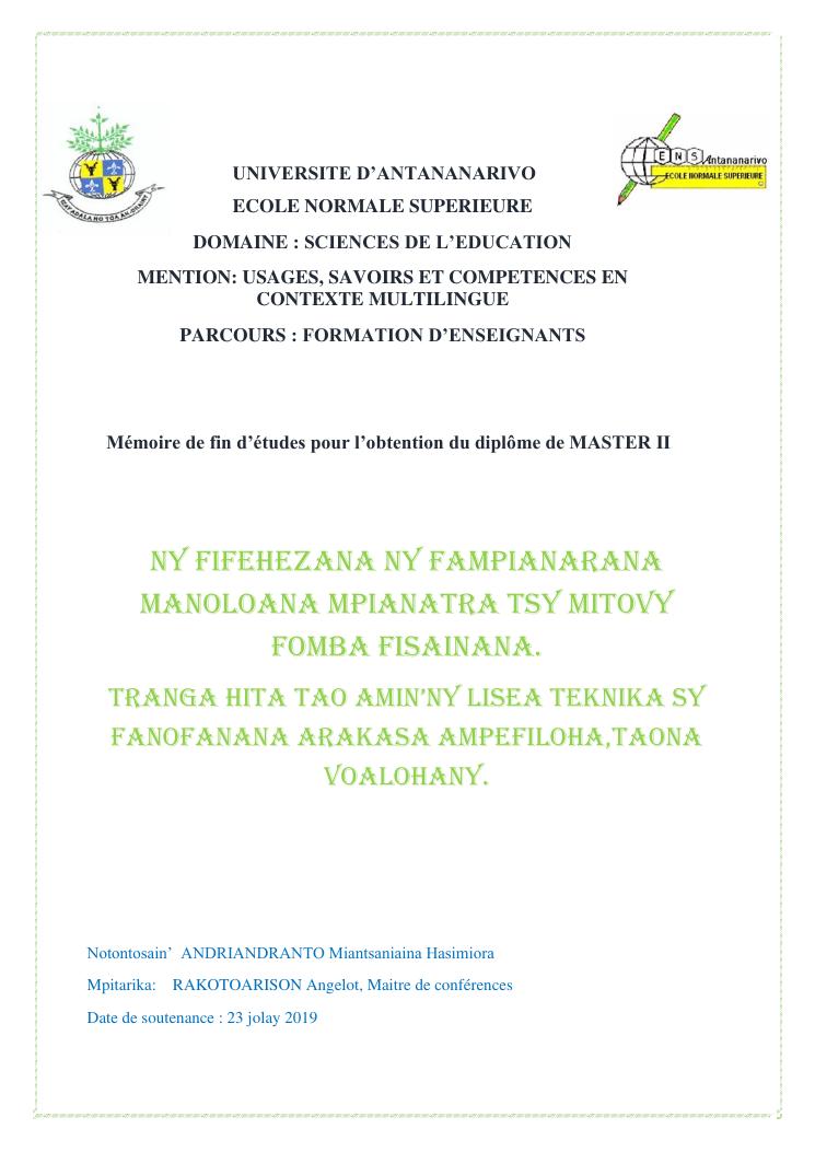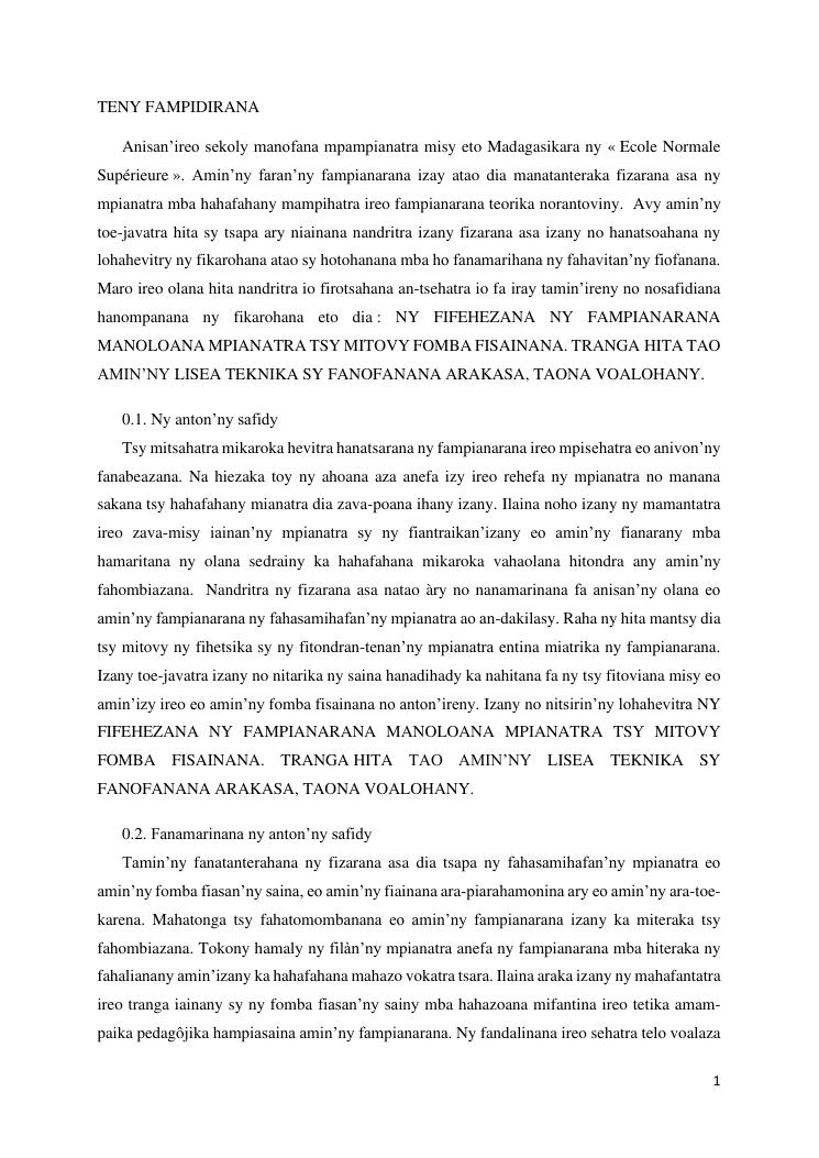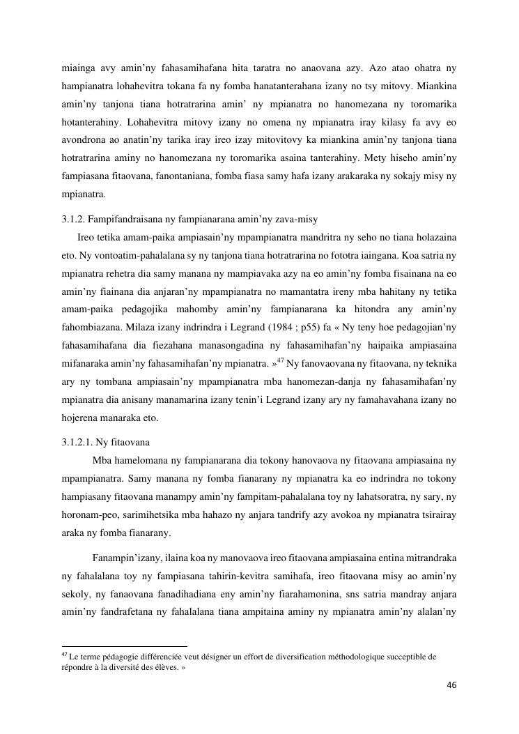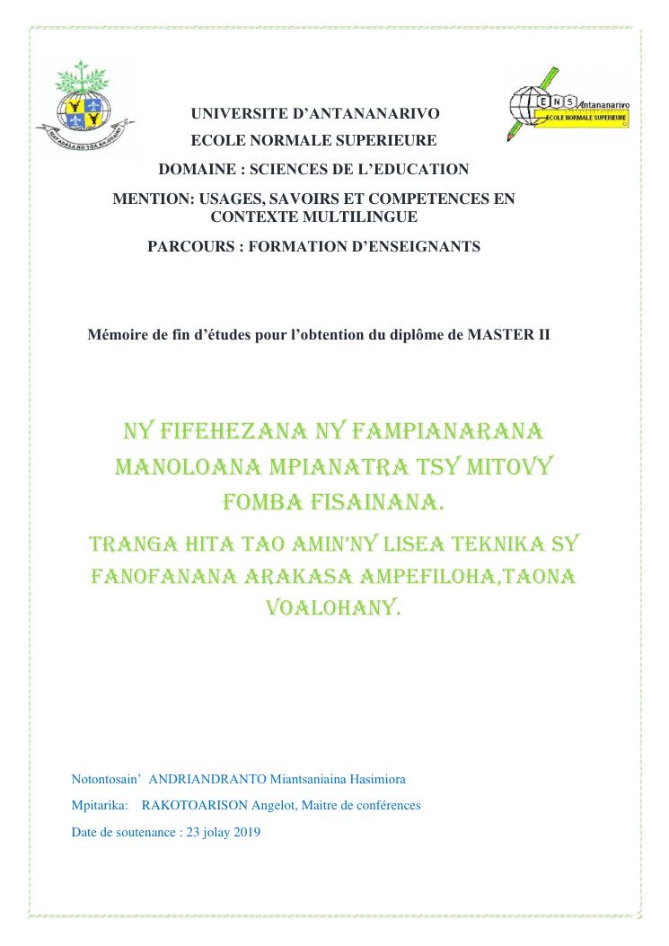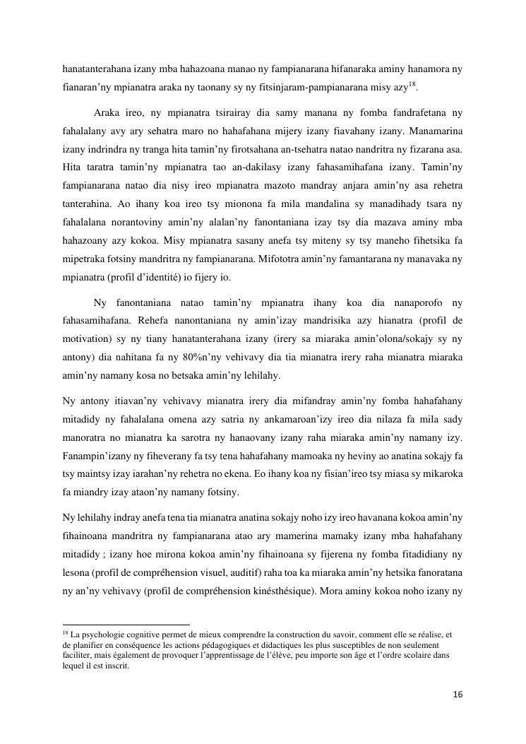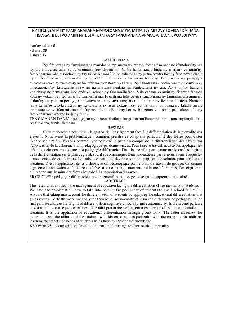 ny fifehezana ny fampianarana manoloana mpianatra tsy mitovy fomba fisainana. tranga hita tao amin'ny lisea teknika sy fanofanana arakasa ampefiloha,taona voalohany.