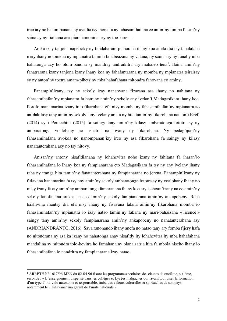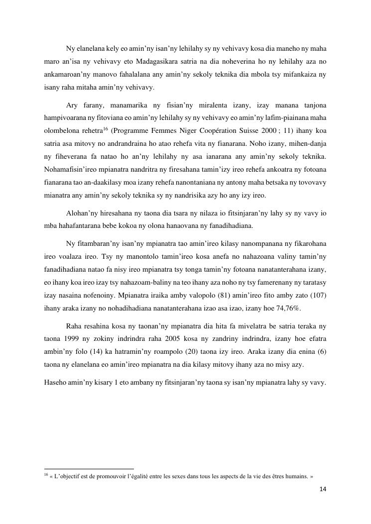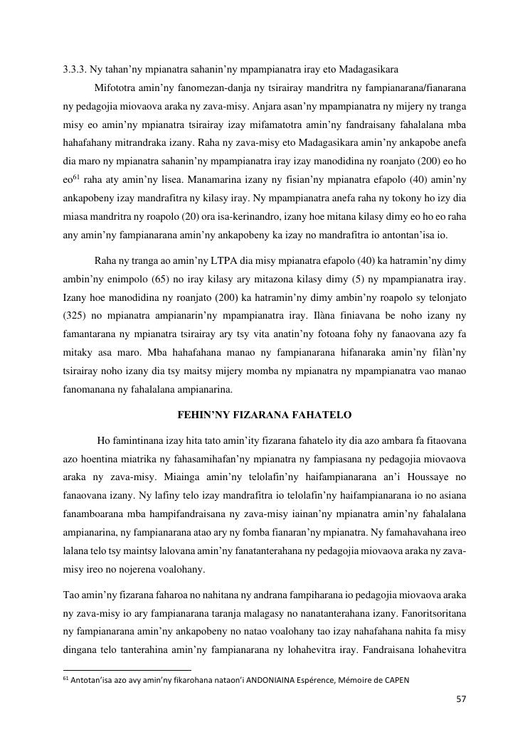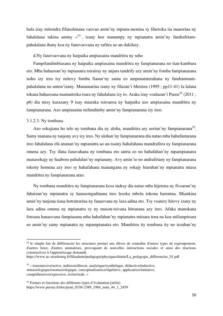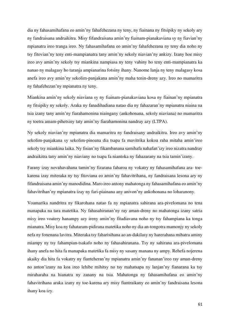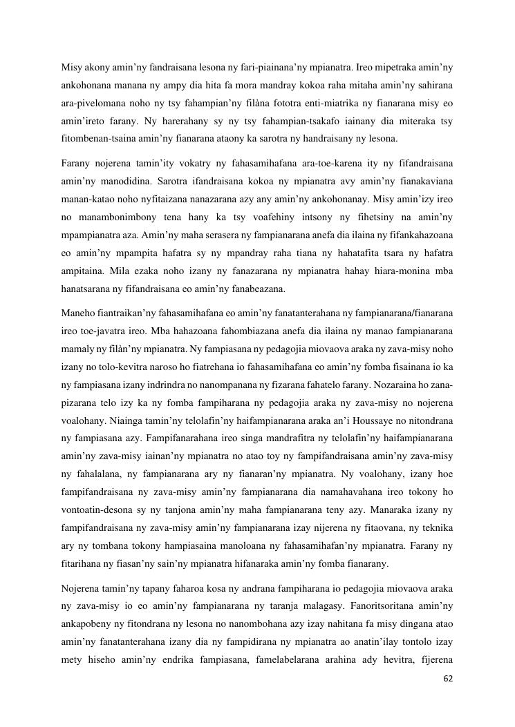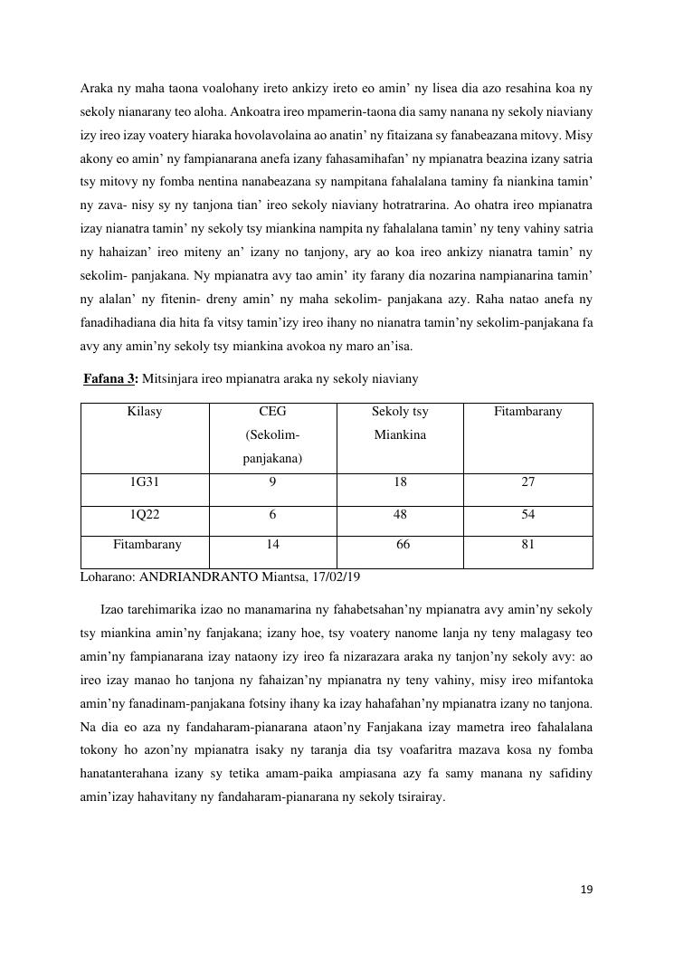 ny fifehezana ny fampianarana manoloana mpianatra tsy mitovy fomba fisainana. tranga hita tao amin'ny lisea teknika sy fanofanana arakasa ampefiloha,taona voalohany.