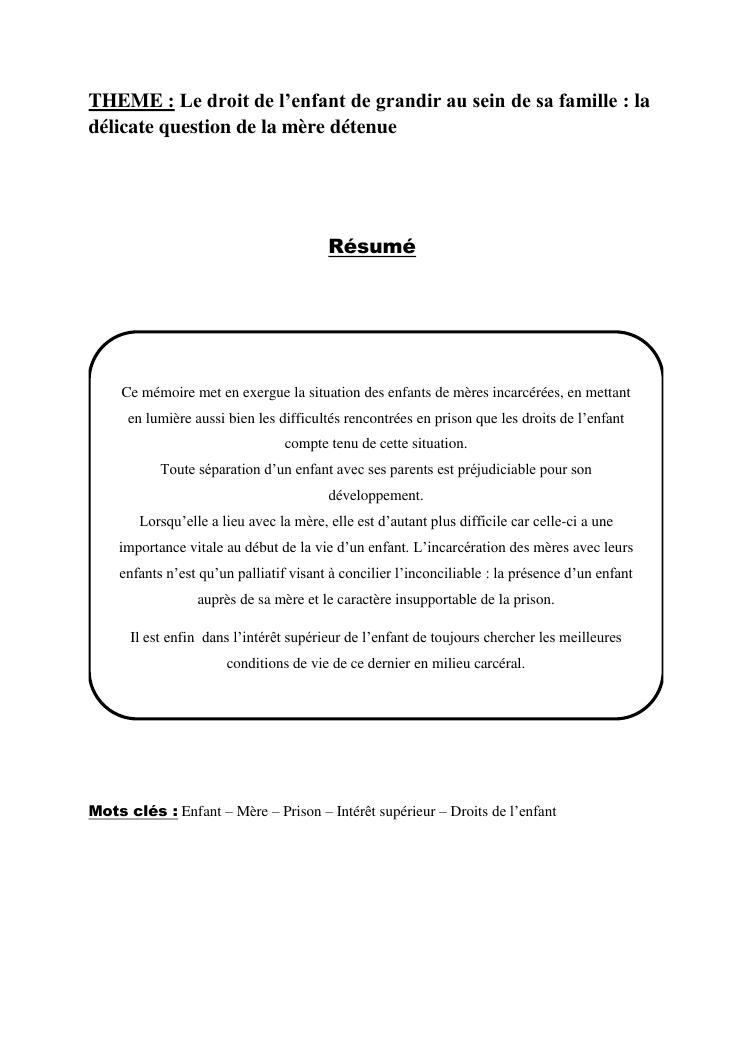 le droit de l'enfant de grandir au sein de sa famille : la délicate question de la mère détenue
