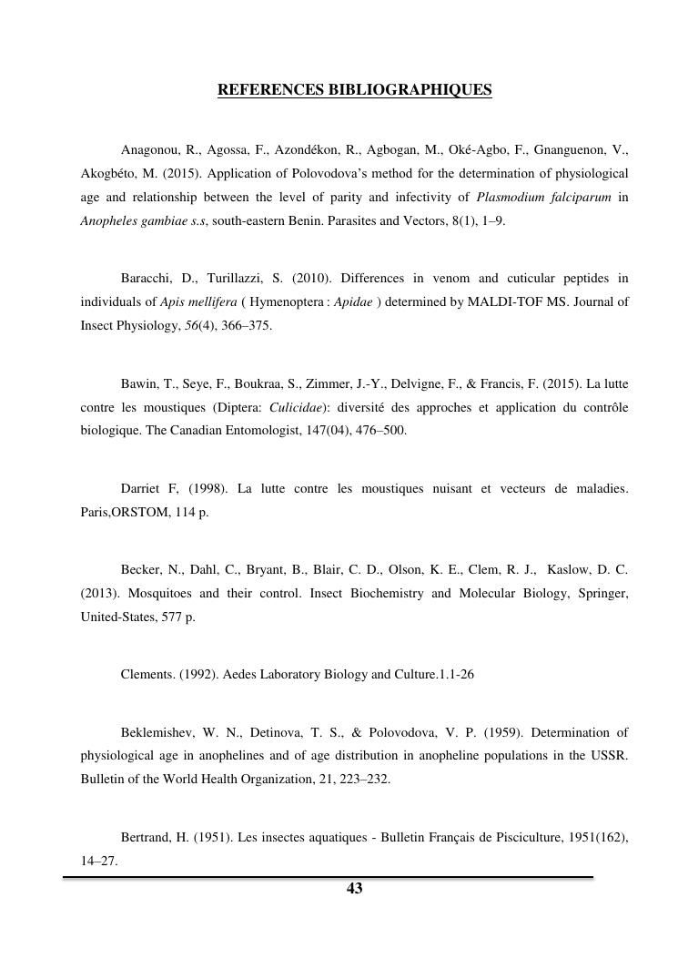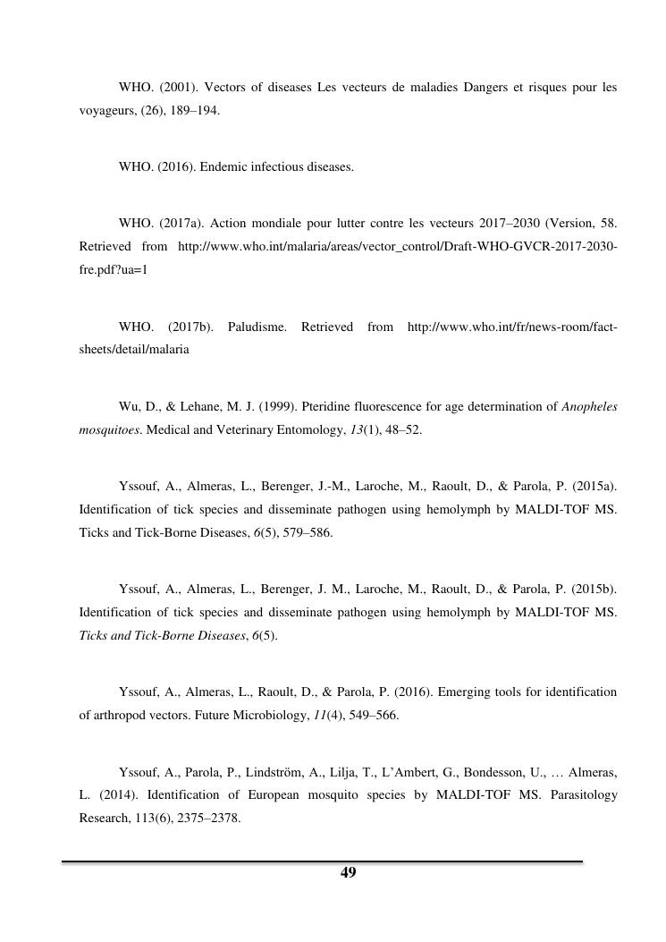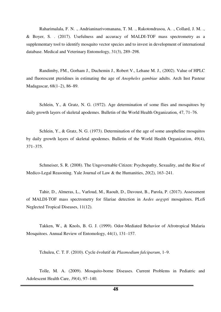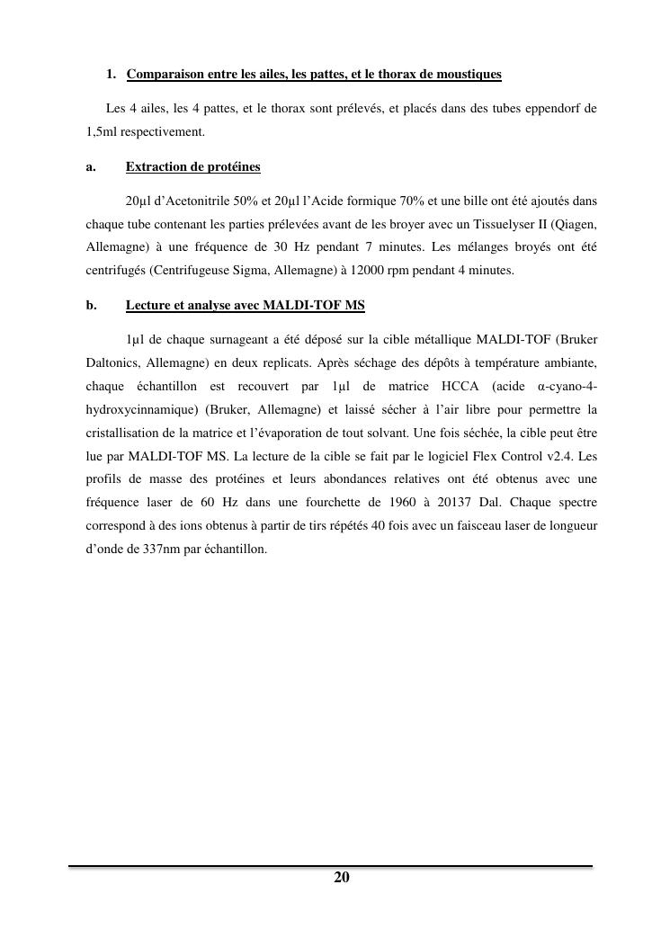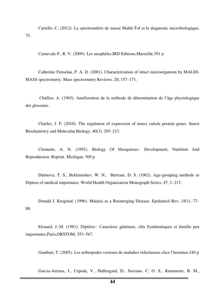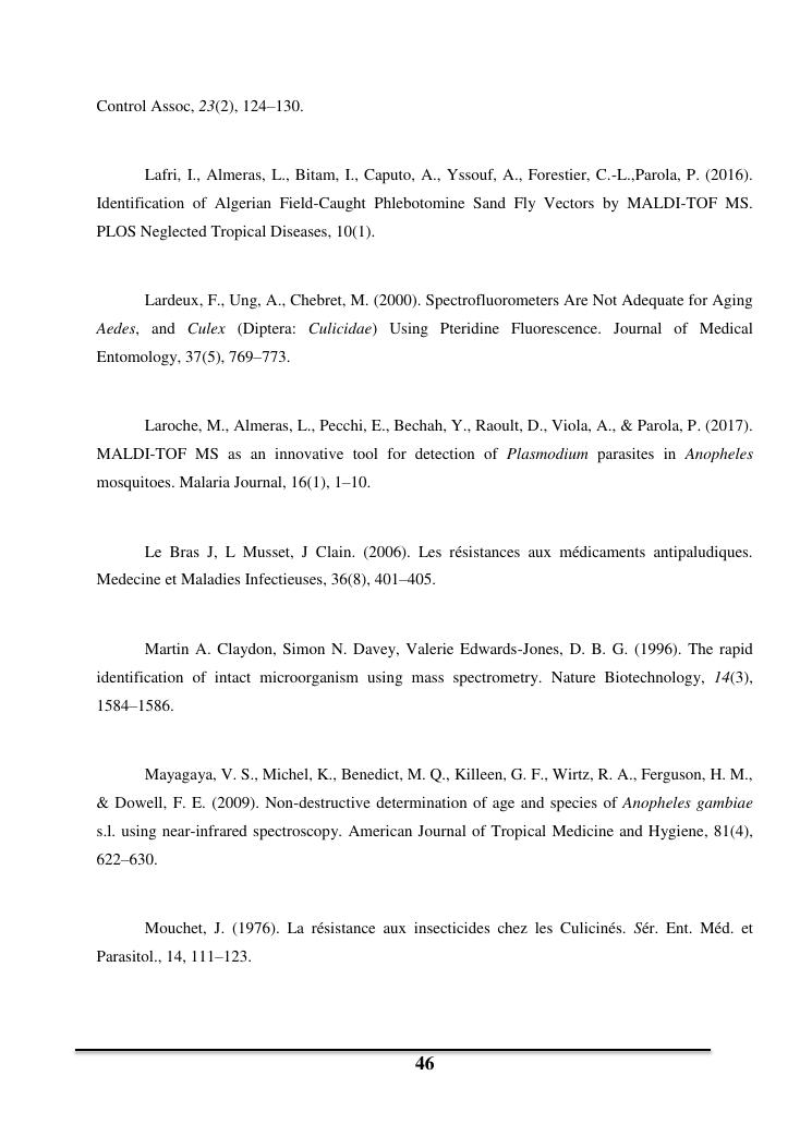 utilisation de la spectrometrie de masse maldi-tof pour la determination de l'age des moustiques vecteurs de maladies