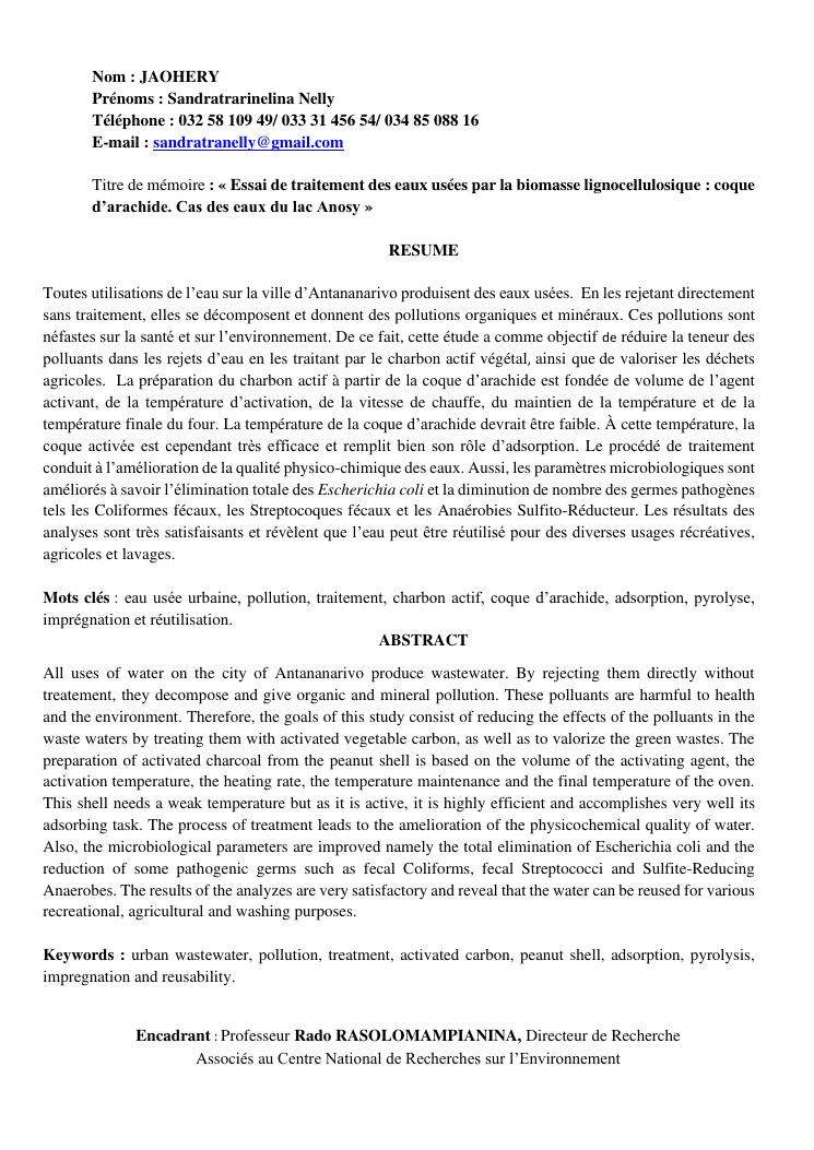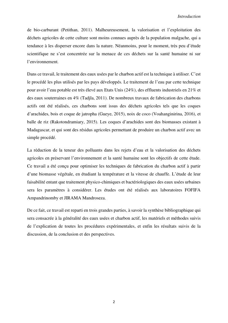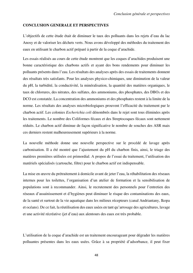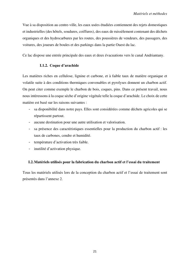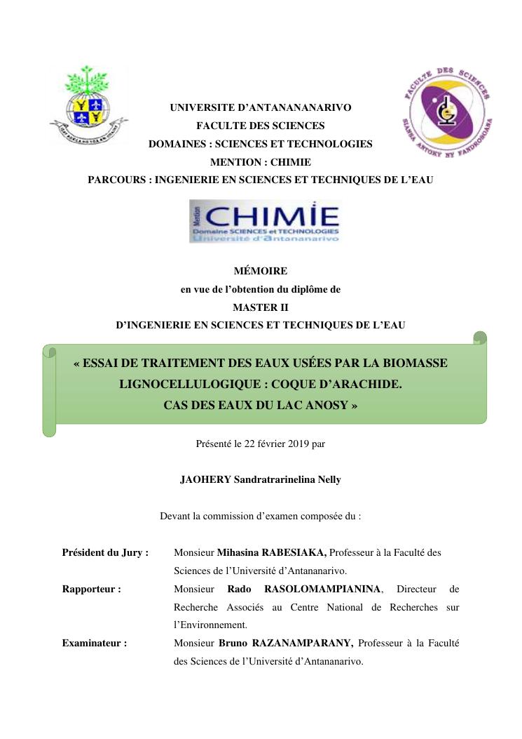 « essai de traitement des eaux usées par la biomasse lignocellulogique : coque d'arachide. cas des eaux du lac anosy »