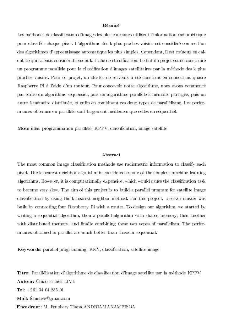parallélisation d'algorithme de classification d'image satellite par la méthode kppv