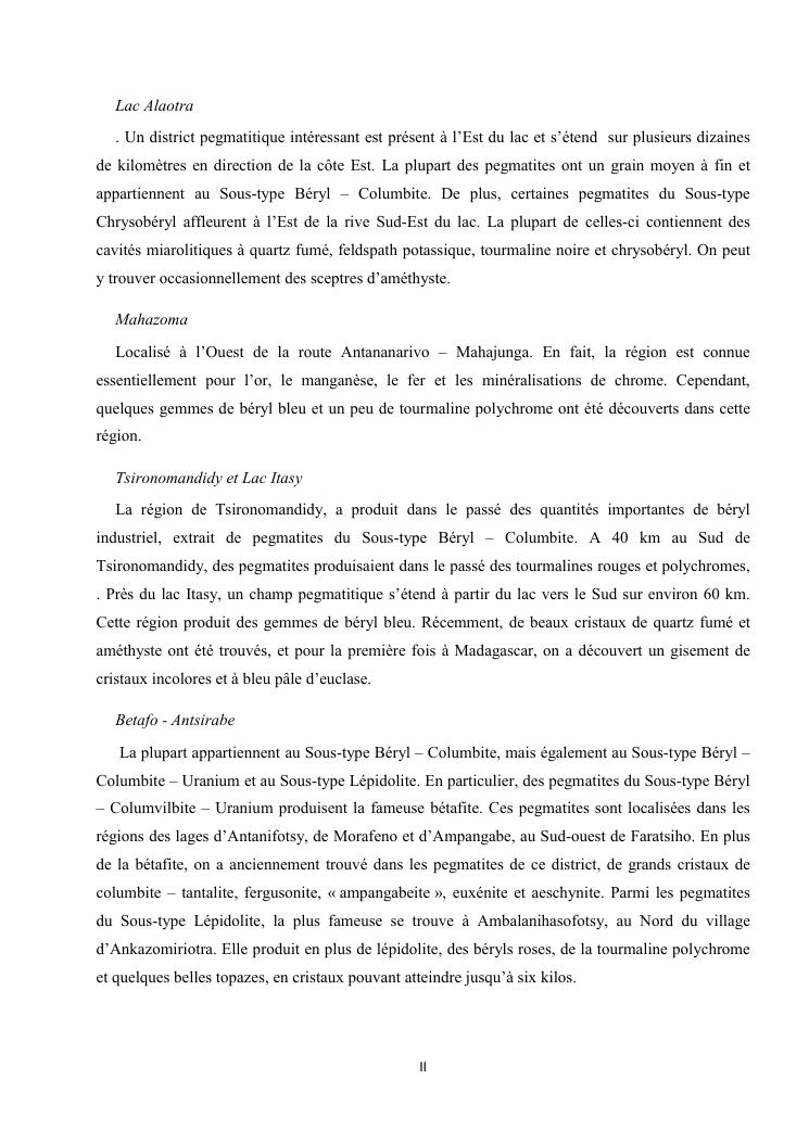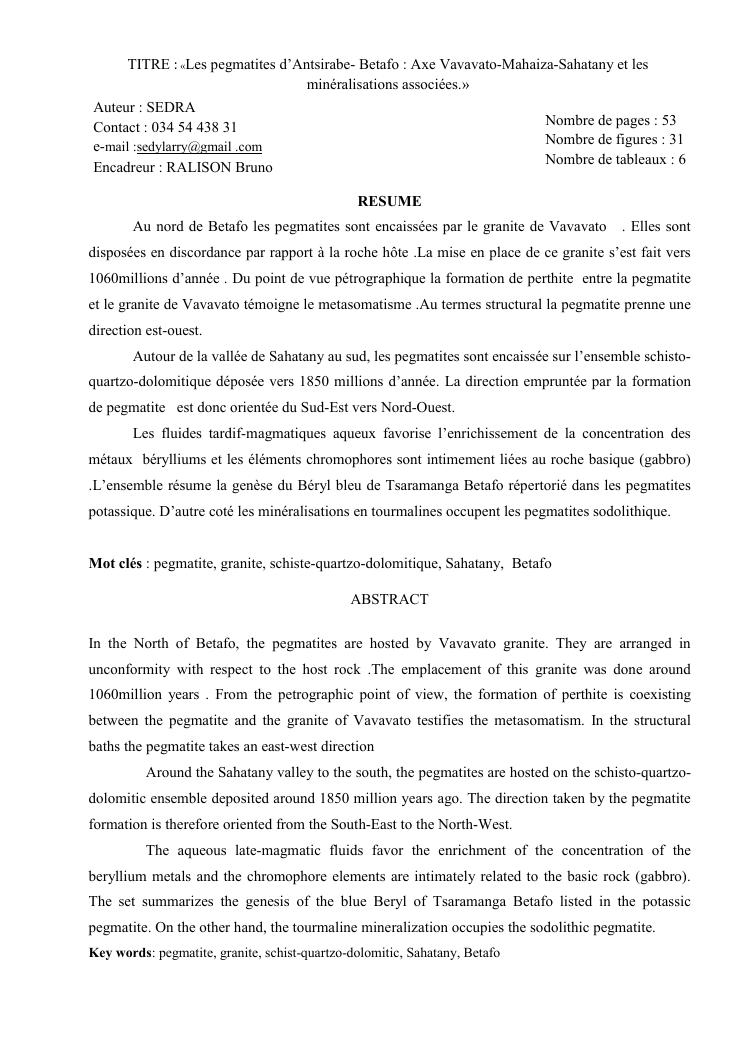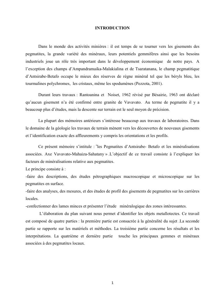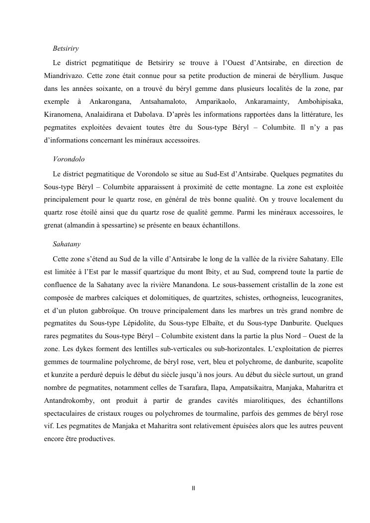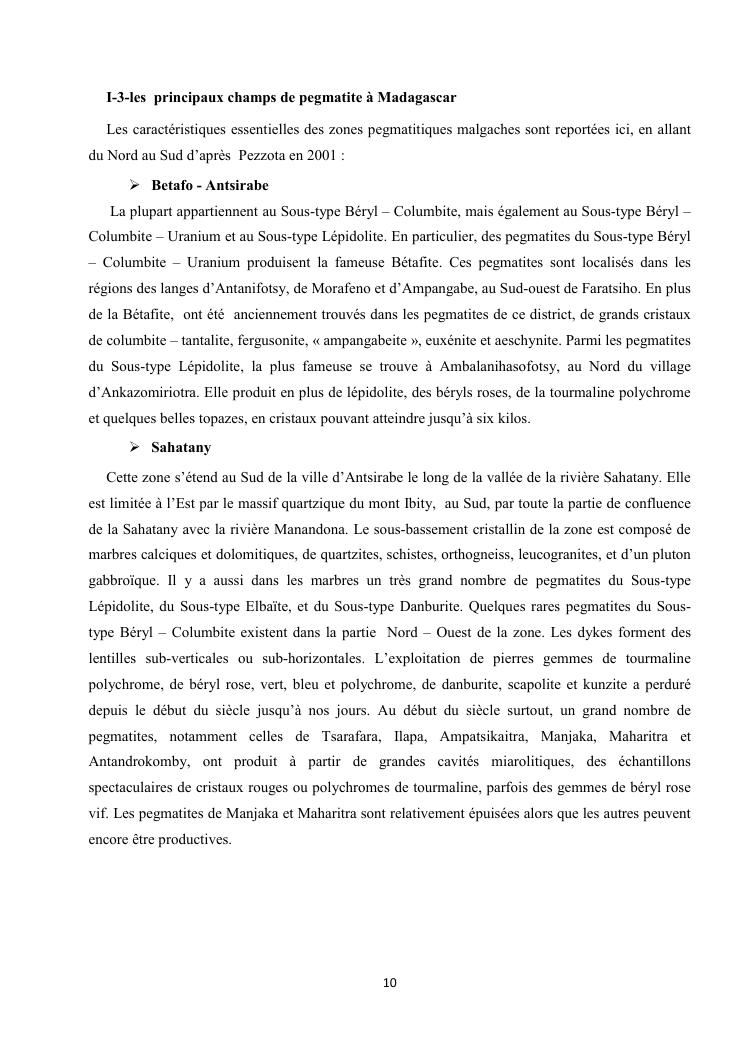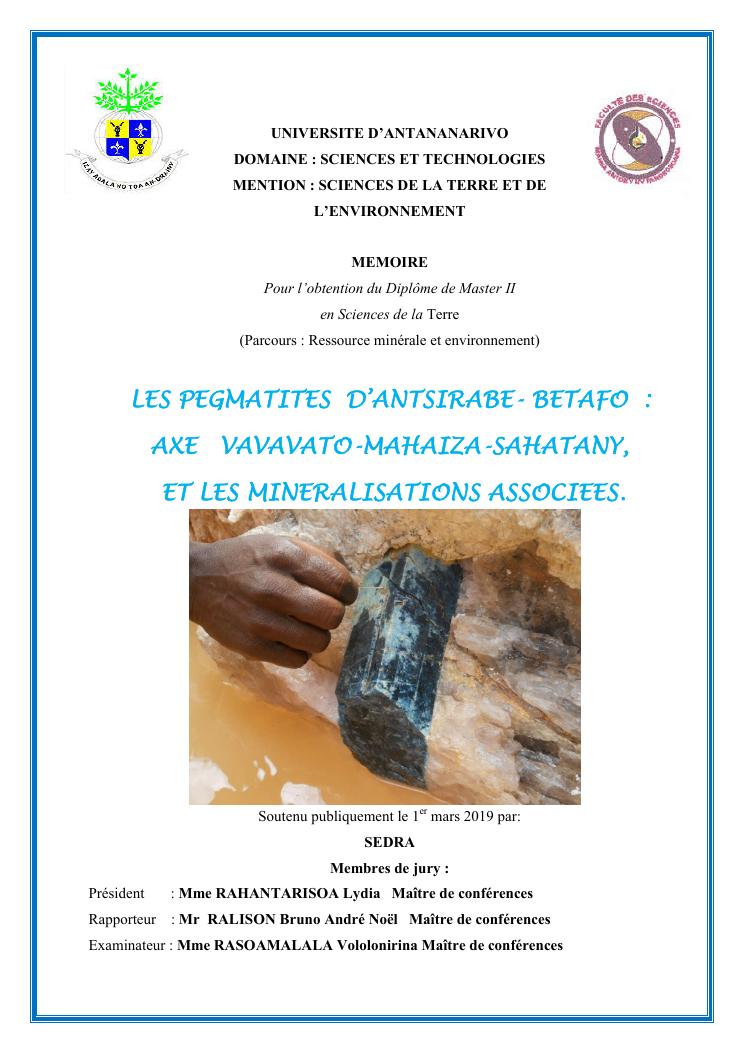 les pegmatites d'antsirabe- betafo : axe vavavato-mahaiza-sahatany, et les mineralisations associees