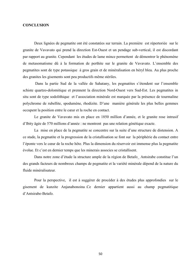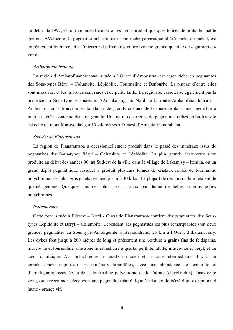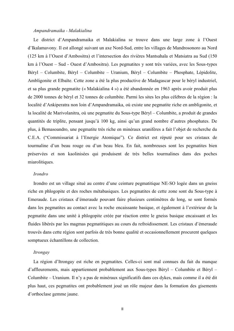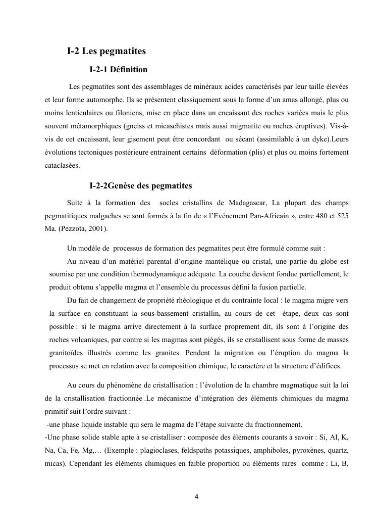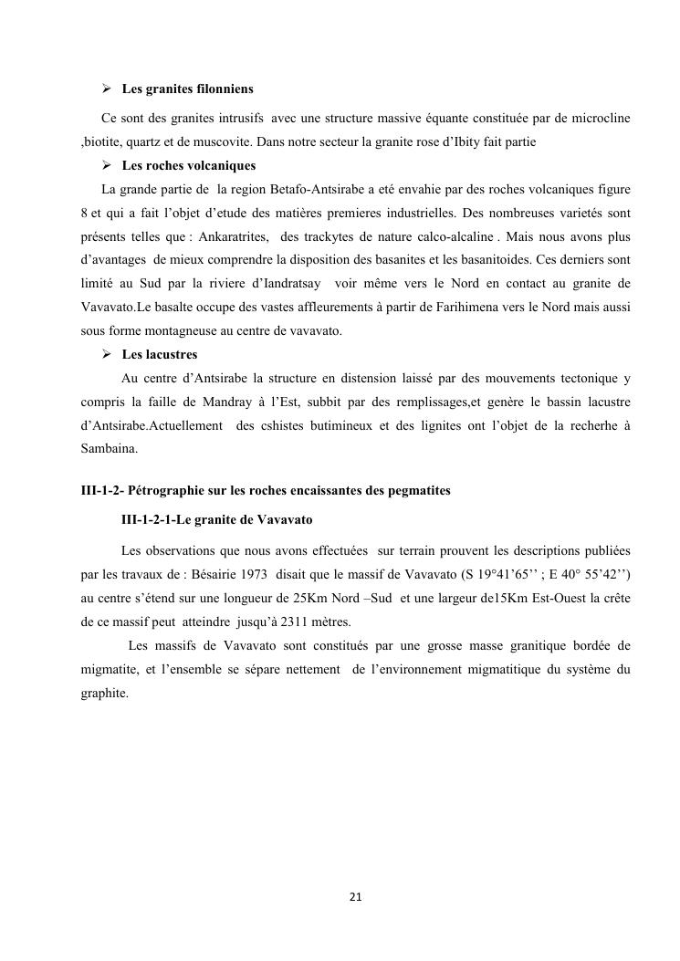 les pegmatites d'antsirabe- betafo : axe vavavato-mahaiza-sahatany, et les mineralisations associees