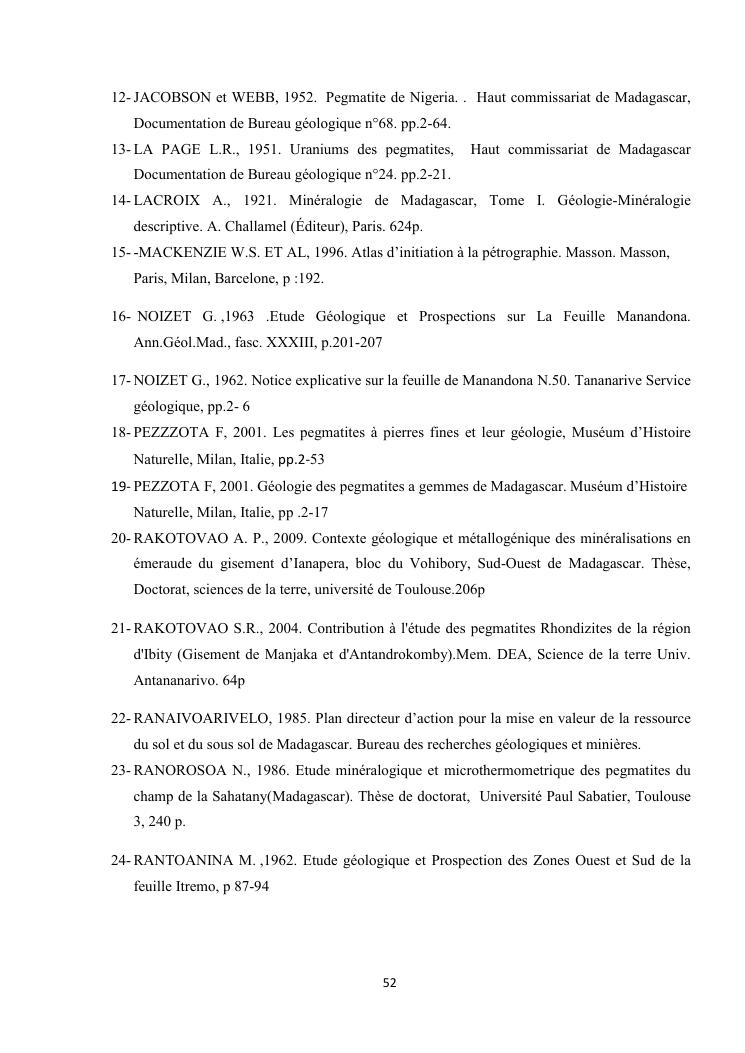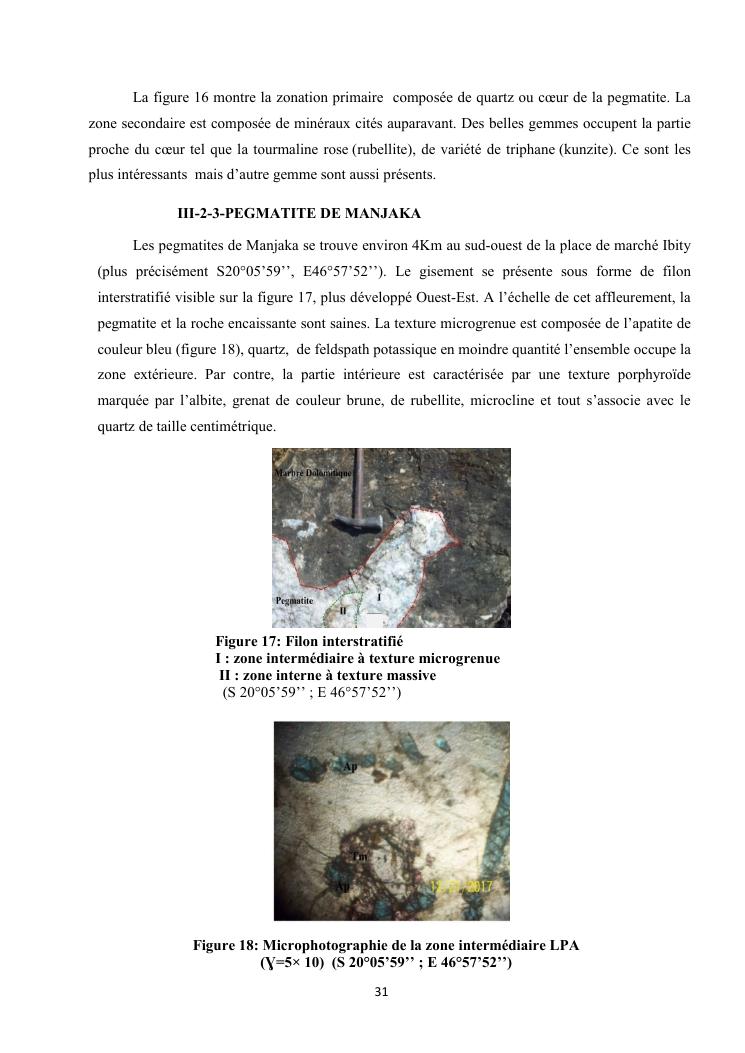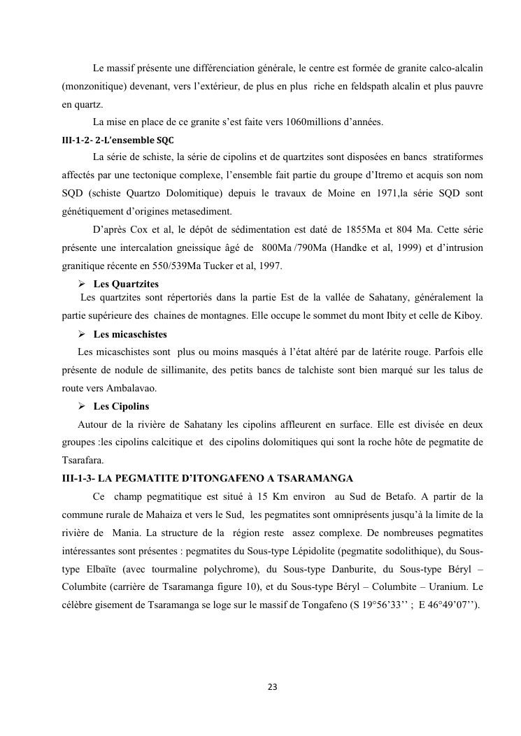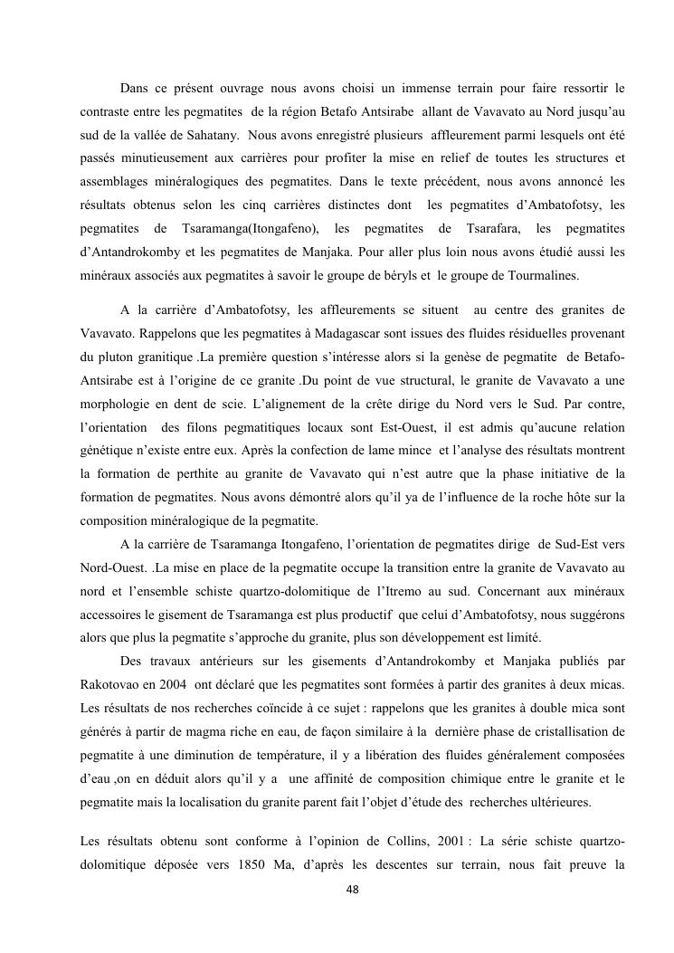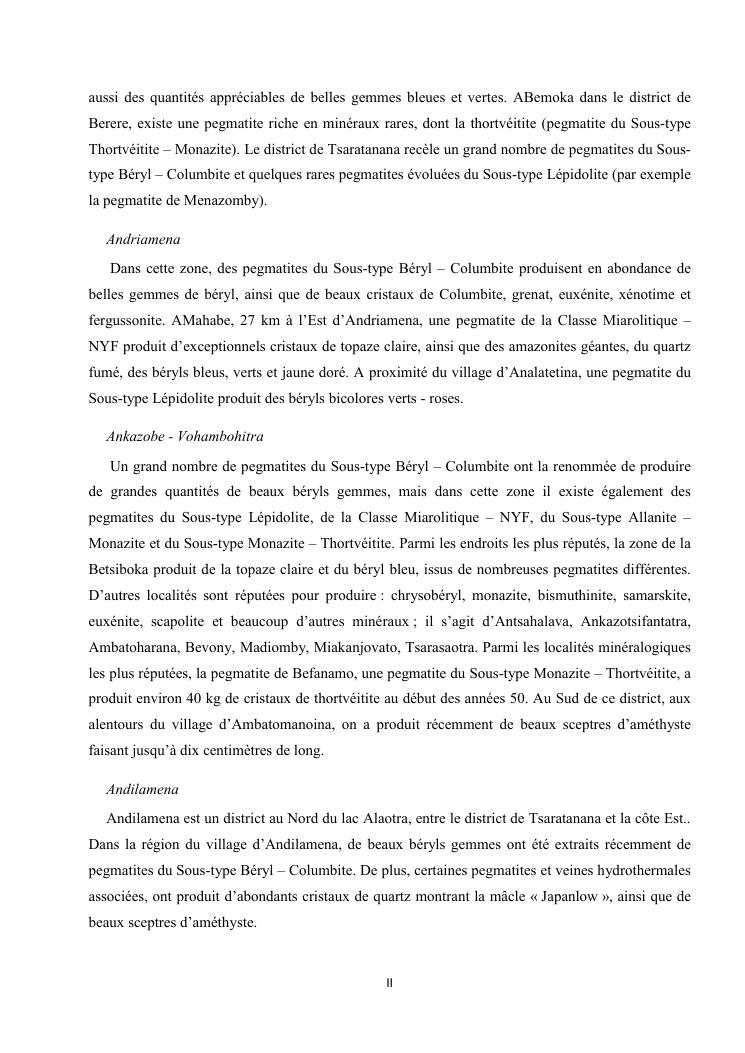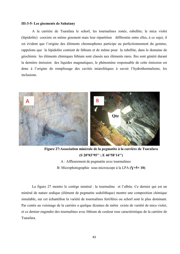 les pegmatites d'antsirabe- betafo : axe vavavato-mahaiza-sahatany, et les mineralisations associees