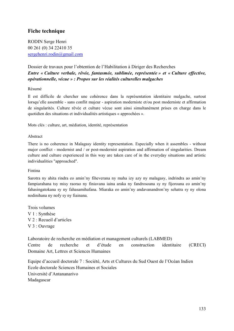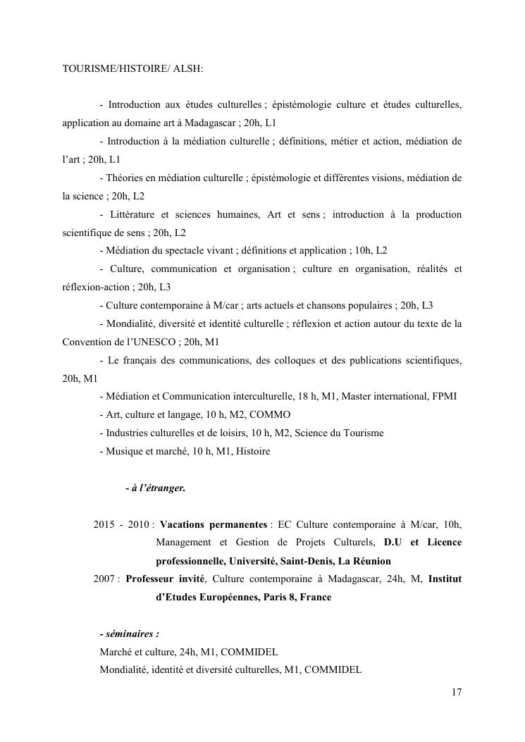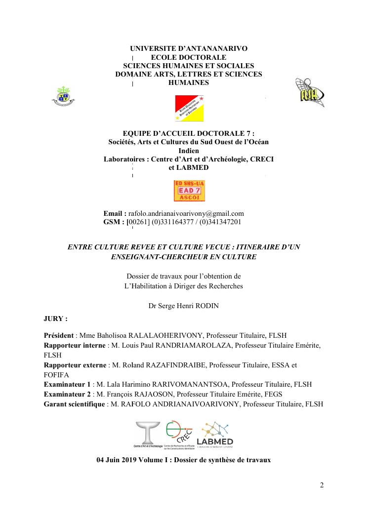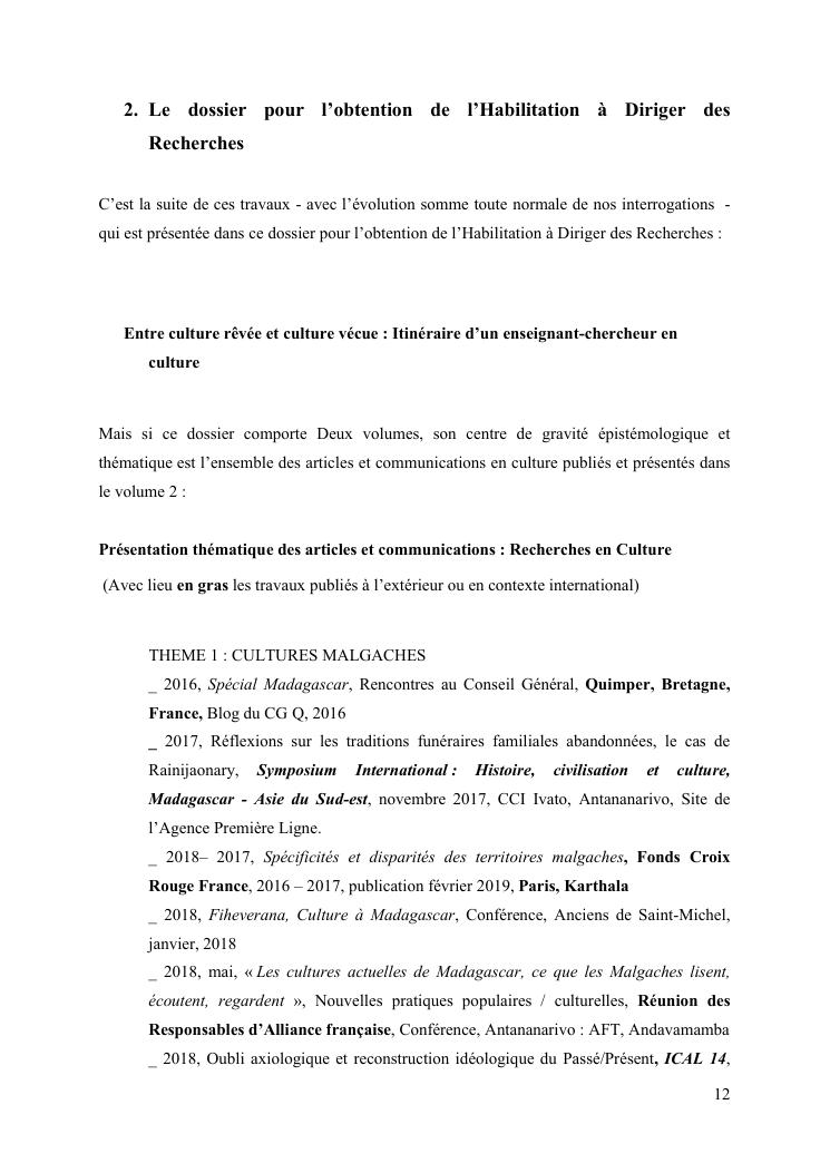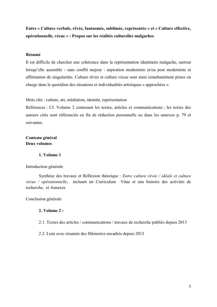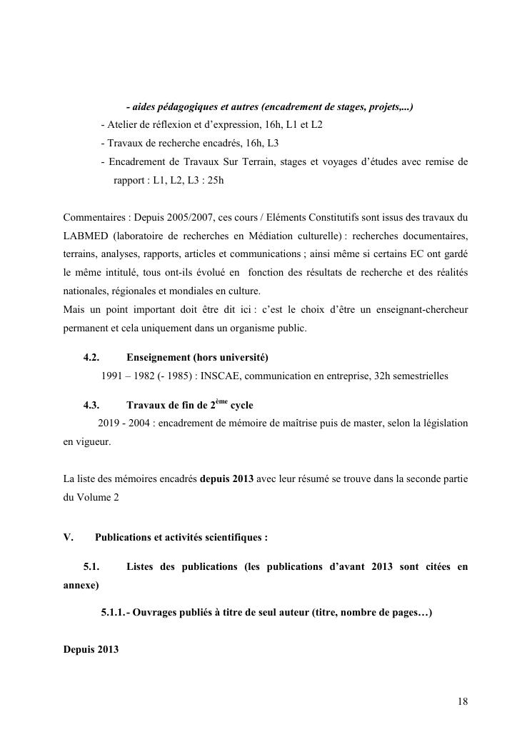 entre culture revee et culture vecue : itineraire d'un enseignant-chercheur en culture. volume 1 : c.v. scientifique (long) et synthèse des travaux