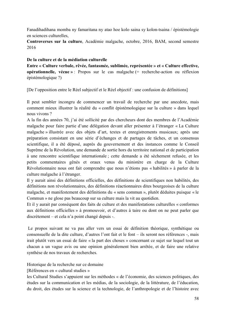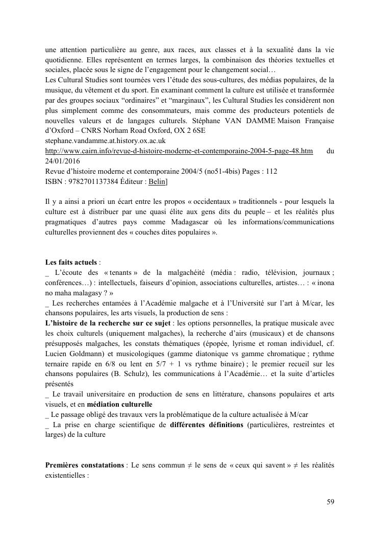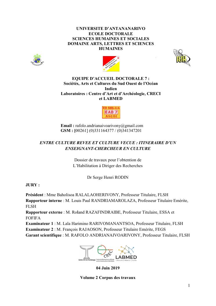 entre culture revee et culture vecue : itineraire d'un enseignant-chercheur en culture. volume 2 : corpus des travaux