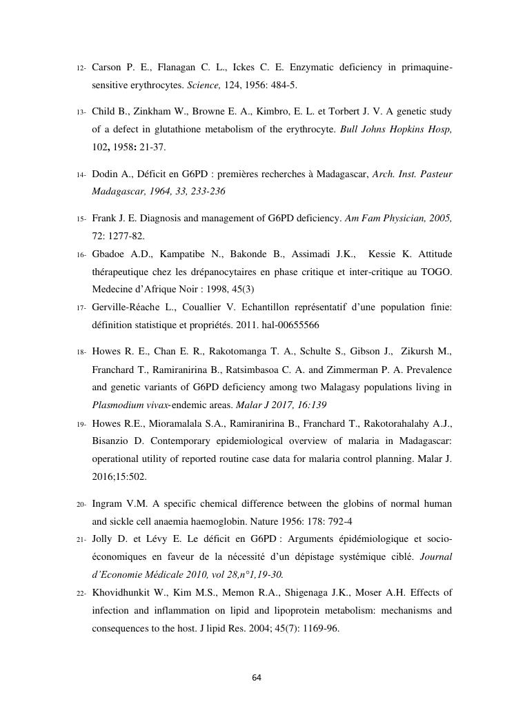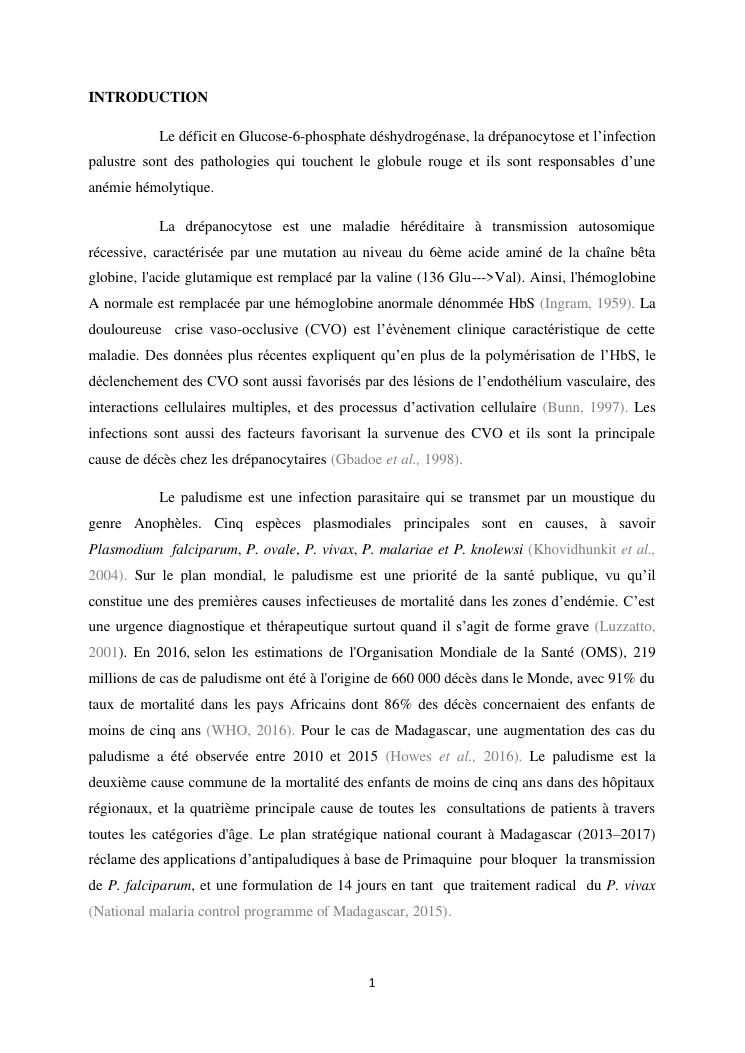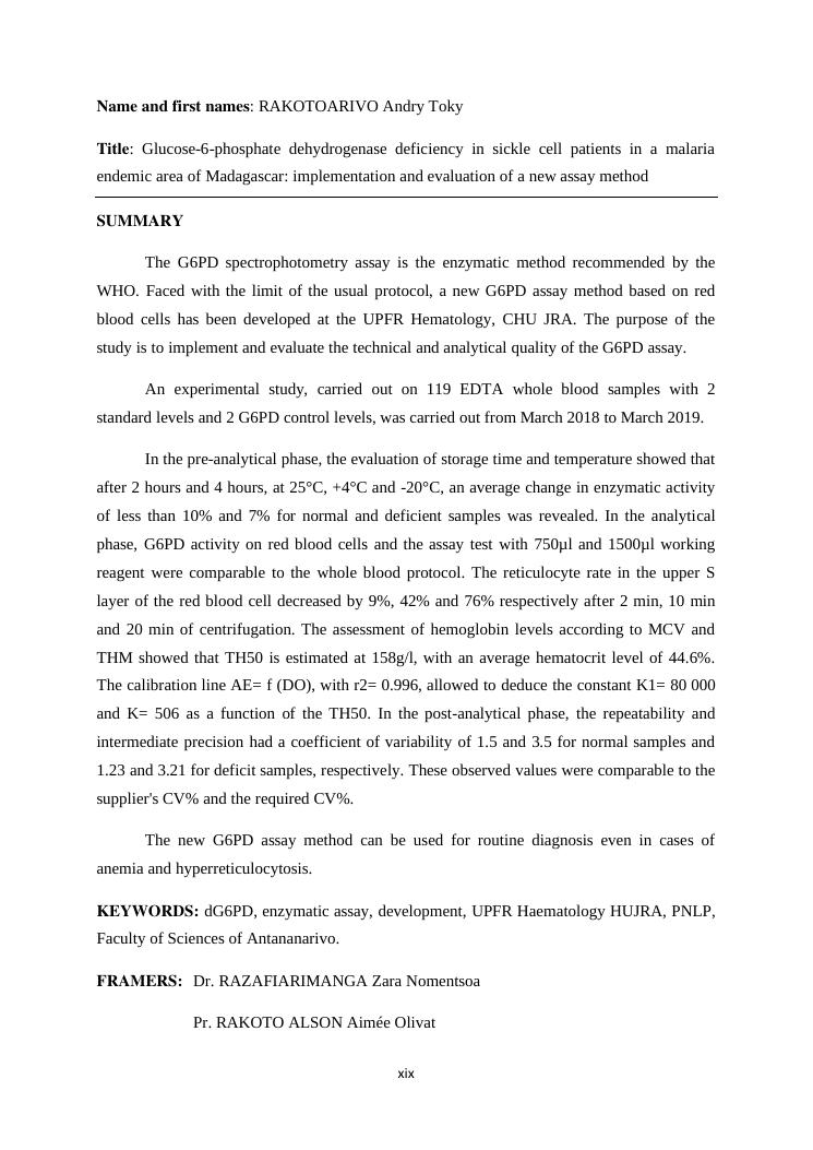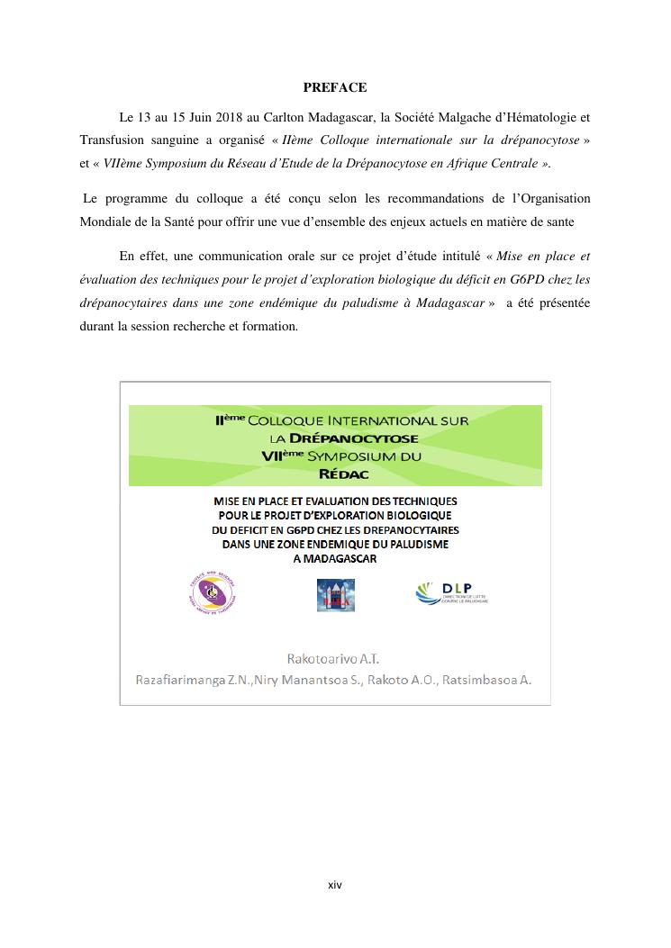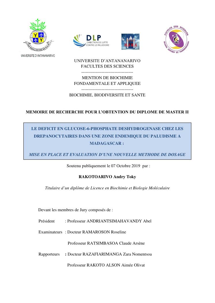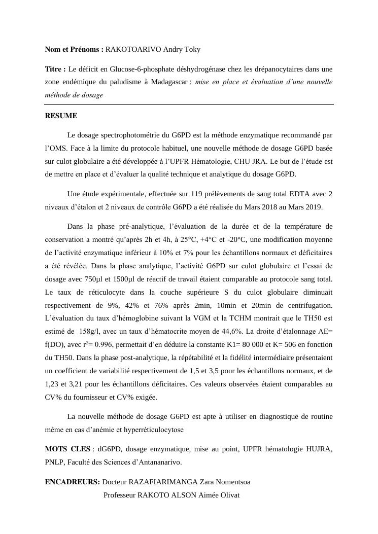le deficit en glucose-6-phosphate deshydrogenase chez les drepanocytaires dans une zone endemique du paludisme a madagascar : mise en place et evaluation d'une nouvelle methode de dosage
