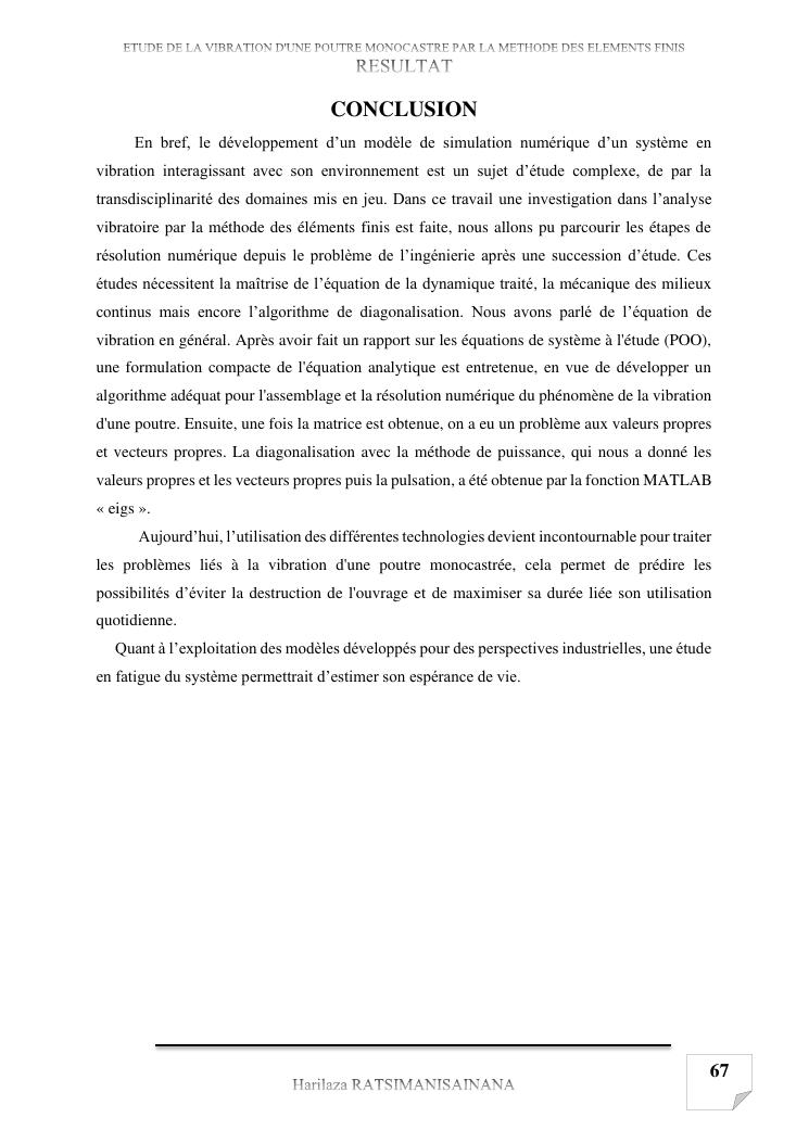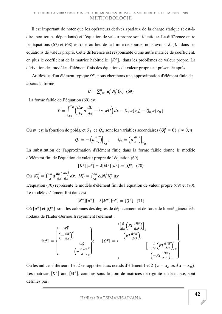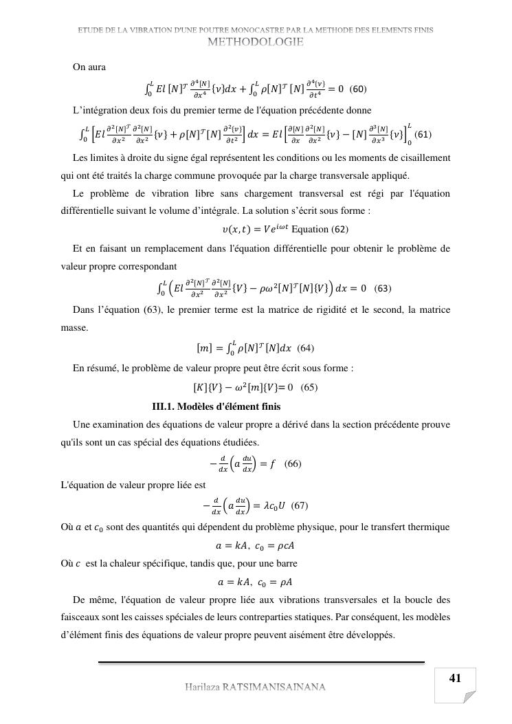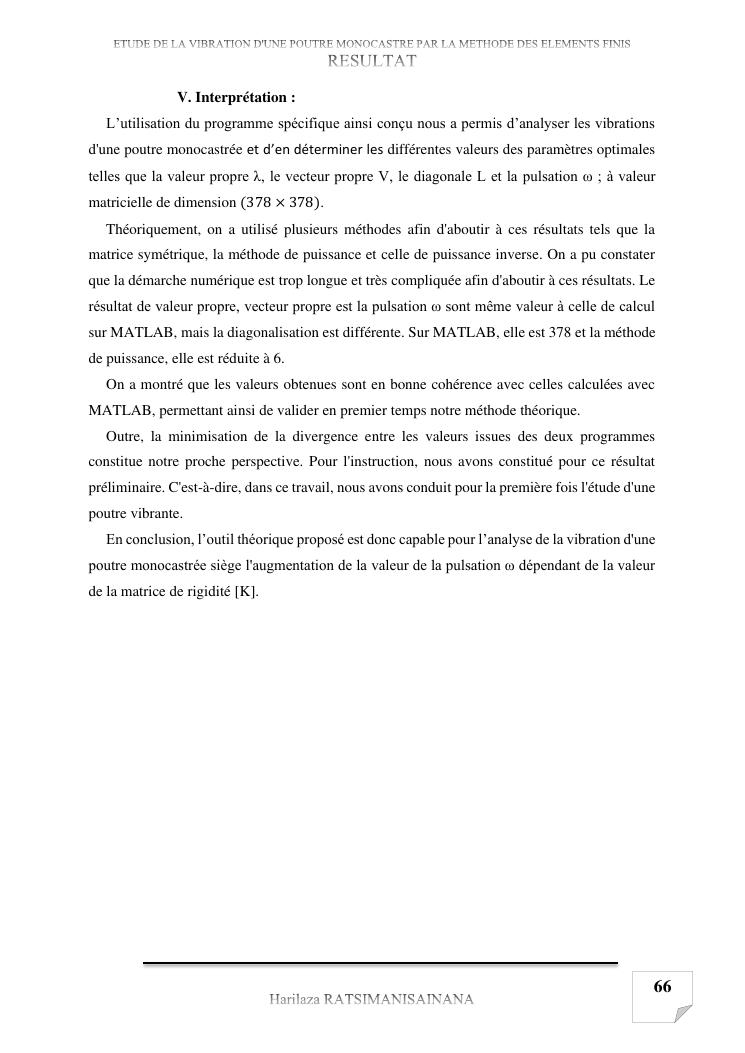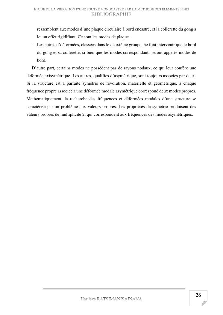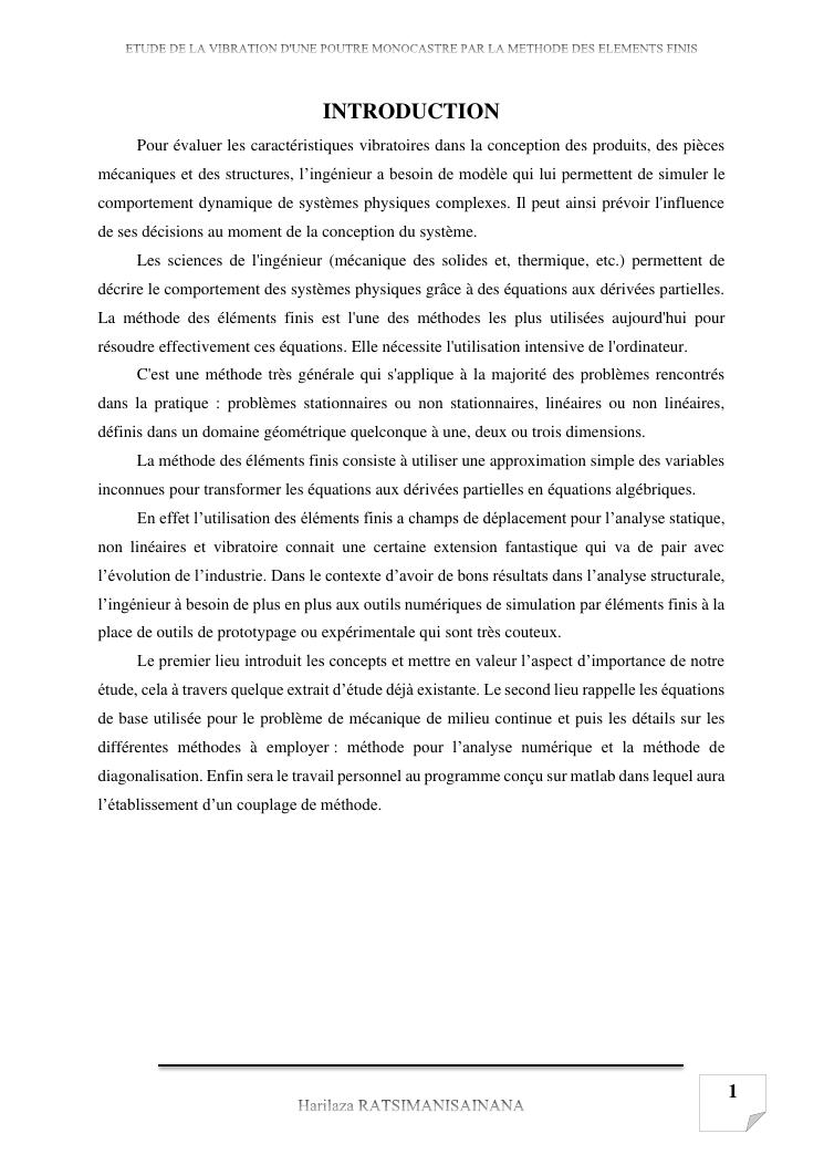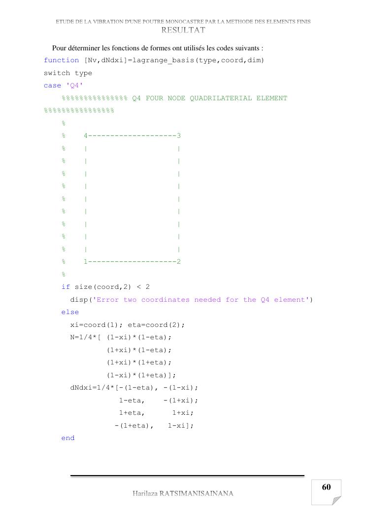 etude de la vibration d'une poutre monocastre par la methode des elements finis