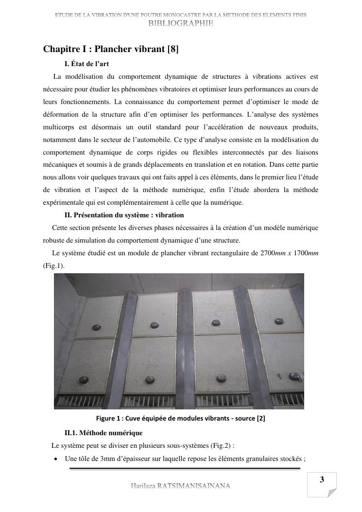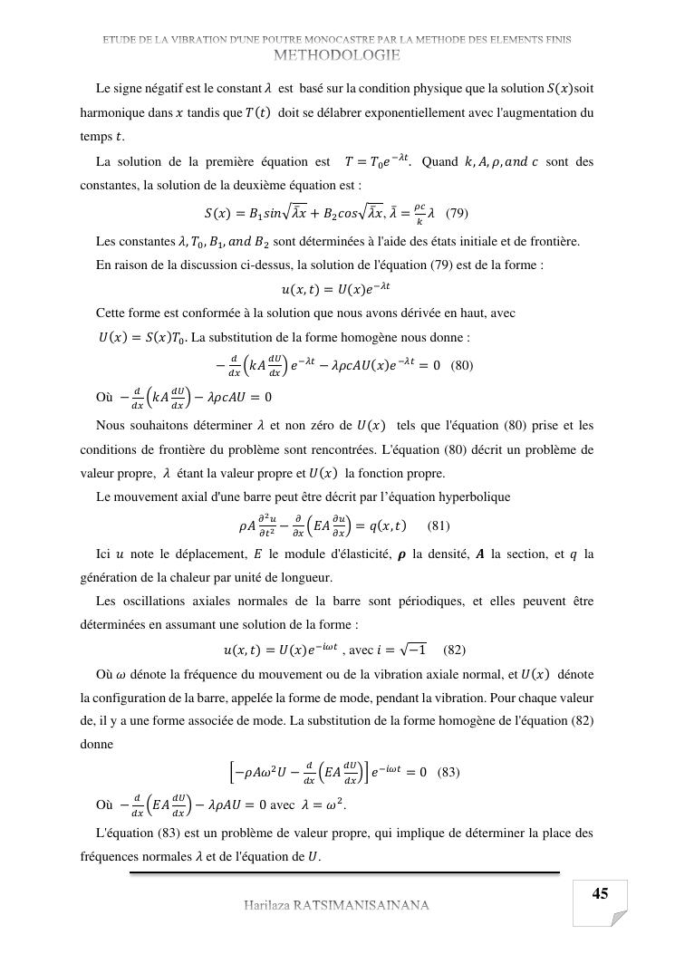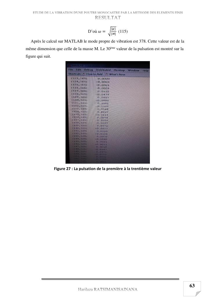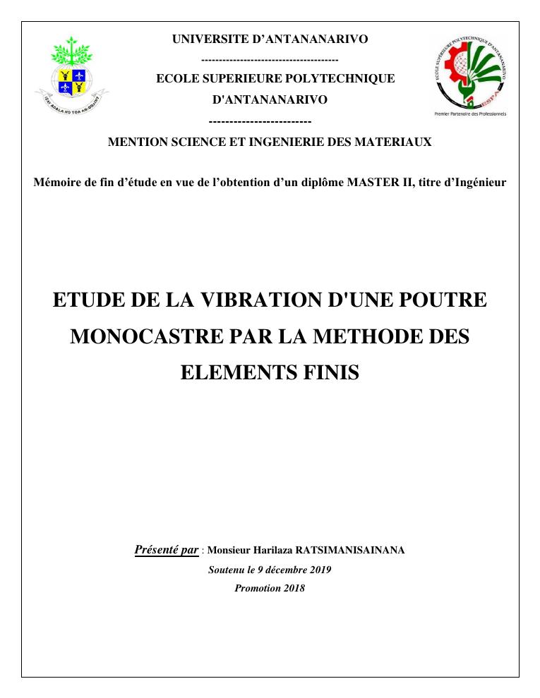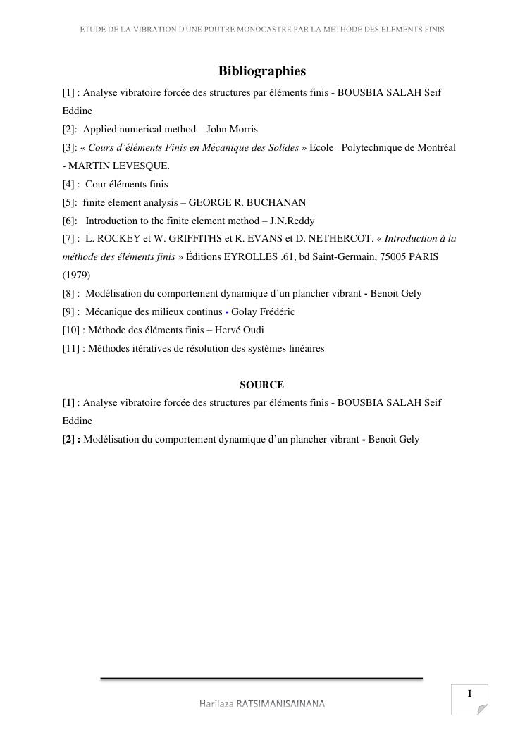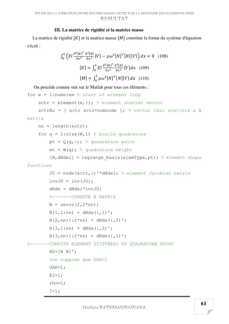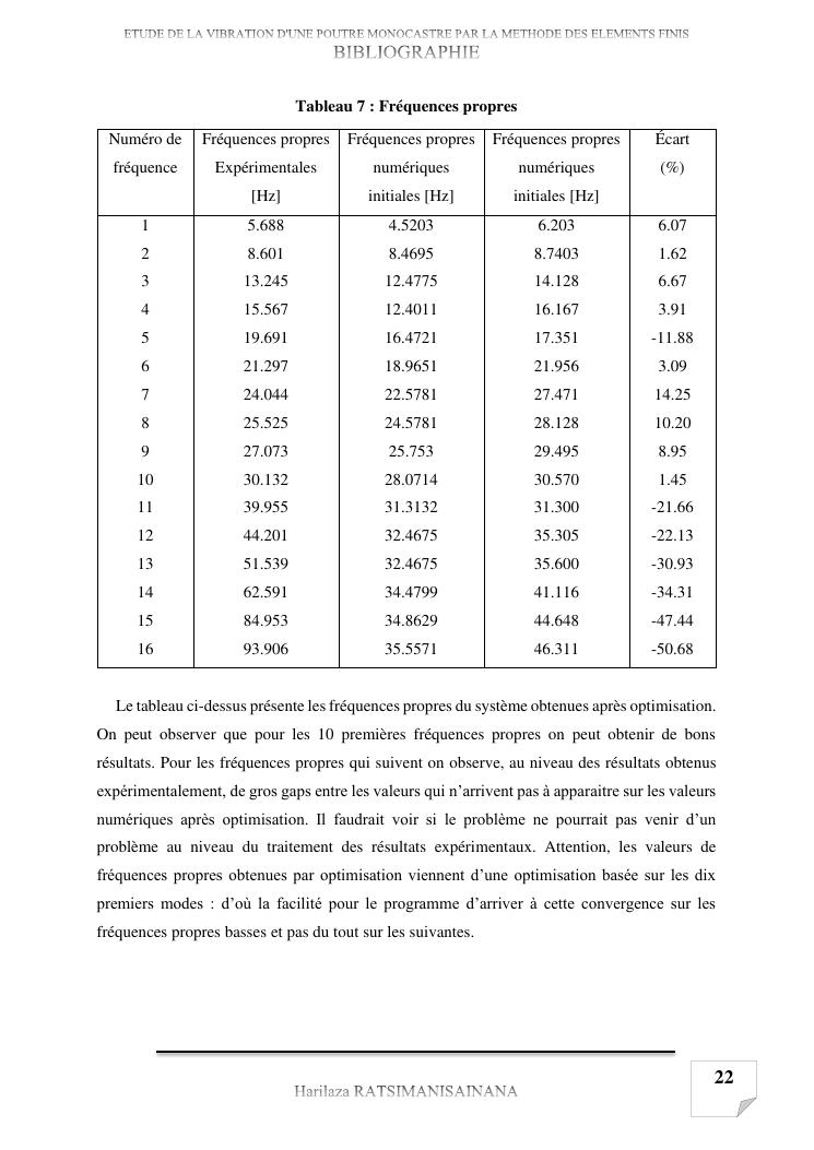 etude de la vibration d'une poutre monocastre par la methode des elements finis