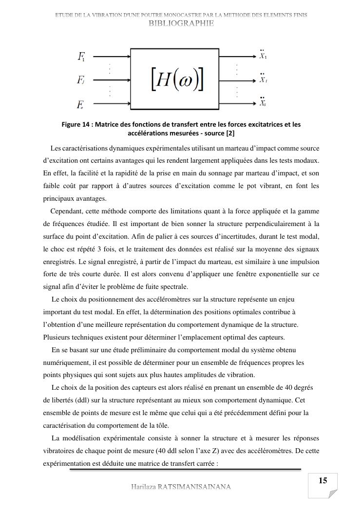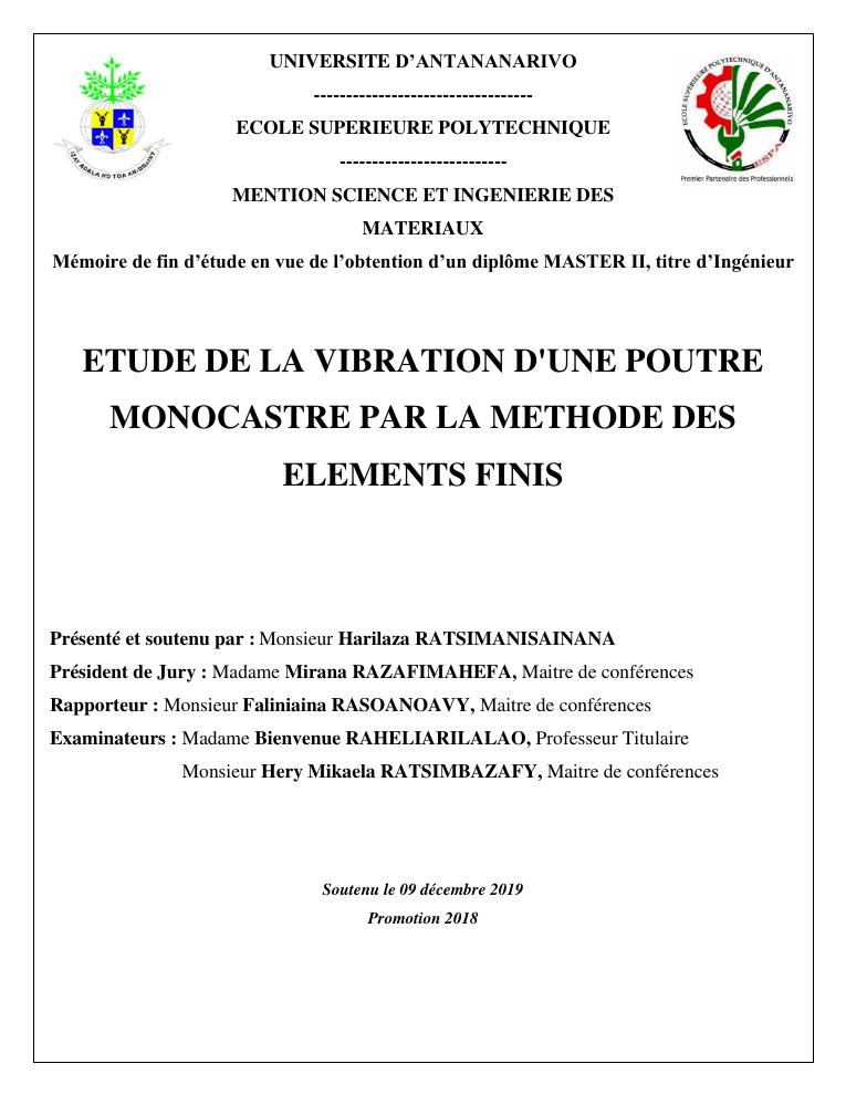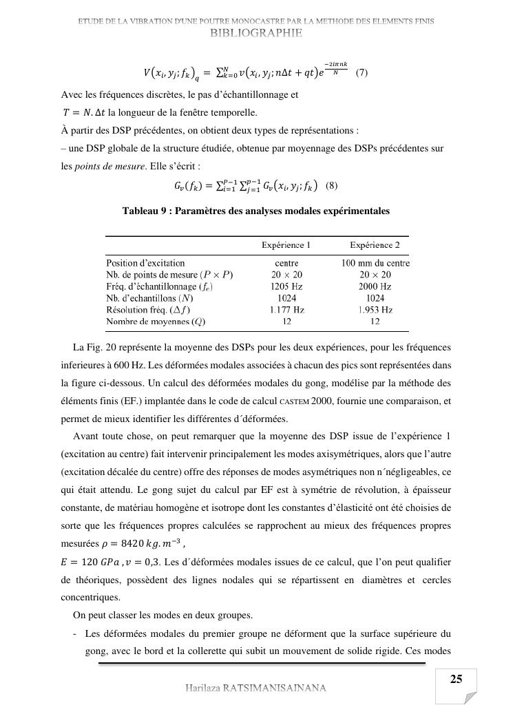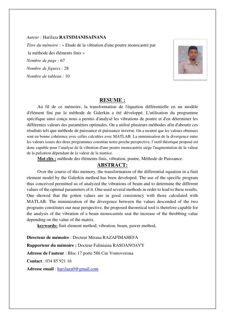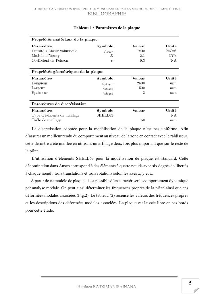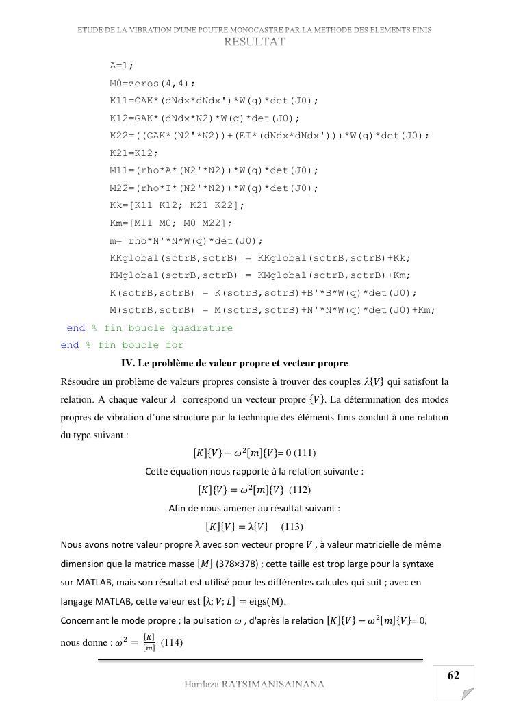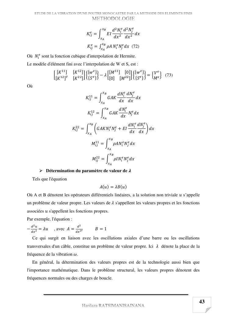 etude de la vibration d'une poutre monocastre par la methode des elements finis